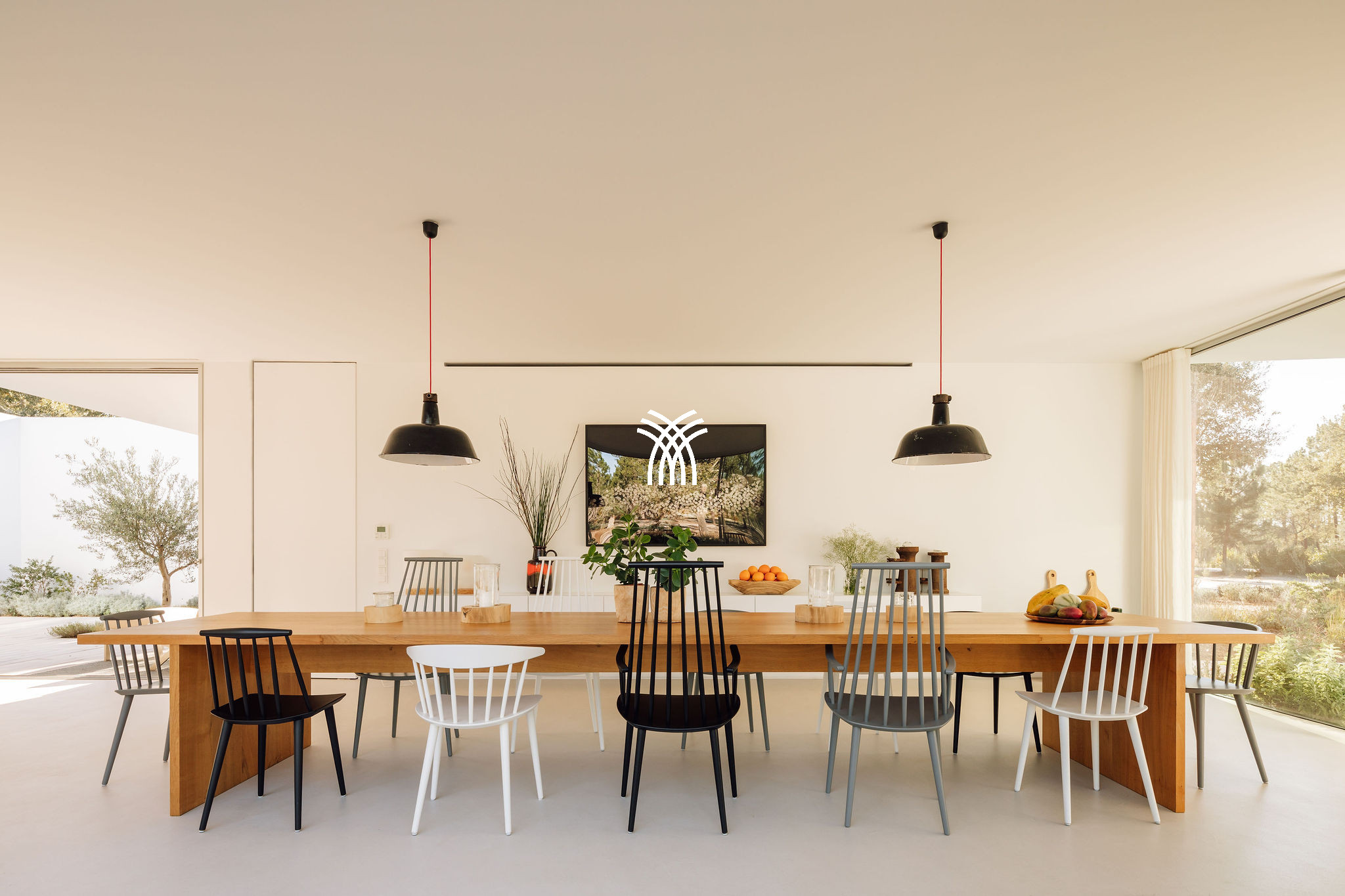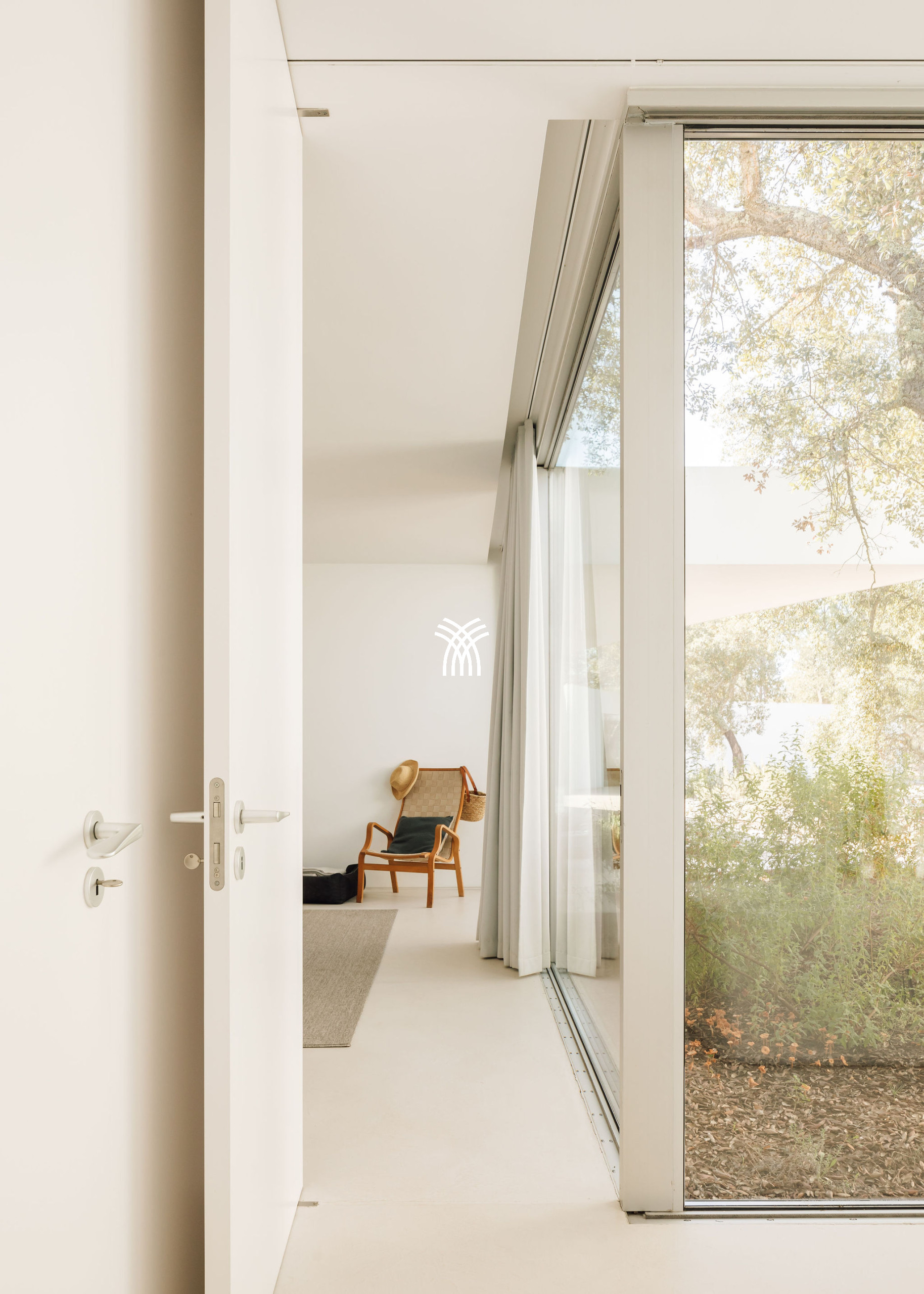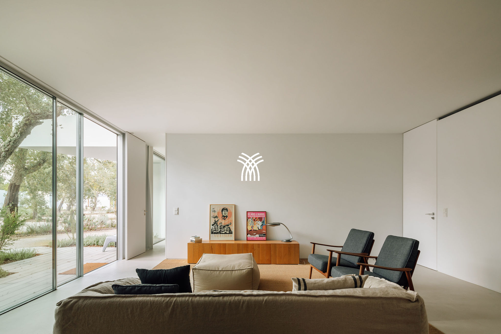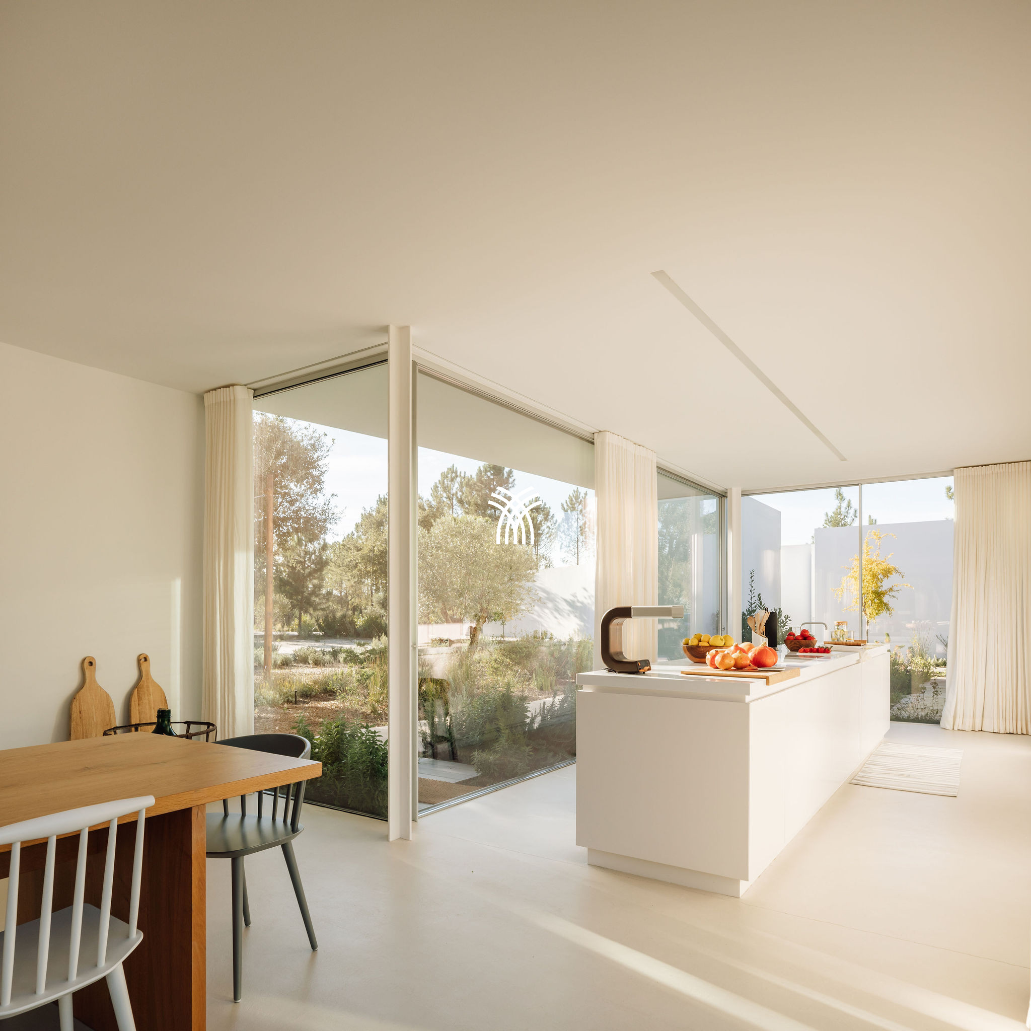 Immersed in the lush natural landscape of Comporta, Villa Katsu is an architect-designed retreat that embodies contemporary elegance and refined simplicity, where clean lines, wooden shutters, and harmonious proportions blend seamlessly with the surrounding environment. Bathed in natural light, the interiors unfold through expansive windows that invite the outdoors inside, illuminating crisp white walls, soaring ceilings, and warm parquet floors, while carefully curated artworks and subtle decorative accents bring vibrancy and personality to the serene aesthetic, creating an atmosphere that defines the essence of a luxury villa rental Portugal and an authentic luxury villa rental Comporta.