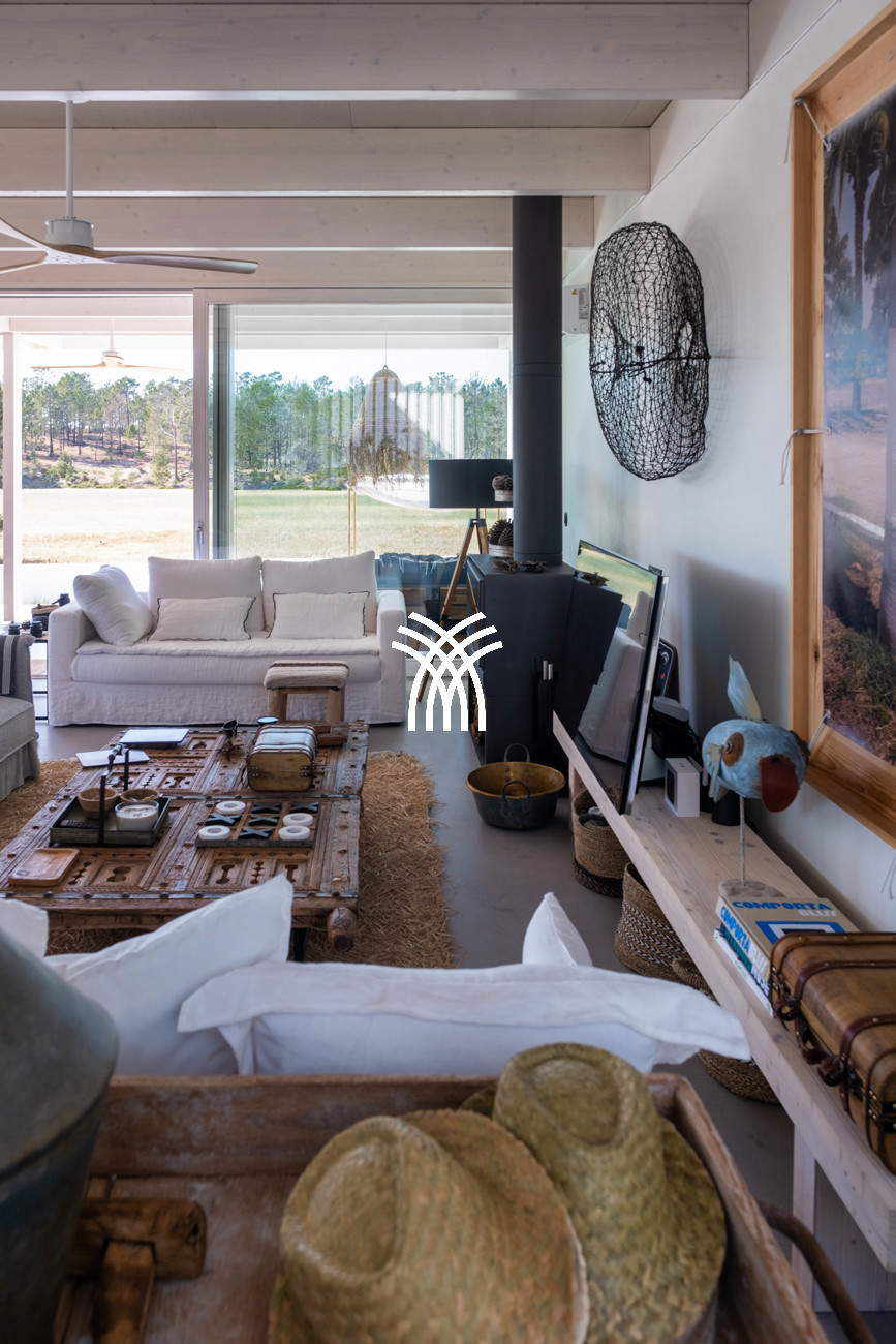 Casa Parus is a refined architectural sanctuary in the heart of Comporta, where minimalist design meets the quiet elegance of nature in a setting of rare beauty and privacy. Defined by clean lines, vaulted ceilings, and expansive picture windows, this striking residence offers a seamless dialogue between interior spaces and the surrounding landscape, creating an atmosphere of light, openness, and contemporary sophistication that perfectly embodies the spirit of a luxury villa rental Portugal.