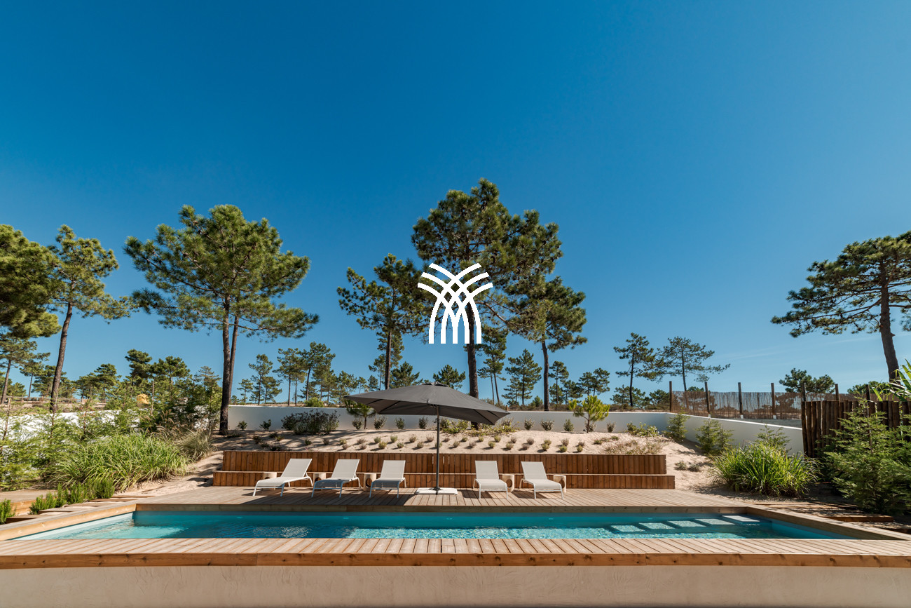 Beyond the villa, the surrounding landscape invites moments of leisure and discovery, from quiet relaxation in a hammock or gentle swings beneath the trees to lively volleyball matches and refreshing swims in the infinity pool. Walks through nearby dunes and horseback rides along the iconic beaches of Comporta further deepen the connection to this extraordinary natural setting, where land, sea, and sky merge in timeless beauty.