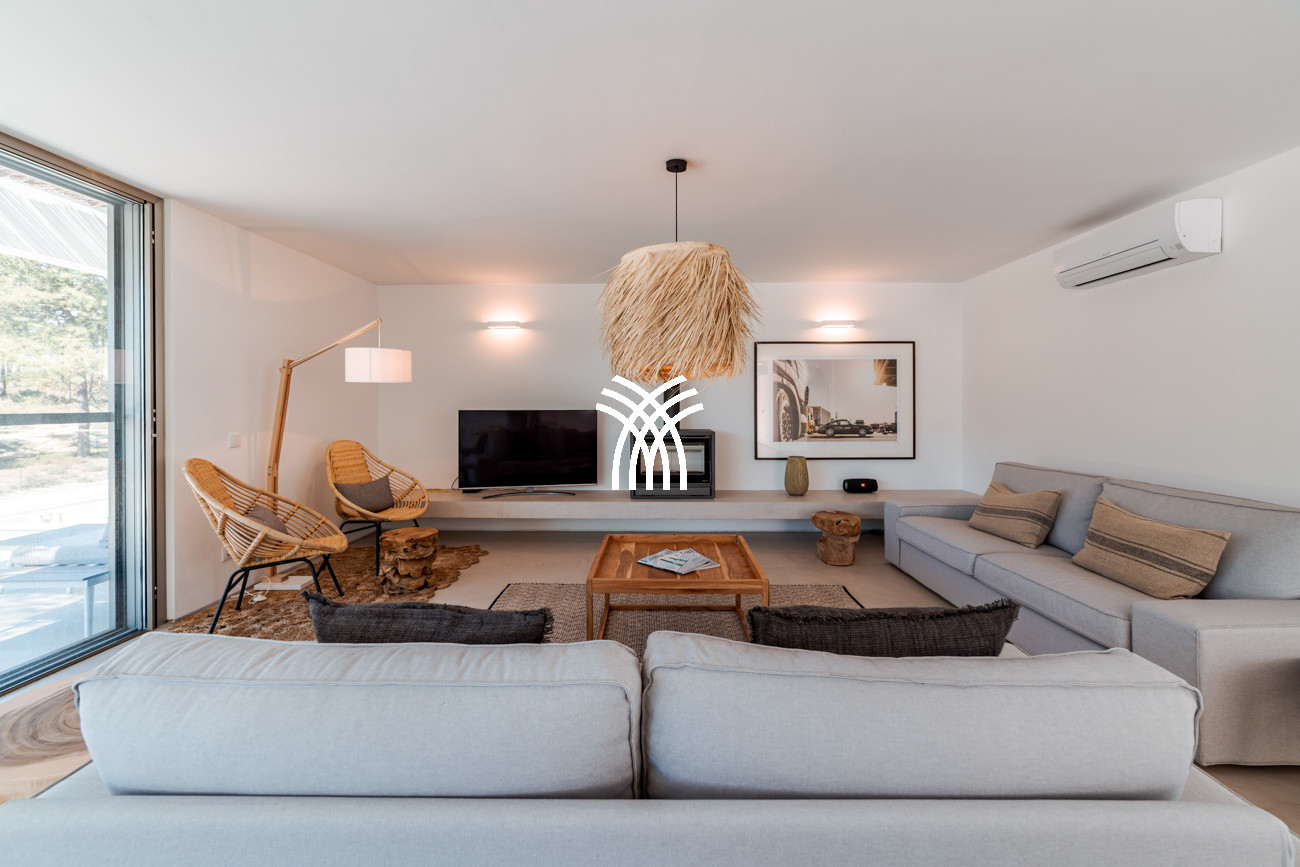Surrounded by similar properties yet offering a sense of privacy, Villa dos Cedros enjoys tranquil views of the pine forest beyond its garden walls while remaining within walking distance of Praia do Pego and Praia do Carvalhal. The region’s most beautiful beaches are also just a short drive or bike ride away, allowing guests to experience both seclusion and coastal vibrancy with effortless ease.