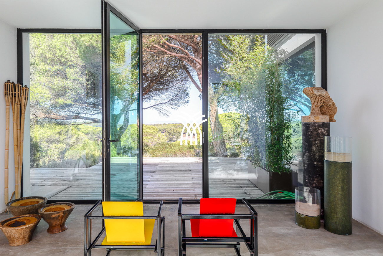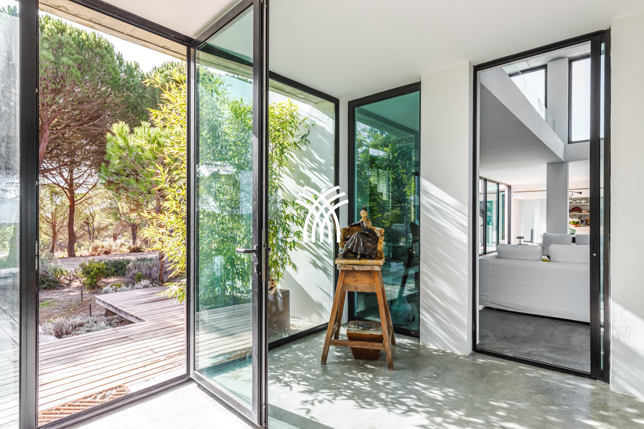 Immersed in the lush natural landscape of Comporta, Villa Katsu is an architect-designed retreat that embodies contemporary elegance and refined simplicity, where clean lines, wooden shutters, and harmonious proportions blend seamlessly with the surrounding environment. Bathed in natural light, the interiors unfold through expansive windows that invite the outdoors inside, illuminating crisp white walls, soaring ceilings, and warm parquet floors, while carefully curated artworks and subtle decorative accents bring vibrancy and personality to the serene aesthetic, creating an atmosphere that defines the essence of a luxury villa rental Portugal and an authentic luxury villa rental Comporta.