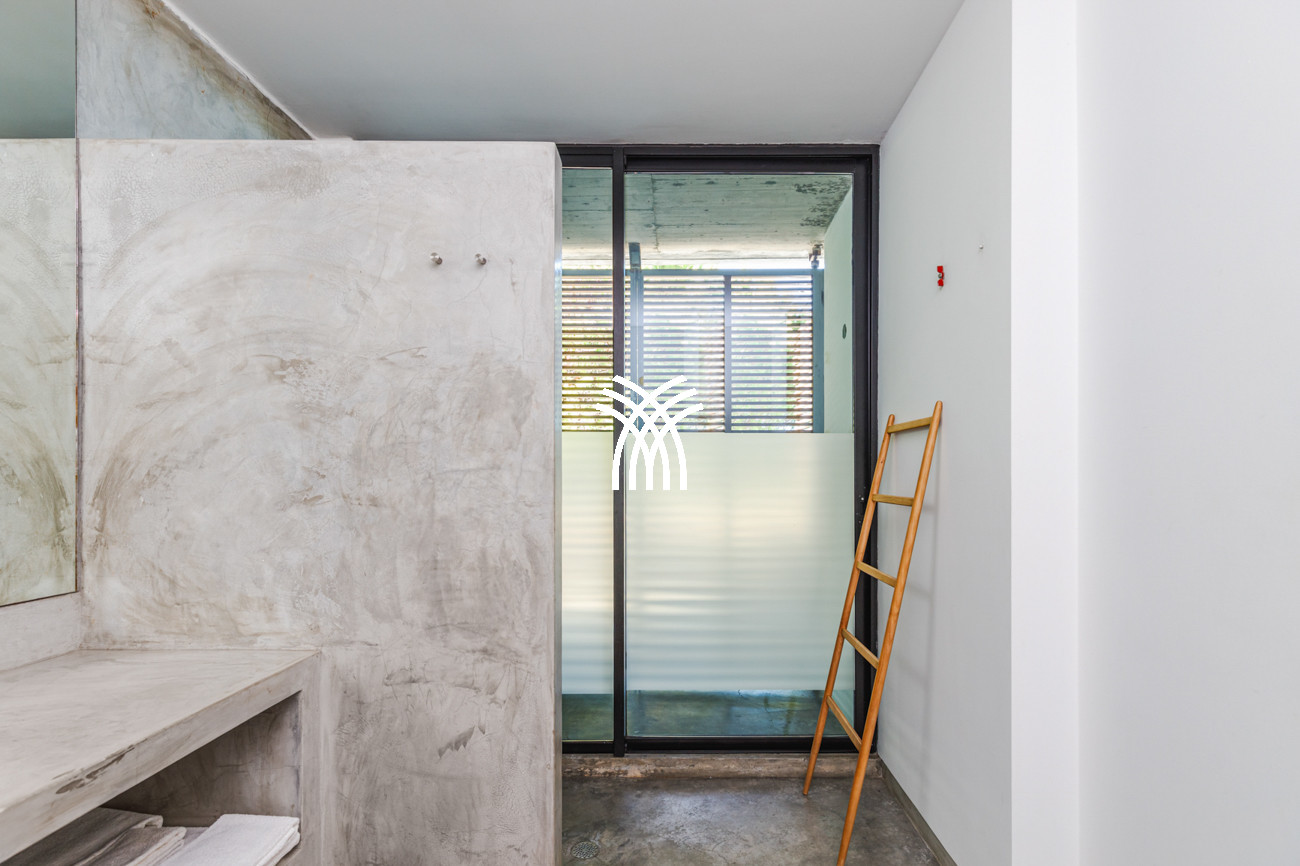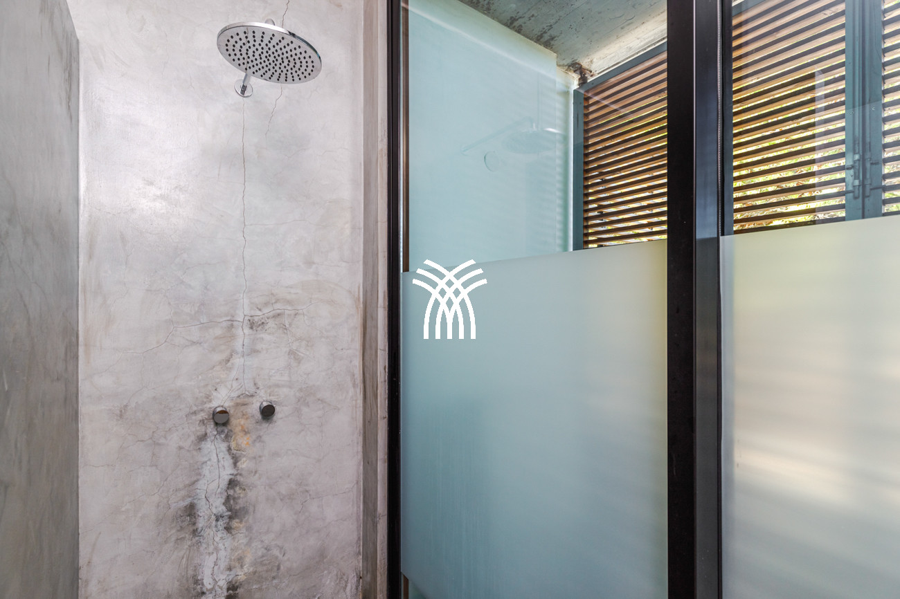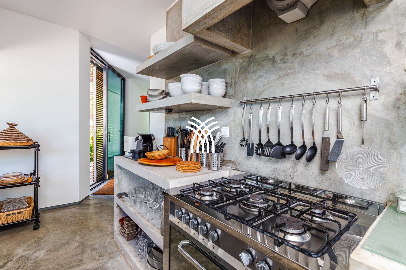 From the moment you enter, the villa reveals compact yet intelligently designed interiors that maximize space and light, enhanced by polished cement floors, high ceilings, and expansive floor-to-ceiling glass windows that blur the boundaries between inside and out. Air conditioning and mosquito nets ensure effortless comfort, while each bedroom opens directly onto the deck terrace or lush garden, creating a seamless dialogue with the surrounding landscape and inviting nature into everyday living.