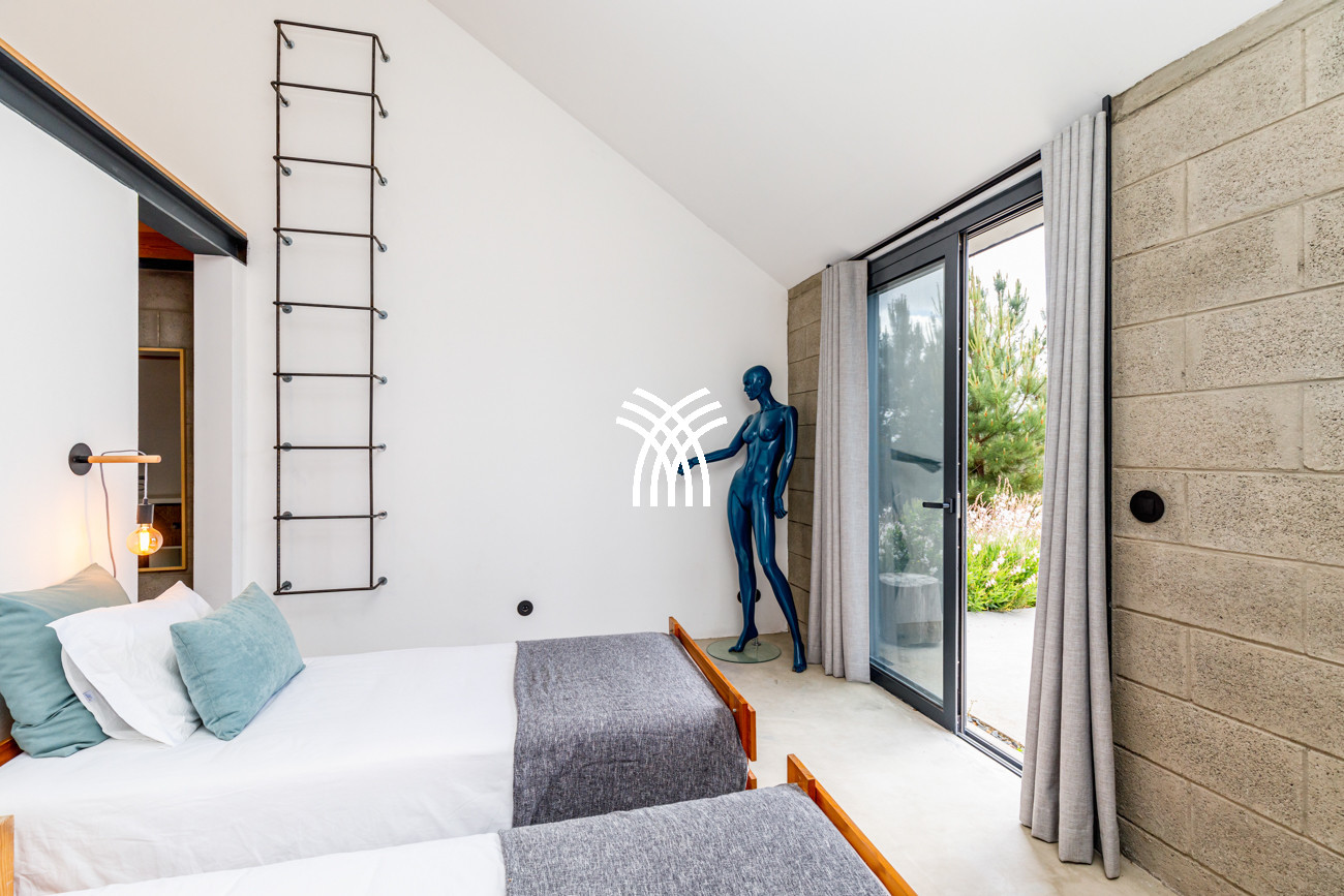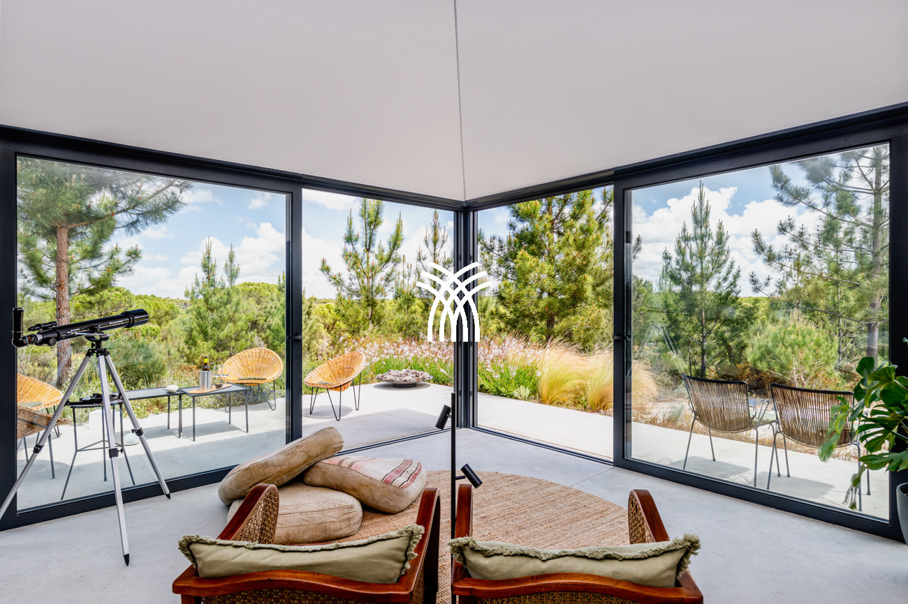 Casa Parus is a refined architectural sanctuary in the heart of Comporta, where minimalist design meets the quiet elegance of nature in a setting of rare beauty and privacy. Defined by clean lines, vaulted ceilings, and expansive picture windows, this striking residence offers a seamless dialogue between interior spaces and the surrounding landscape, creating an atmosphere of light, openness, and contemporary sophistication that perfectly embodies the spirit of a luxury villa rental Portugal.