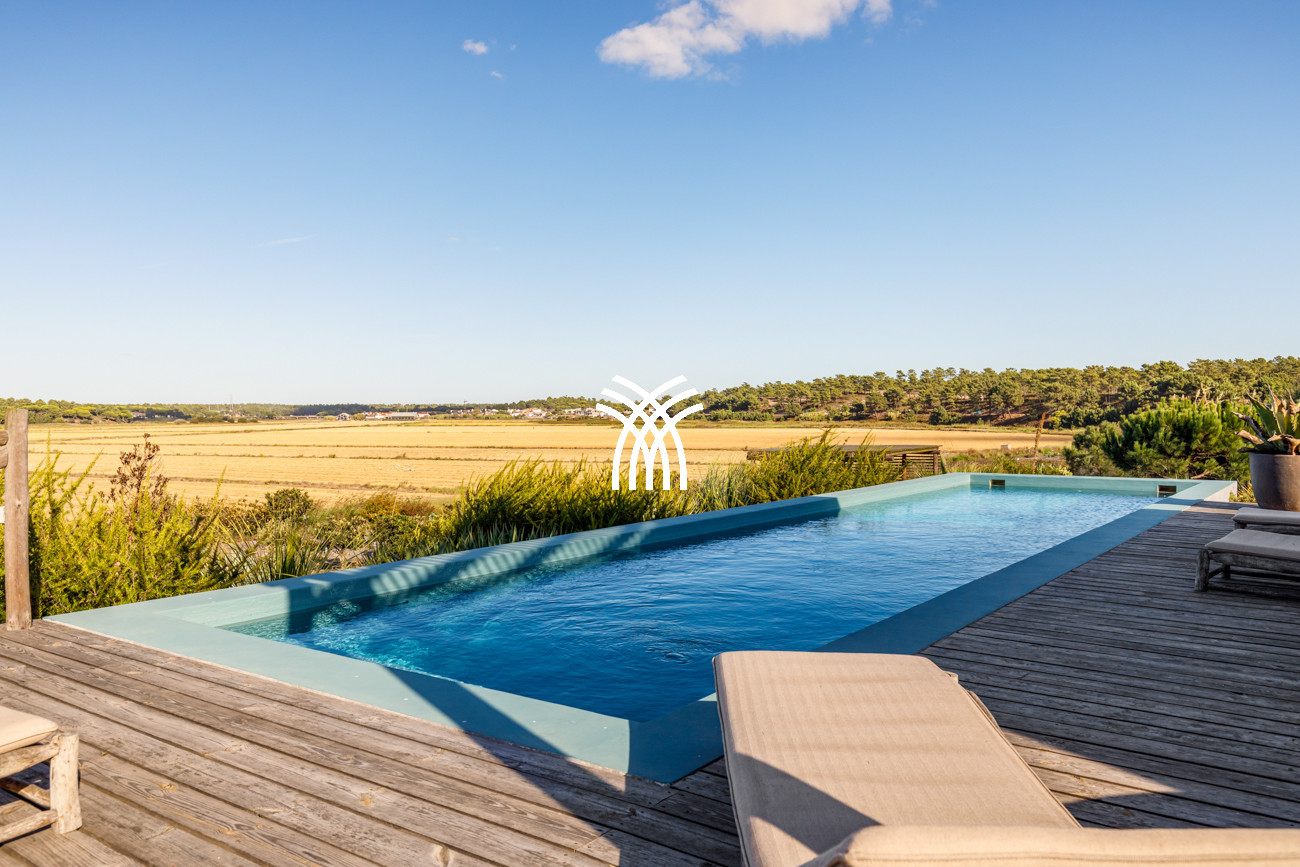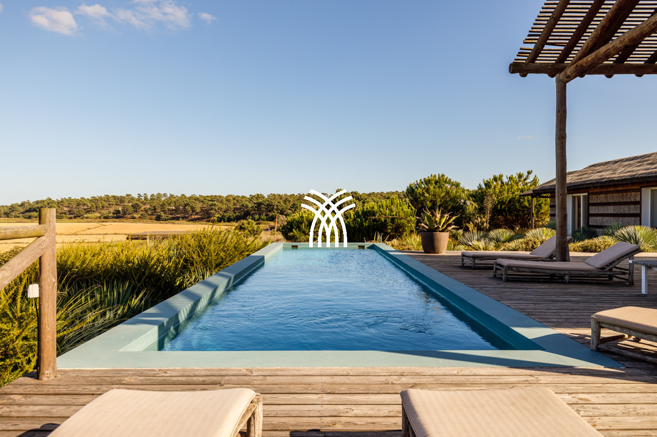 Beyond the villa, the surrounding landscape invites moments of leisure and discovery, from quiet relaxation in a hammock or gentle swings beneath the trees to lively volleyball matches and refreshing swims in the infinity pool. Walks through nearby dunes and horseback rides along the iconic beaches of Comporta further deepen the connection to this extraordinary natural setting, where land, sea, and sky merge in timeless beauty.