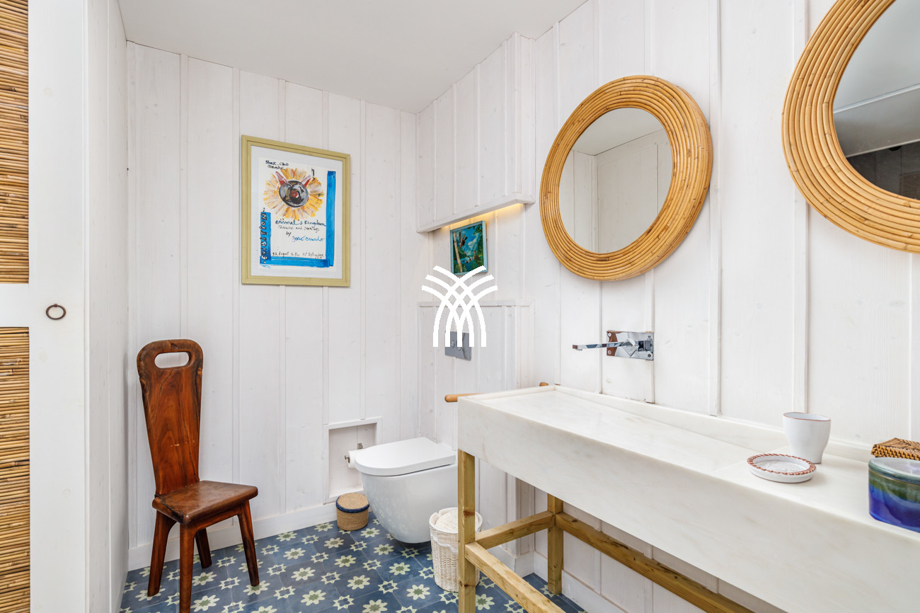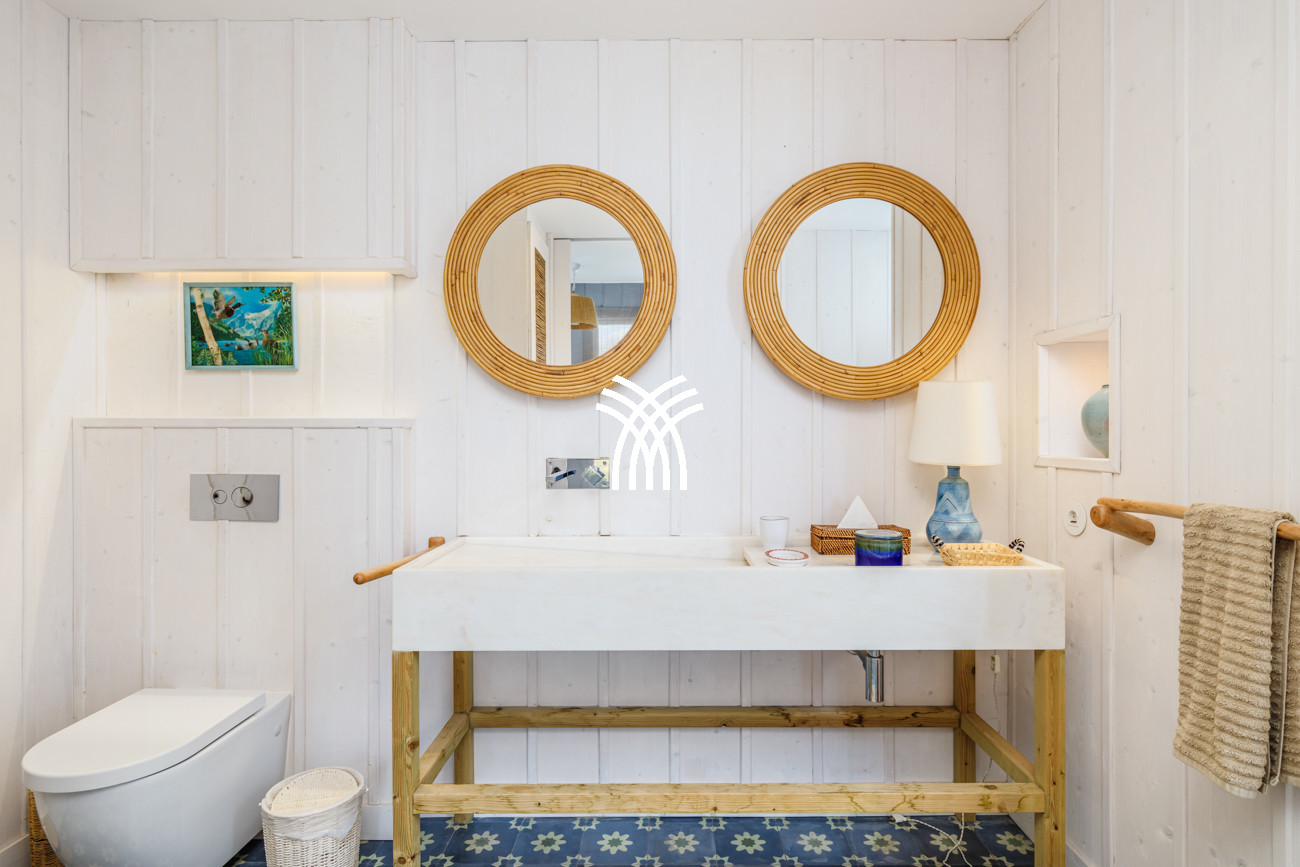 The villa offers three serene bedrooms designed to accommodate up to six guests, each conceived as a tranquil refuge where comfort and privacy are subtly elevated by refined design. Throughout the home, every element is thoughtfully curated to maintain a close dialogue with nature, from the choice of materials to the soft transition between interior and exterior spaces.
