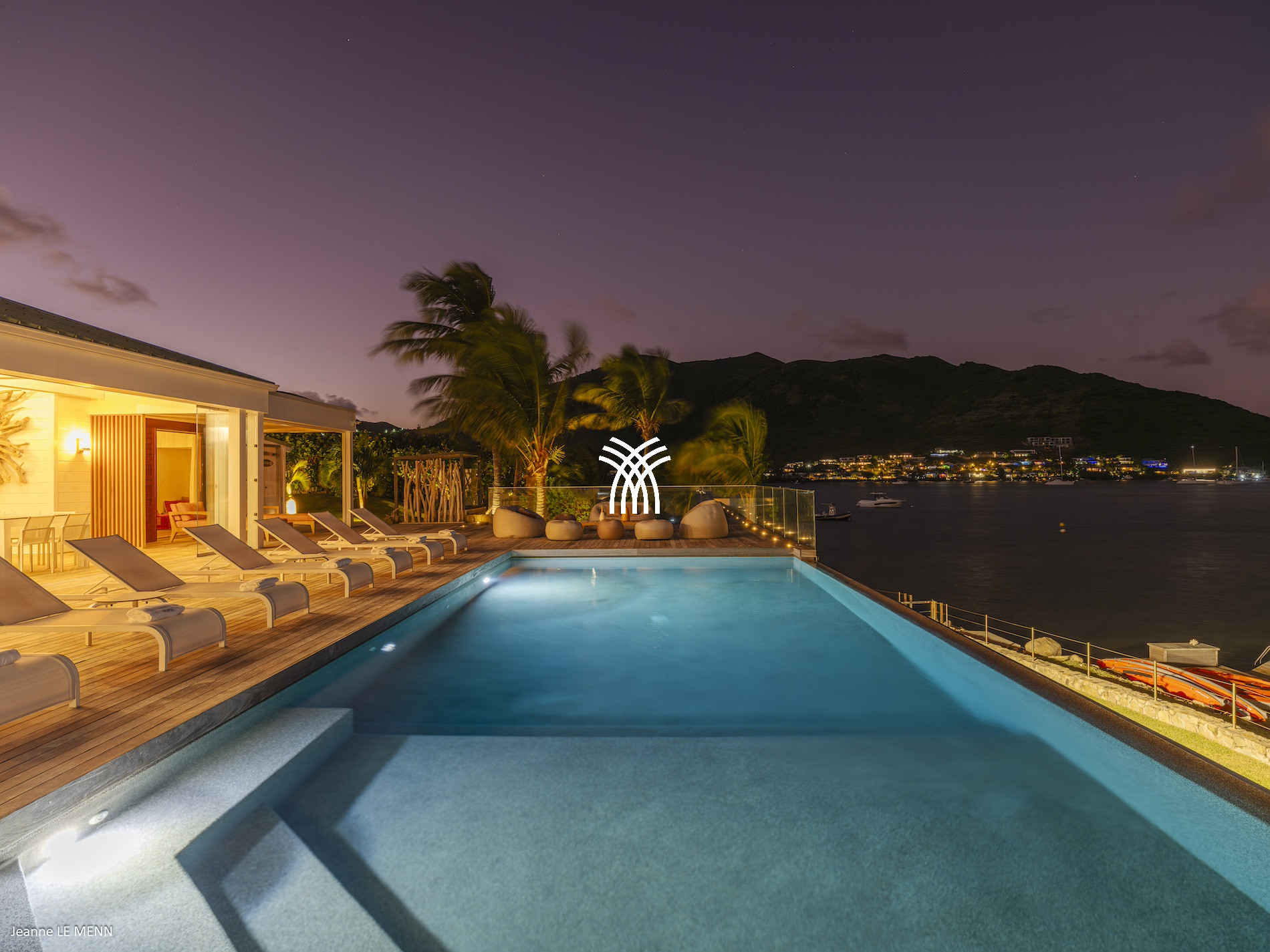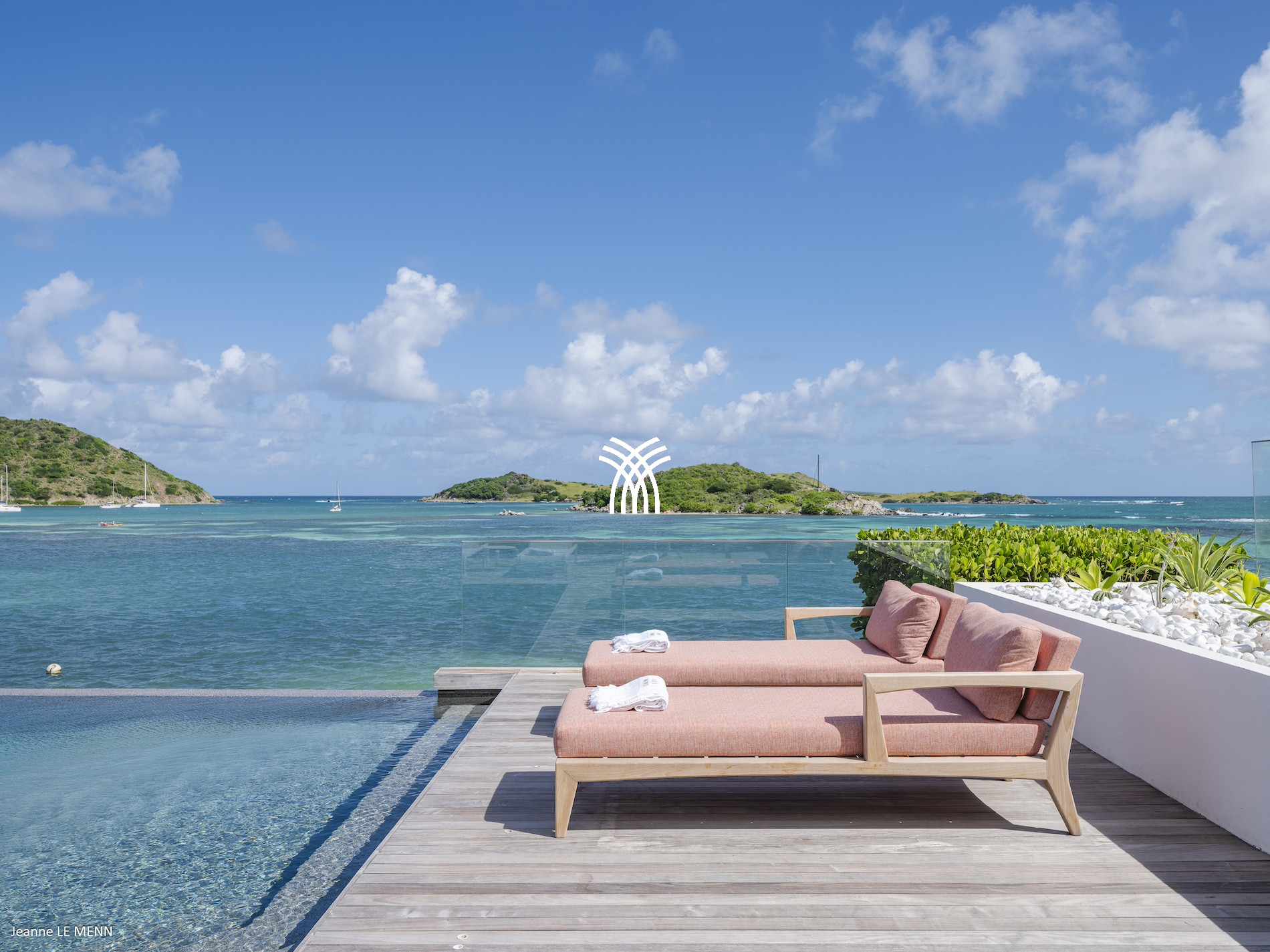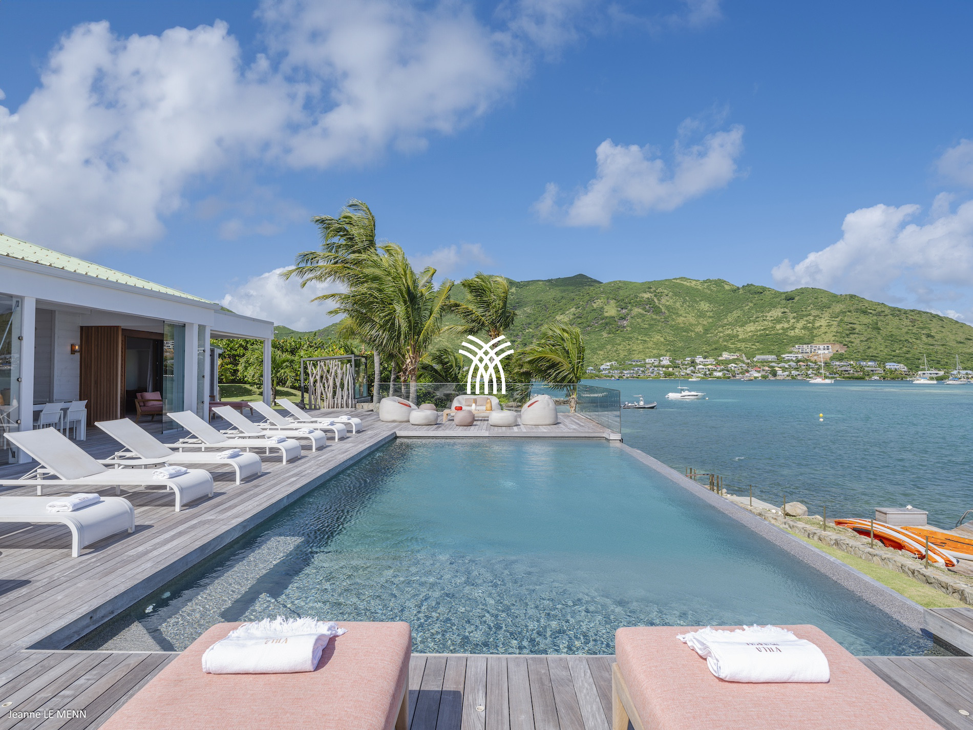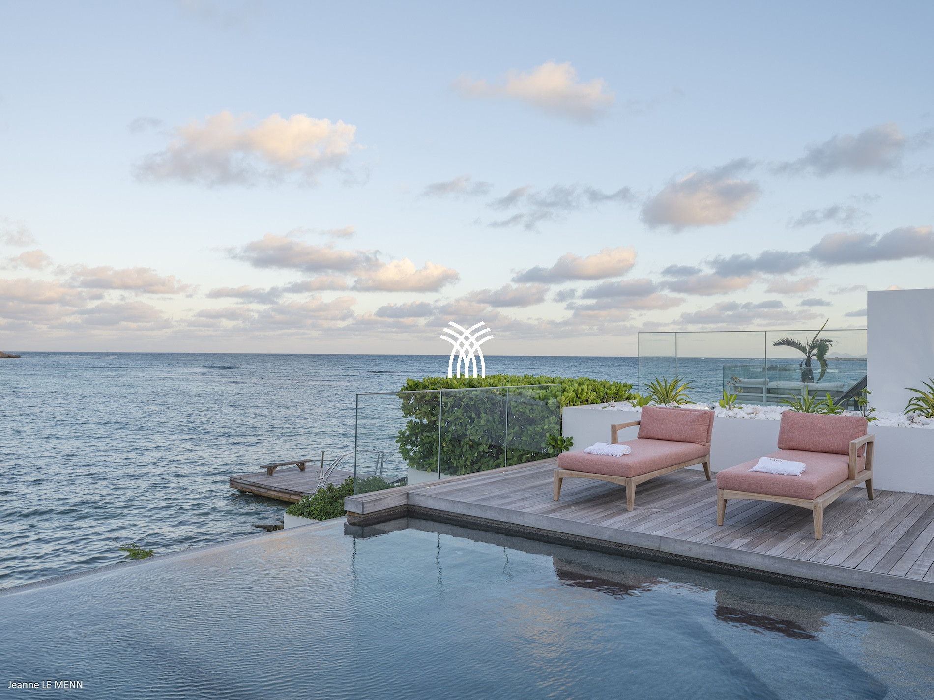 The Villa Mapai is a luxury villa for rent in Saint Martin, located in the private and secure community of Terrasse de Cul de Sac. Directly on the seafront, this luxury villa rental in Saint Martin offers a spectacular view of Pinel Island and the Cul de Sac Bay, an ideal location for a beachfront stay.