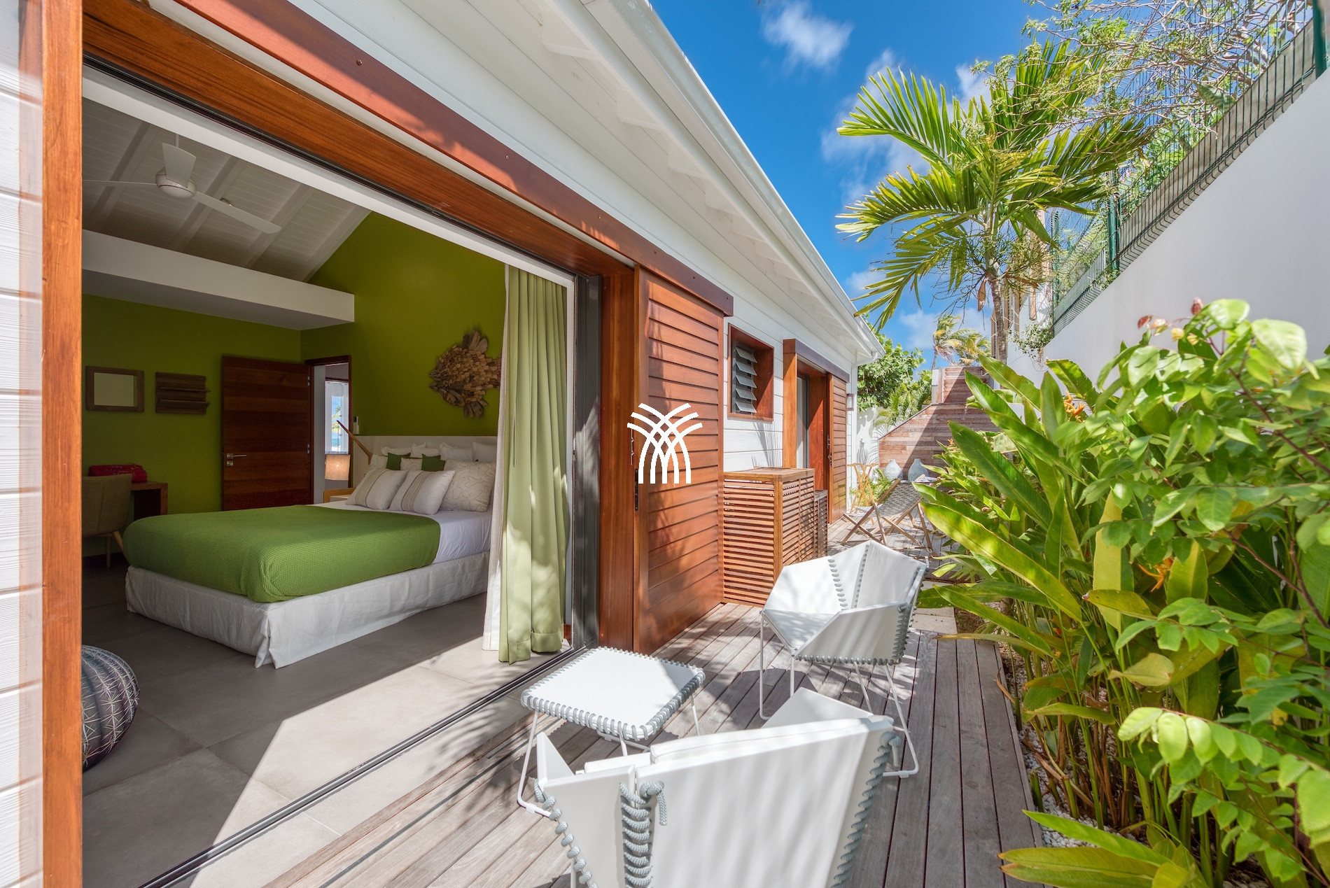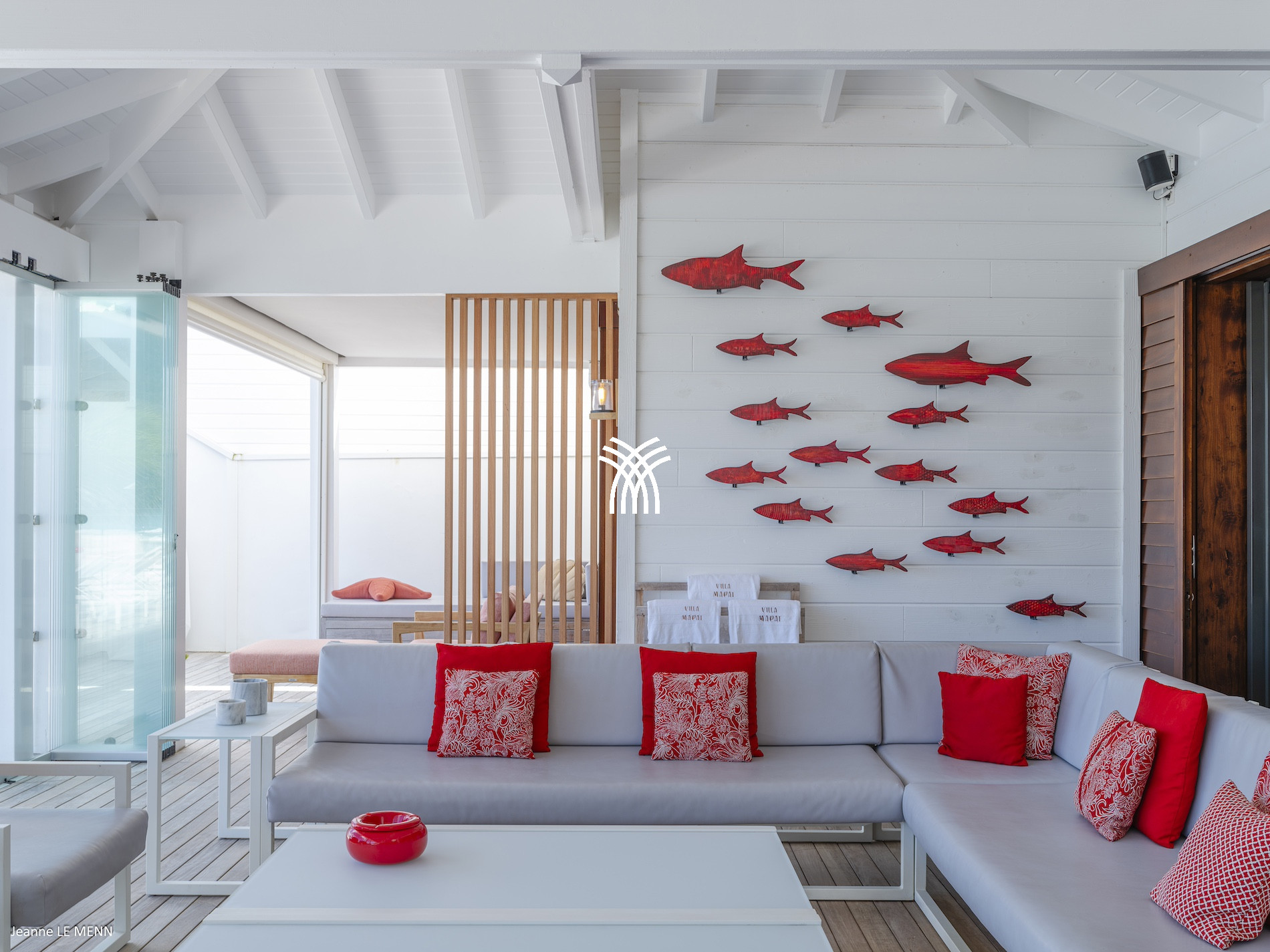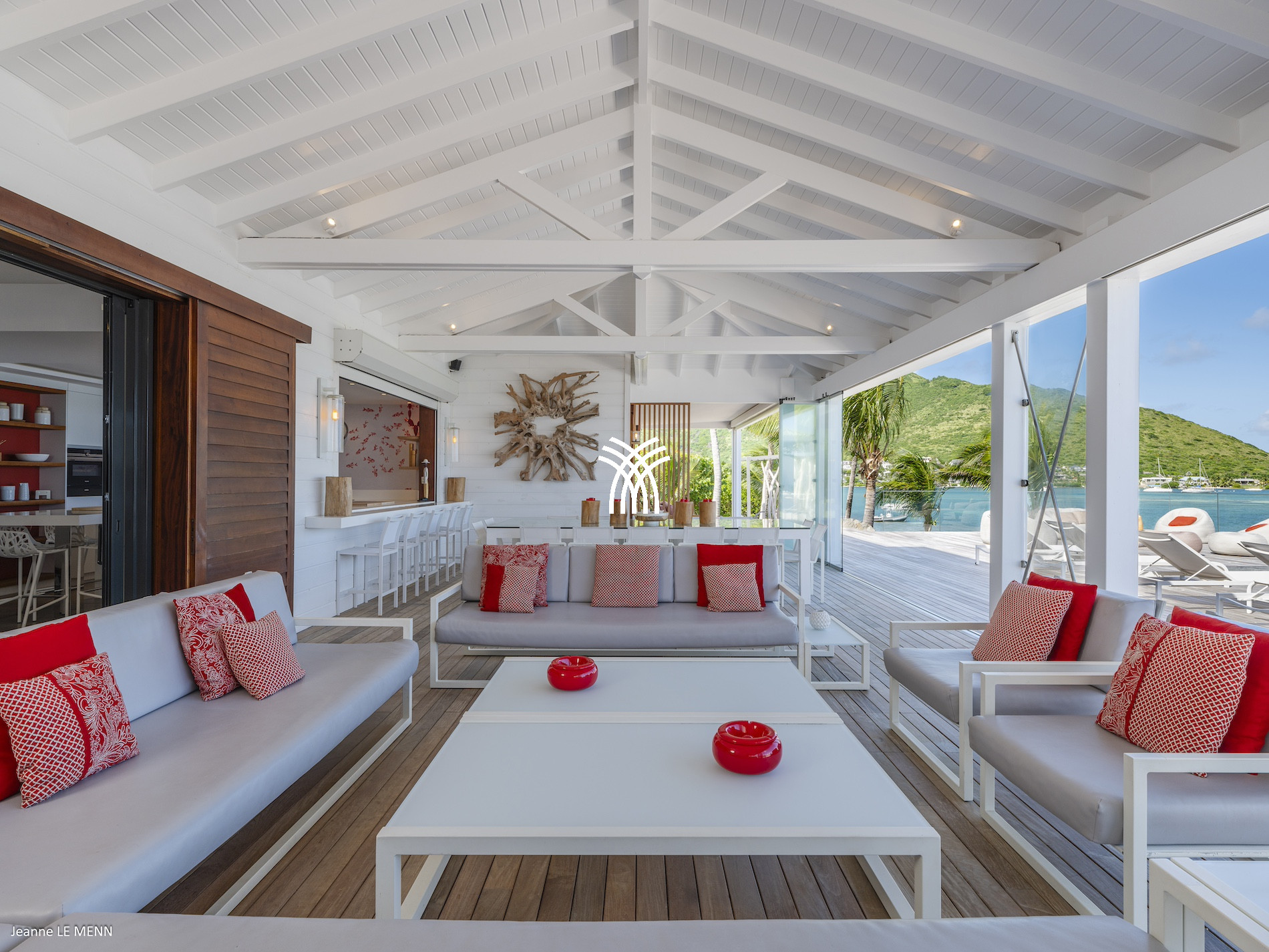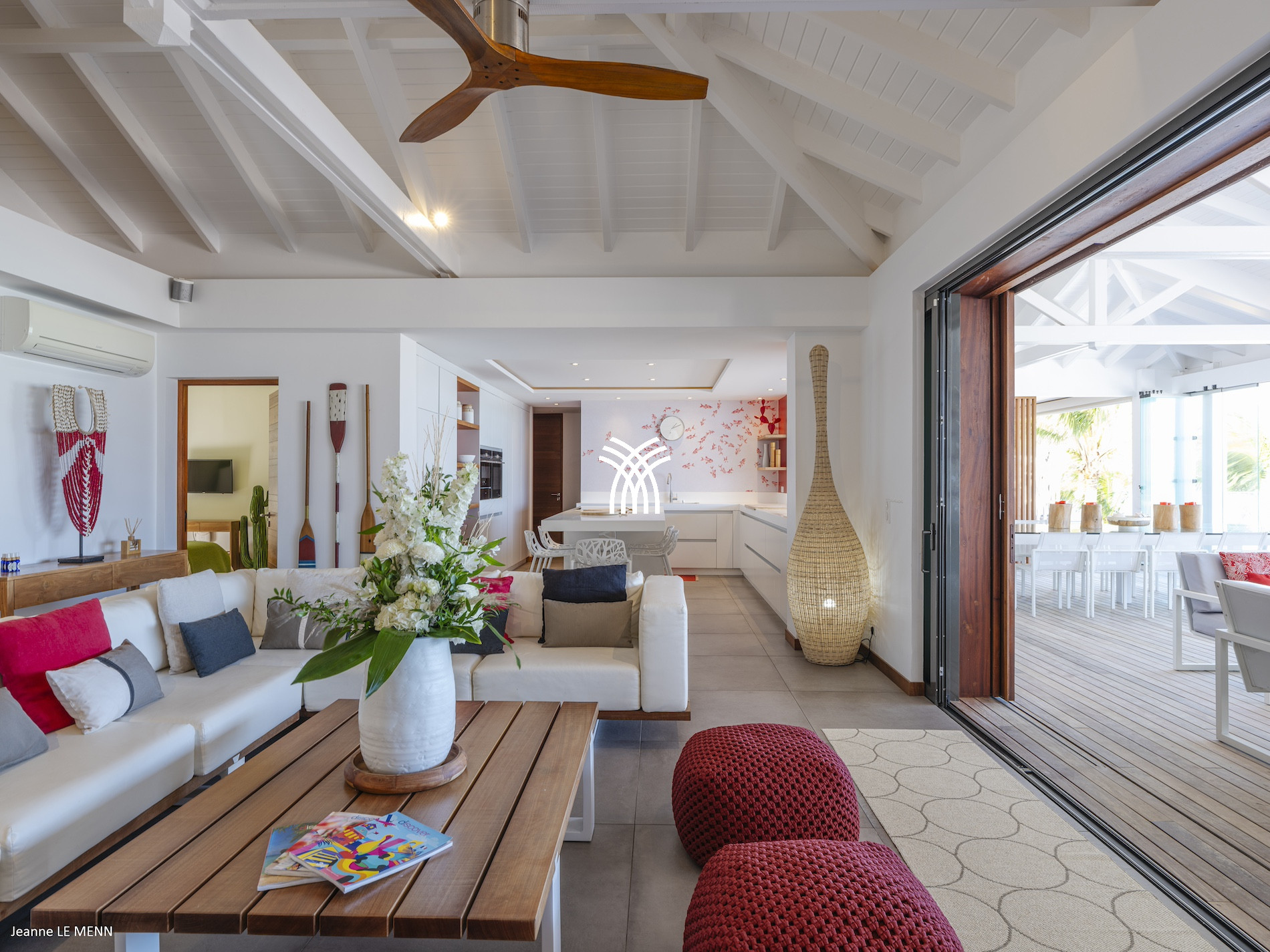 The Villa Mapai is a luxury villa for rent in Saint Martin, located in the private and secure community of Terrasse de Cul de Sac. Directly on the seafront, this luxury villa rental in Saint Martin offers a spectacular view of Pinel Island and the Cul de Sac Bay, an ideal location for a beachfront stay.