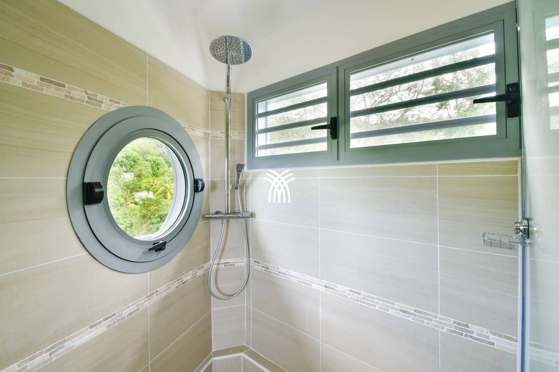 Villa Swell is gorgeous. It's brand new, very clean, has a beautiful pool and a lovely view of the water off the Grand Anse and the Deshaies harbor. The pictures seem to flatten the house somehow: it is both larger and nicer than the Ikea-catalog-style photos on the site. The beds and linens are new and comfortable the en-suite bathrooms are large, quite stylish, and have rain showers with plenty of hot water and the air conditioning in each room works perfectly. Every room has a sliding glass door with a screen that opens to a view of the bay. Two rooms have small, covered gardens adjacent to the bathroom. The upstairs bedroom has its own small terrace and a portal window. The kitchen is large and the appliances are new and work well. The huge sliding glass doors that open off the living room allow you to create an indoor/outdoor space with a view. We ate every meal on the large tables by the pool. There are plenty of comfortable chairs, loungers and towels. The washer/dryer is a nice touch. Wi-Fi is very fast.