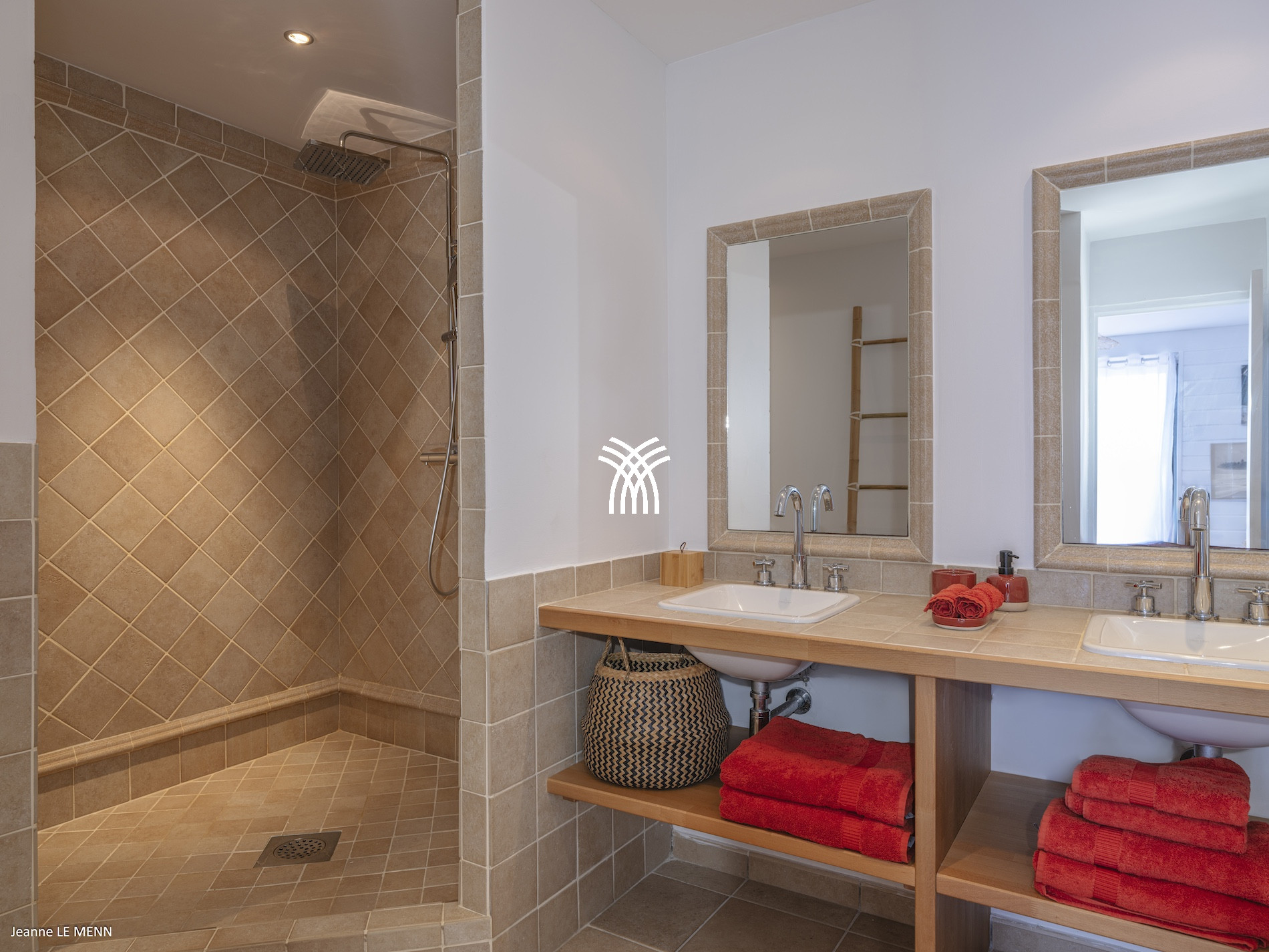 At the lower level, two other rooms, decorated with refinement, open directly onto the villa's private pool. This intimate space is ideal for relaxing by the water, admiring the surrounding landscapes, or refreshing oneself at any time of the day. Each room has its own private bathroom to ensure comfort and privacy for all guests.