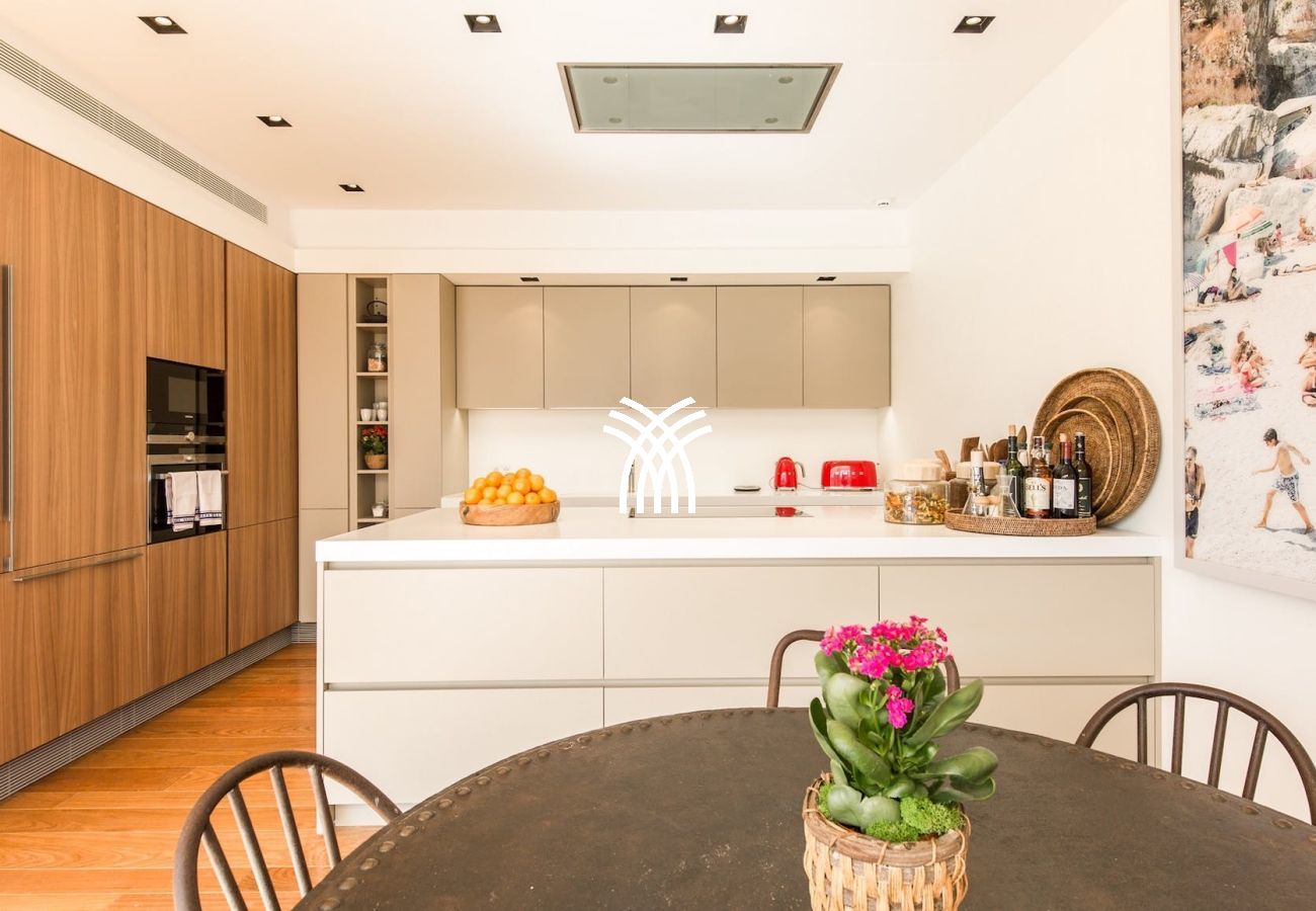 Designed for those who value beauty, comfort, and peace, this elegant villa boasts a spacious open-plan layout with a fully equipped modern kitchen featuring a sleek 4-meter island and dining for ten. The expansive living area flows seamlessly through sliding glass doors onto the sun-drenched terraces and pool deck, all framing uninterrupted views of the Mediterranean Sea.