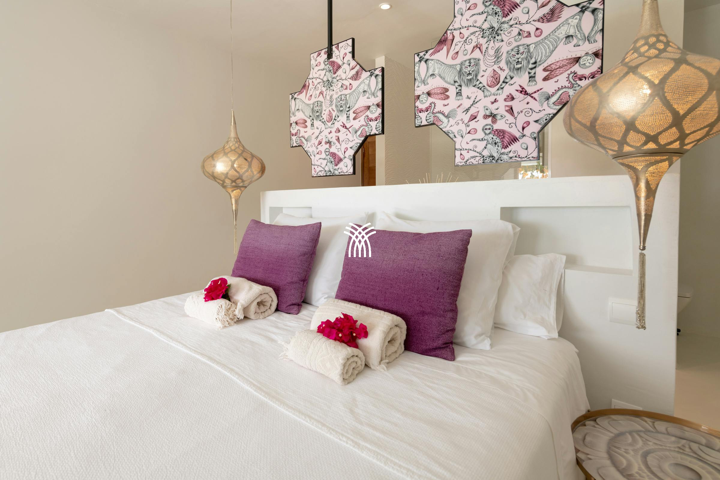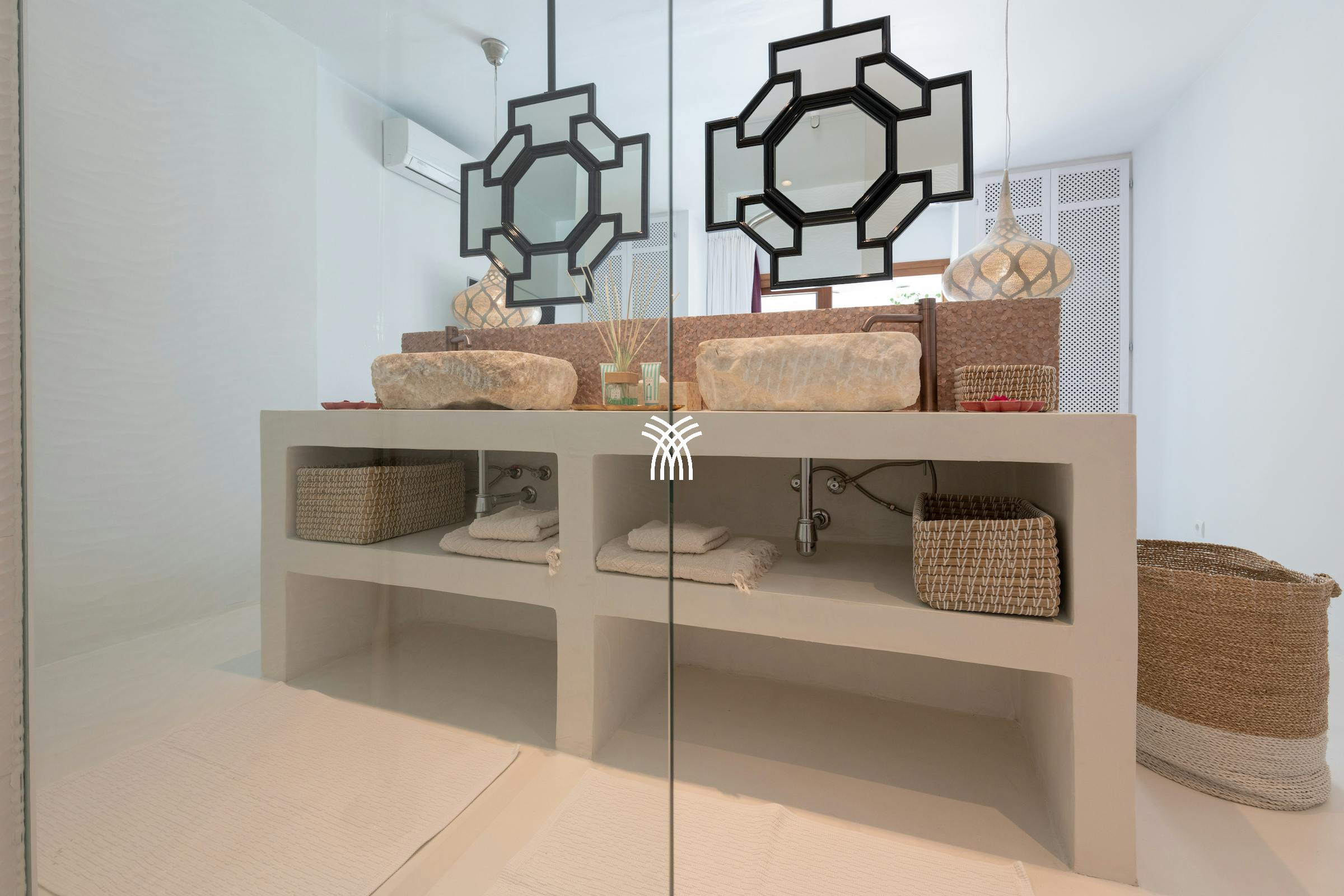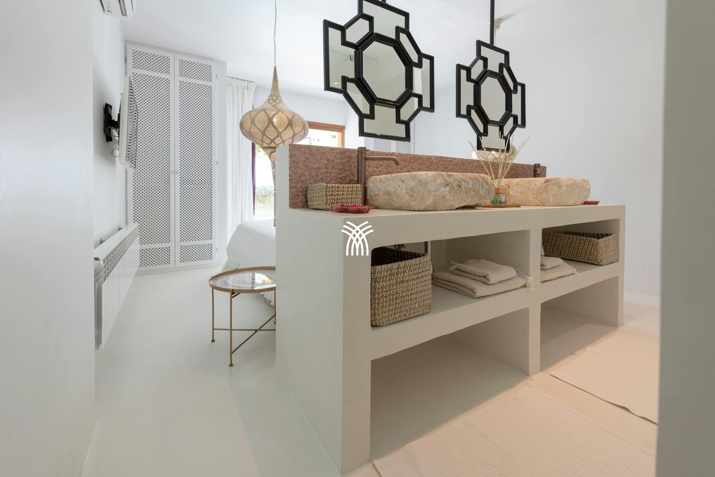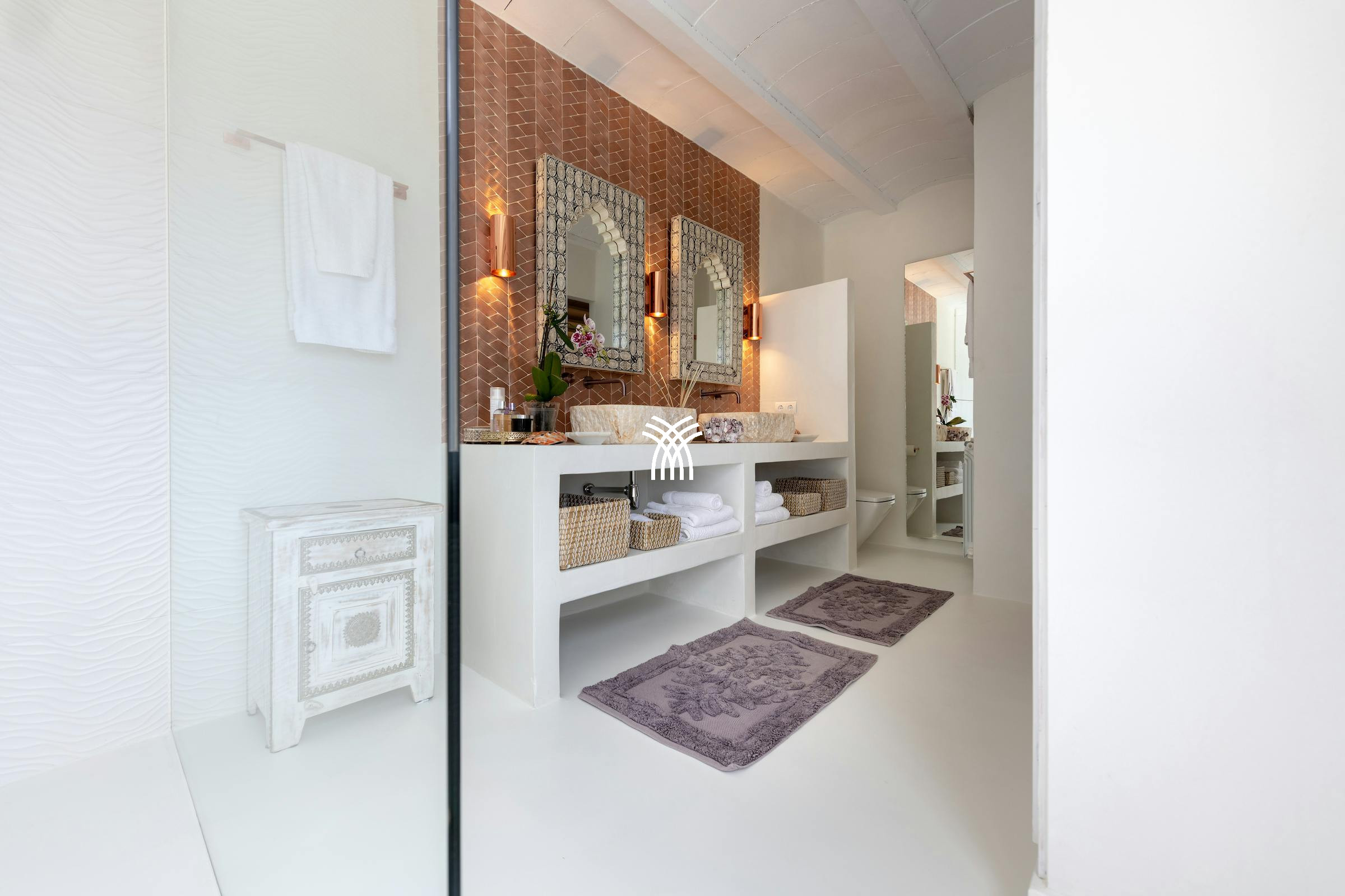 Each of the spacious bedrooms has been thoughtfully designed in soft neutrals with vibrant pops of color, all offering stunning sea views and direct terrace access. Elegant en-suite bathrooms crafted from natural stone provide spa-like comfort in a peaceful, light-filled setting.