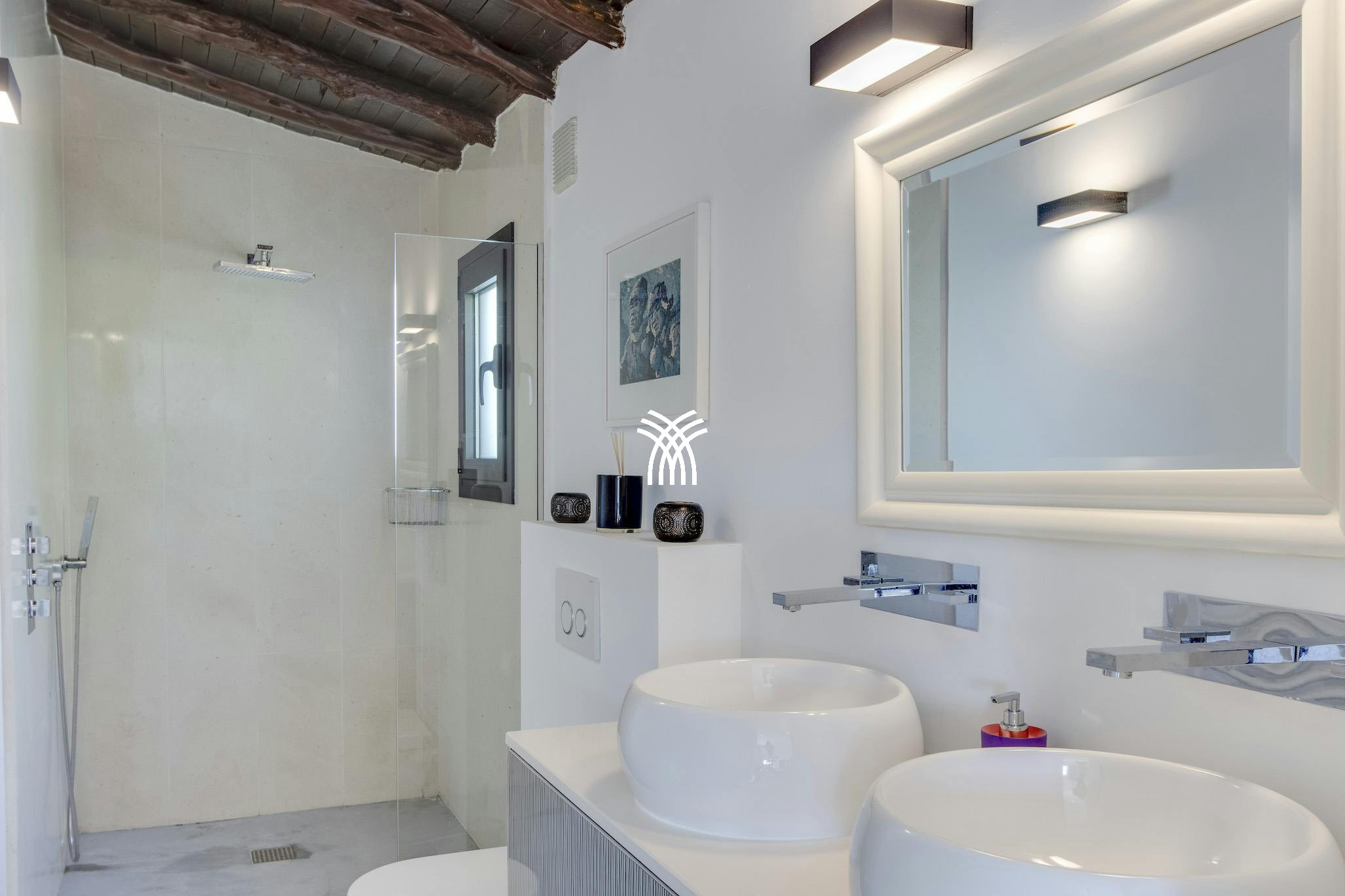 Villa Viviana hosts three stunning double bedrooms with en-suite bathrooms. Two are located in the main house, each with panoramic sea views, air conditioning, and underfloor heating. The top floor suite offers added privacy, a large terrace, and commanding views of Es Vedra and the surrounding coastline.