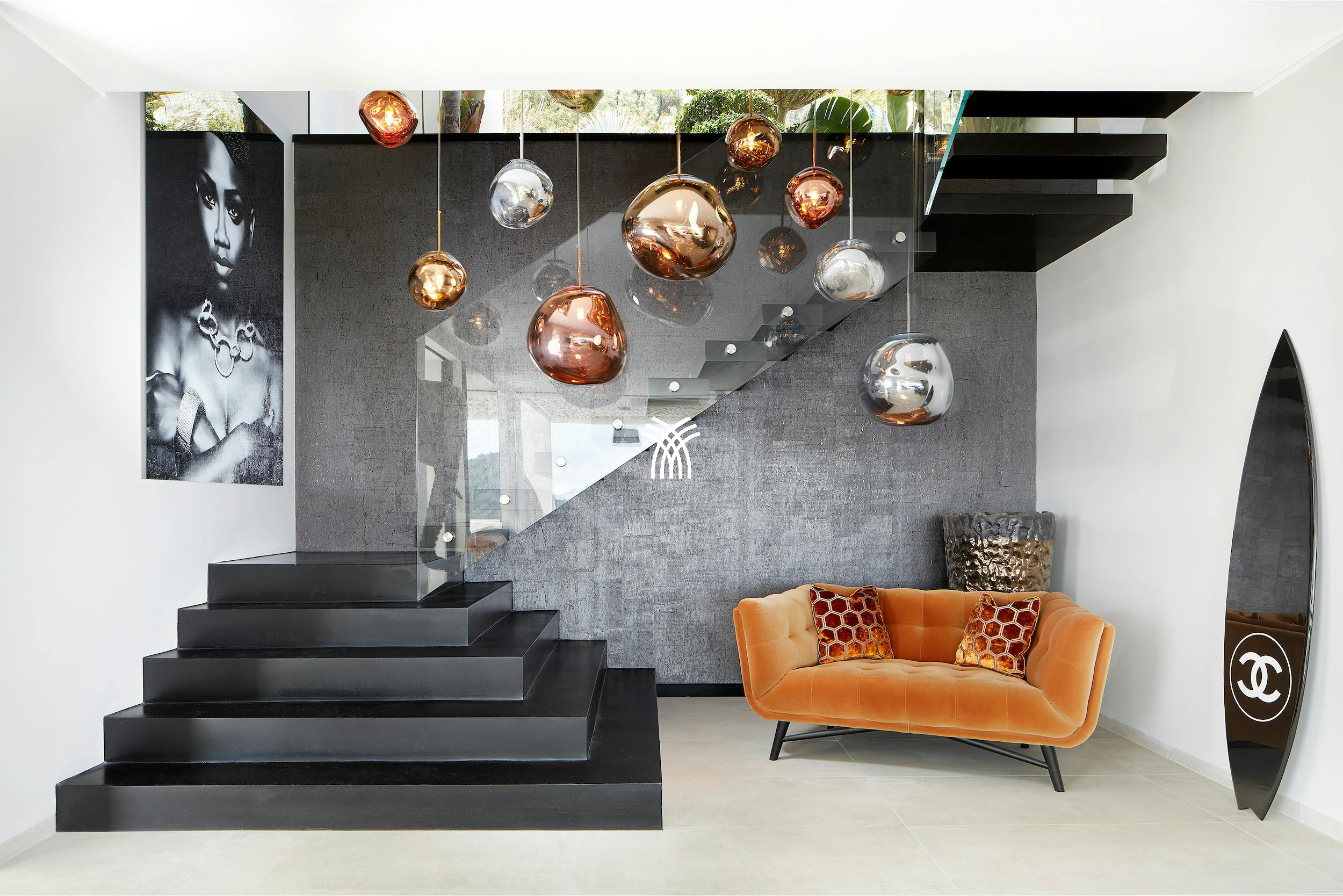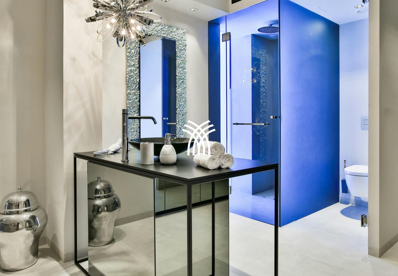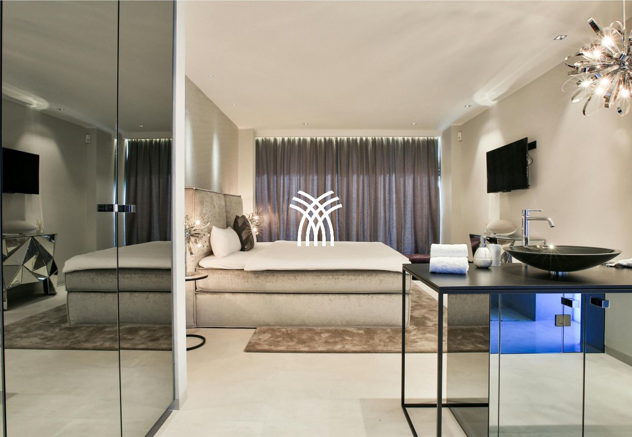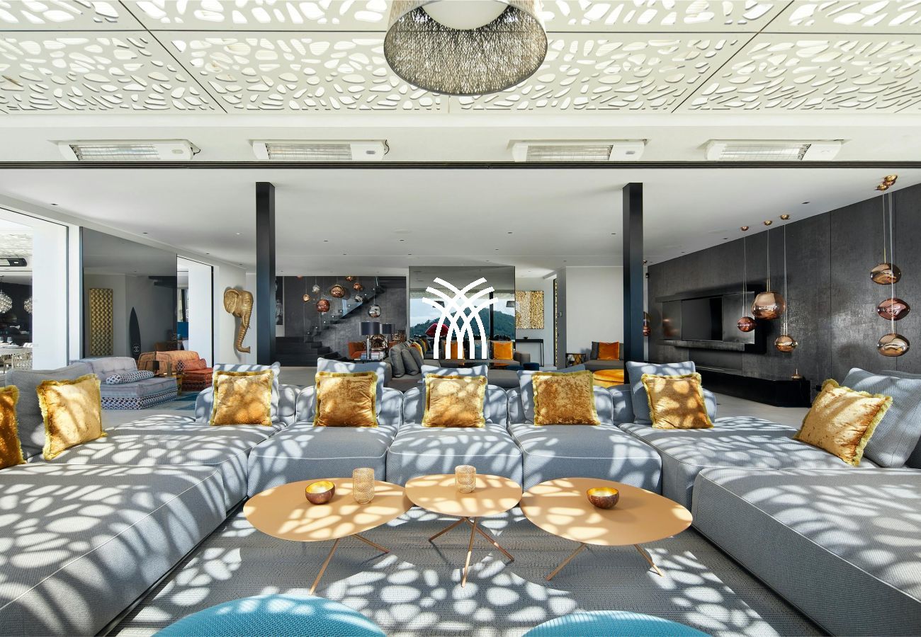 The property consists of five sumptuous suites with private bathrooms, four of which are on the upper floor, all equipped with large-screen televisions, Zeppelin audio systems, and high-end bedding. On the ground floor, a fifth en-suite room is easily accessible. The spacious, bright living room overlooks a panoramic terrace, while the dining room can accommodate up to 14 guests. The professional Zeyko kitchen is equipped with state-of-the-art appliances: ovens, steamer, teppanyaki grill, ice maker, Siemens walk-in refrigerator.