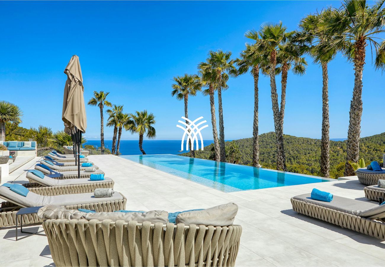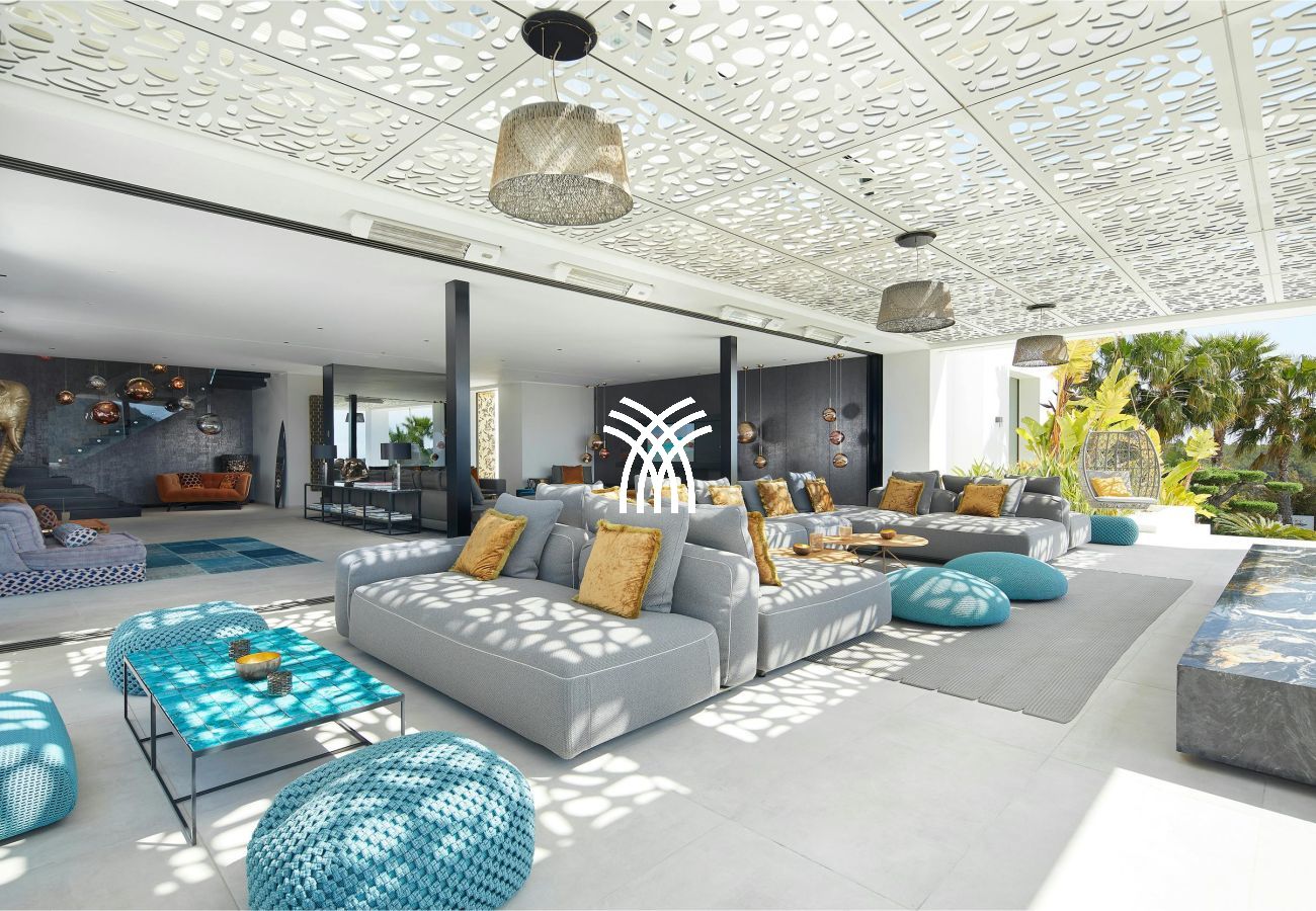 Perched on the heights of S'Estanyol, just five minutes from Ibiza Town and Marina Botafoch, the iDream Villa is one of the most exclusive properties on the white island. With its contemporary architectural lines, its interior space of 841 m², its pool of nearly 120 m² and its landscaped park of 24,000 m², it embodies the ultimate refinement in the heart of the Mediterranean. Offering a spectacular 360° view of the sea, Formentera and the surrounding hills, this prestigious villa guarantees absolute privacy and an incomparable setting.