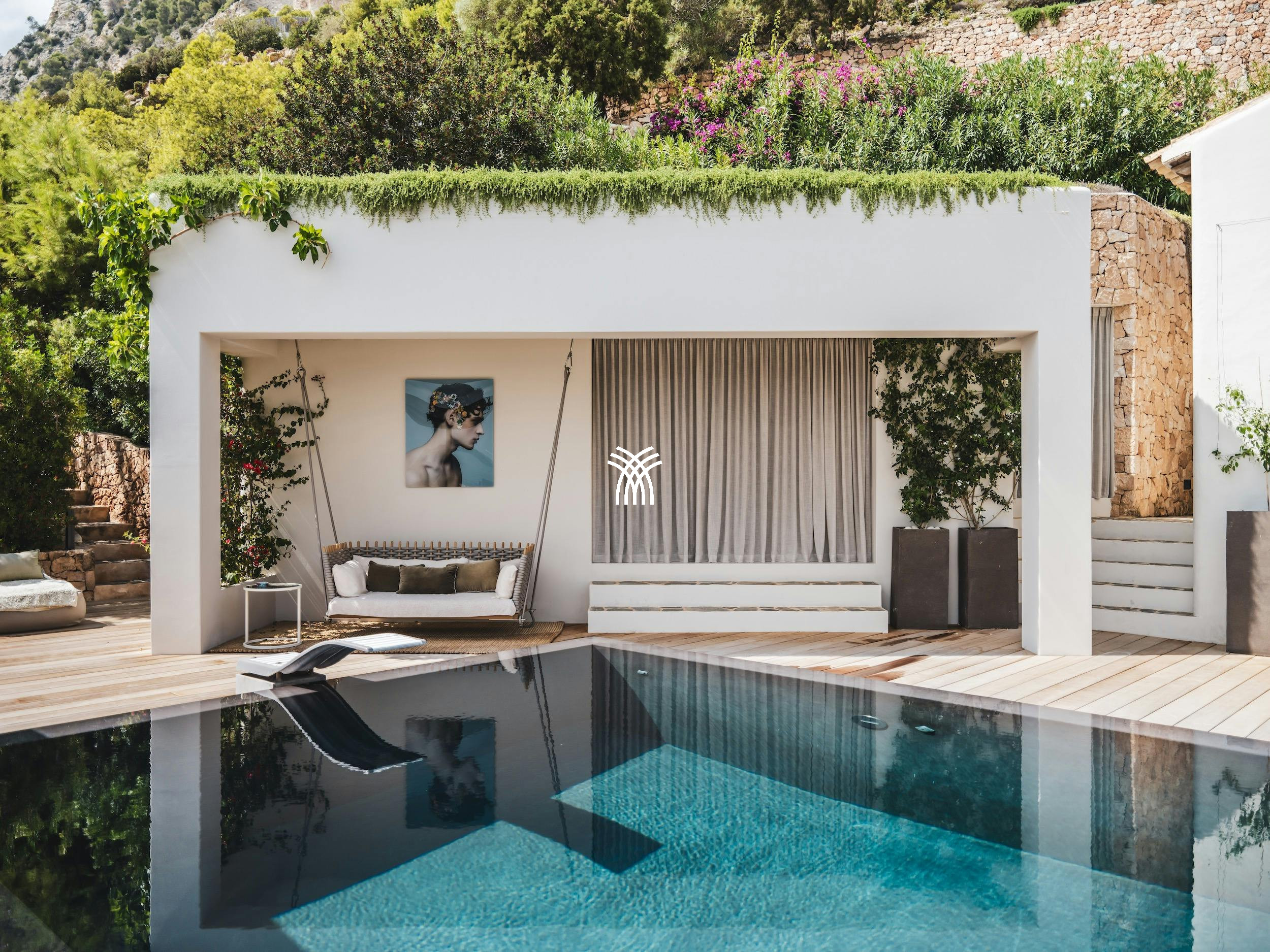 Set on an expansive 8000m² private estate, this stunning Ibiza villa combines sophisticated design with laid-back luxury. The expansive pool terrace, with its freshwater swimming pool, invites guests to bask in the sun on plush daybeds or unwind under shaded parasols while soaking up the stunning sea views. By night, the outdoor space transforms into an atmospheric retreat for starlit gatherings and serene evenings.