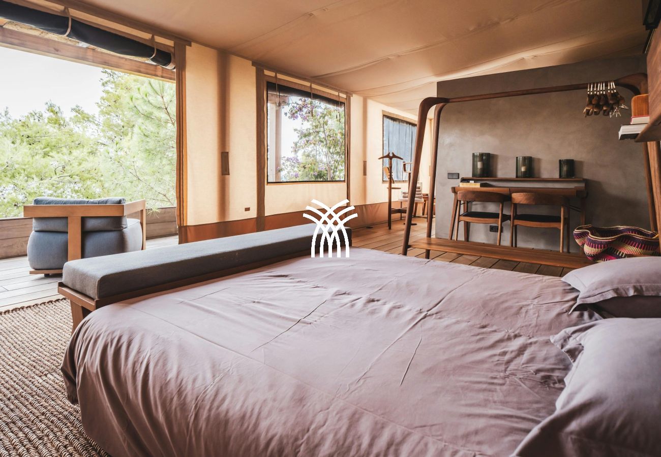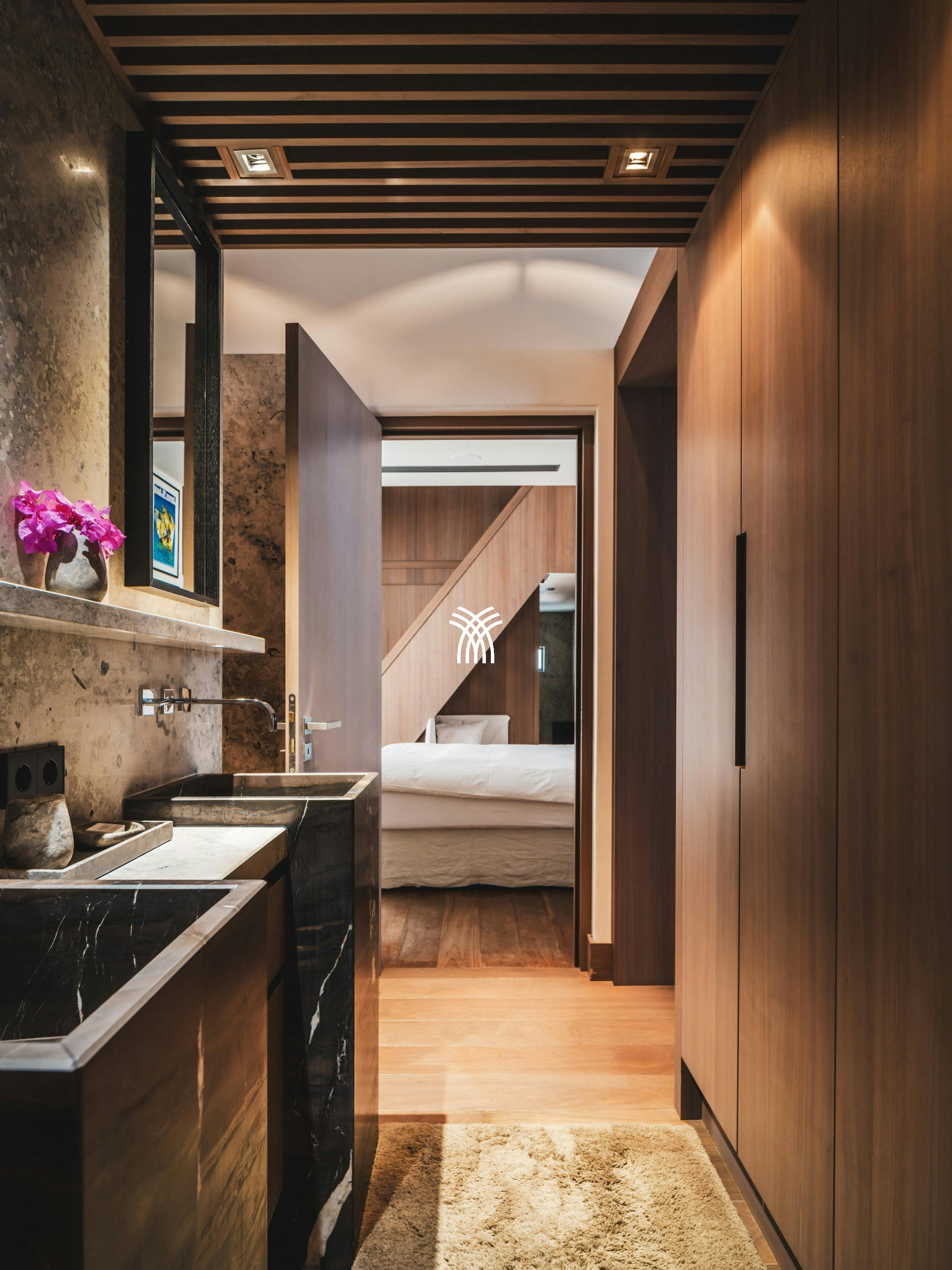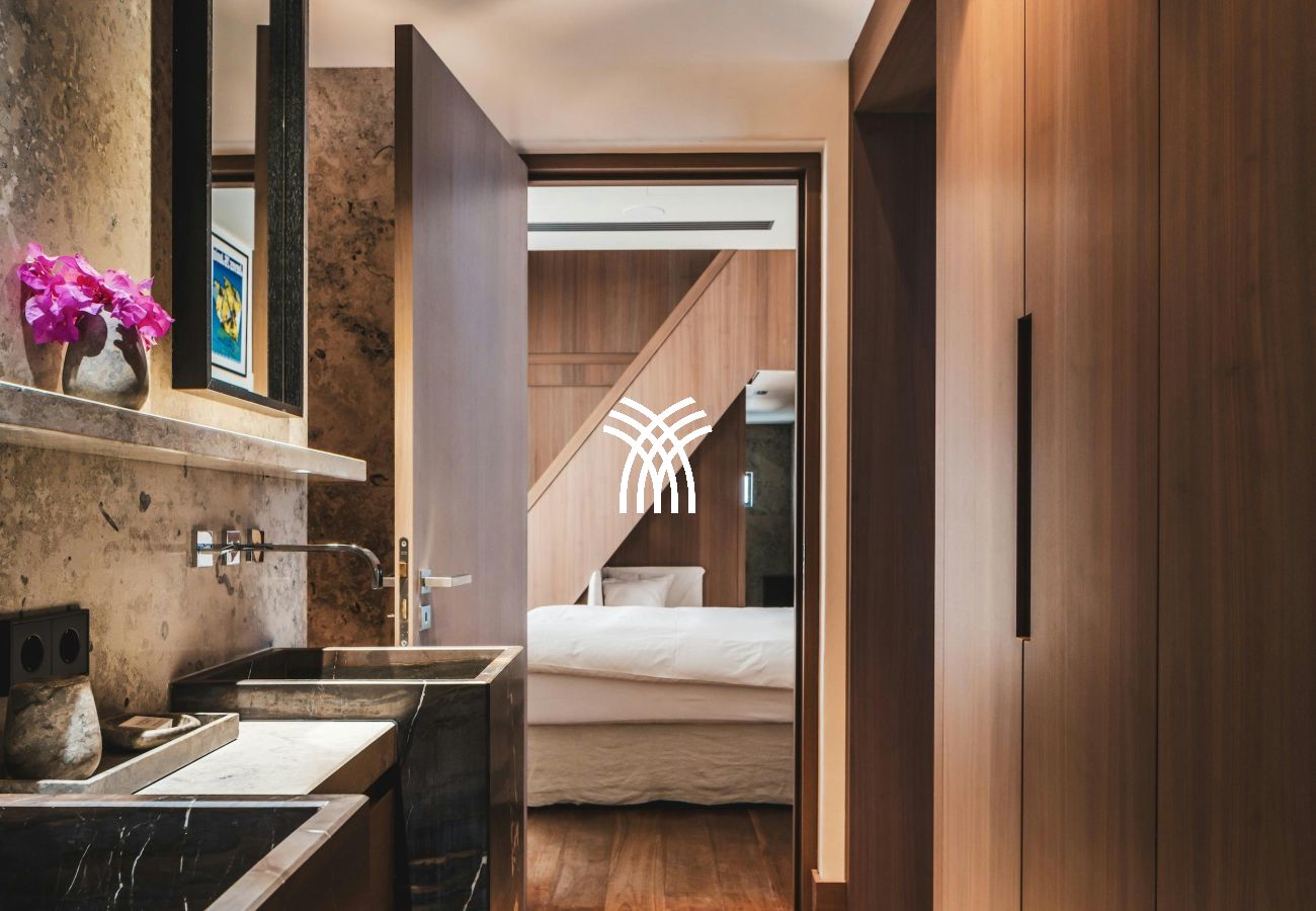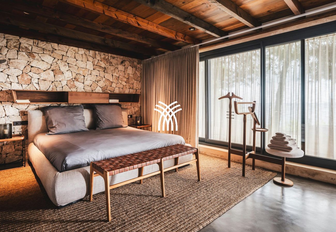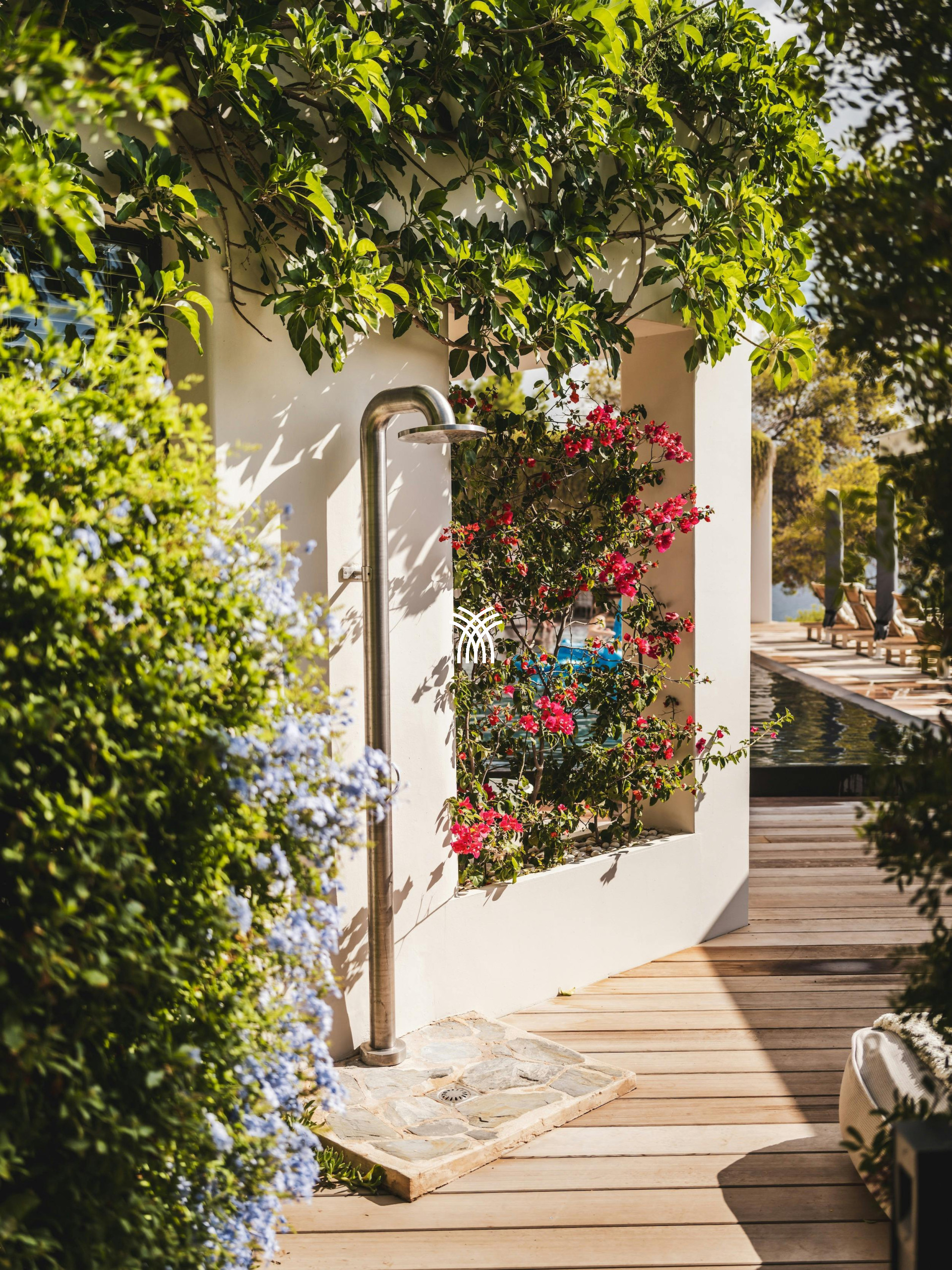 Each of the six double bedrooms is thoughtfully designed with generous natural light, soft linens, and spa-quality en-suite bathrooms. Sliding glass doors reveal private views of the sea or gardens, bringing nature into every room.