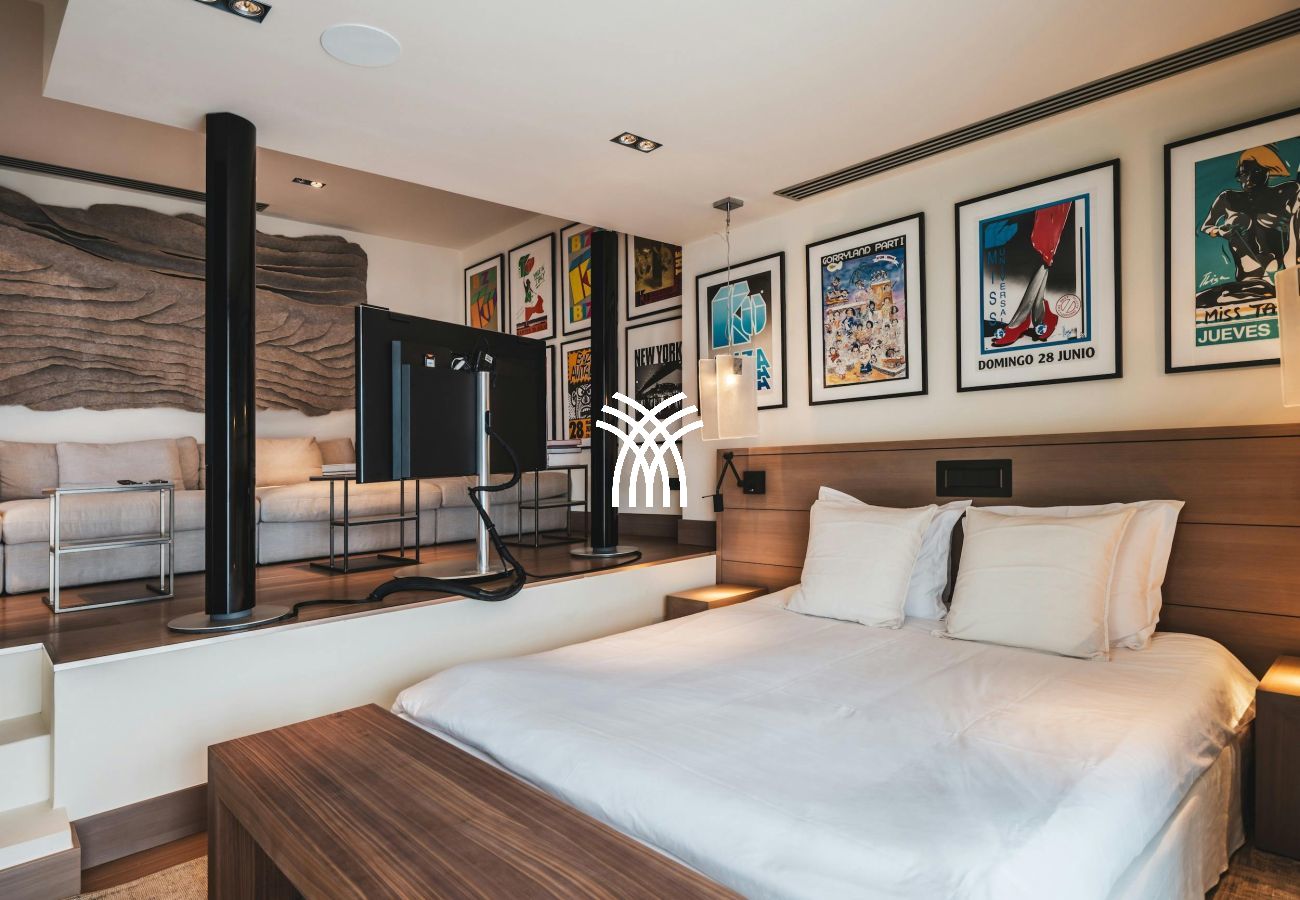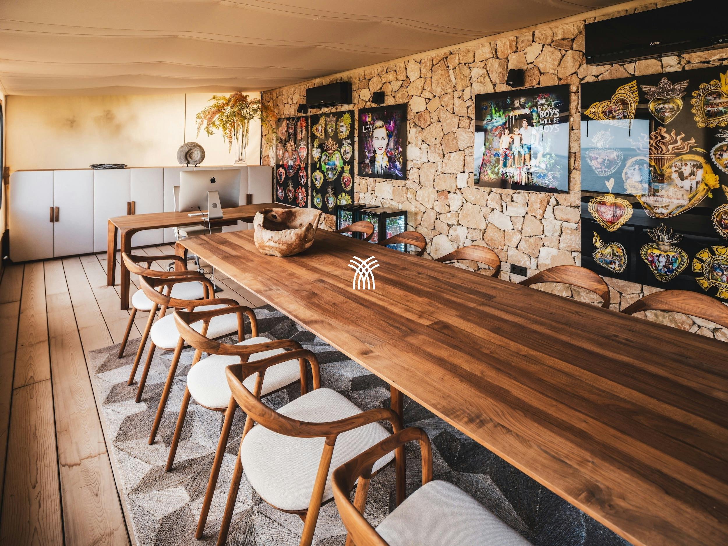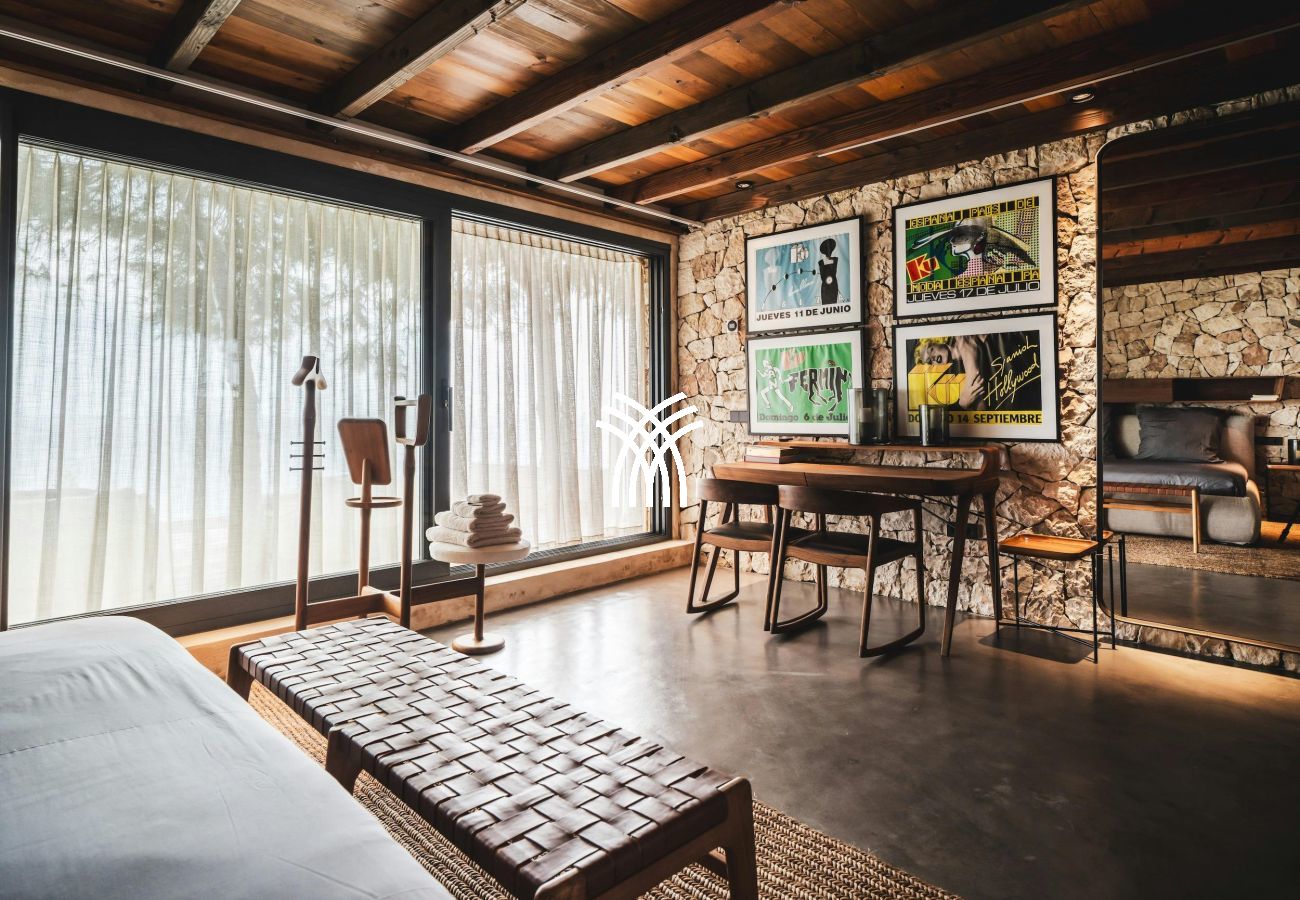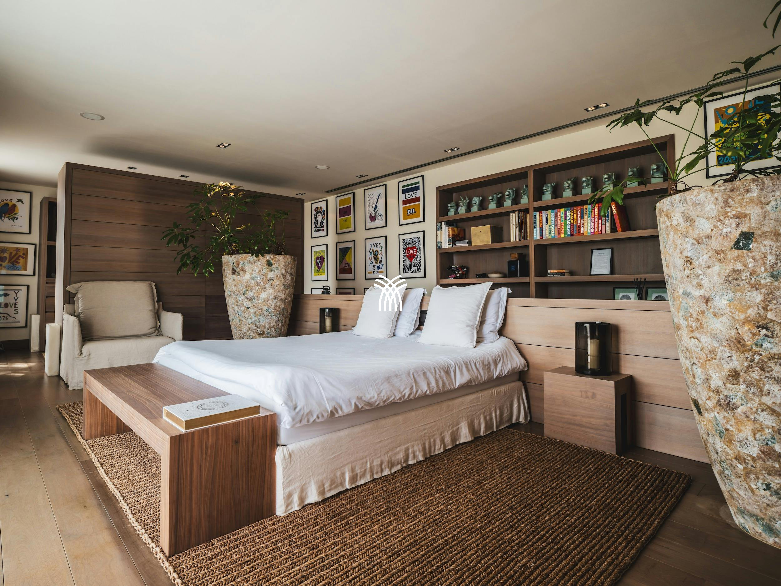 The six serene bedrooms are designed with comfort and versatility in mind, making this Luxury Villa Rental Ibiza ideal for families or groups of couples. Additional amenities include a fleet of vehicles for guest use and a professional staff team led by a dedicated chef, who operates from a separate fully equipped kitchen perfect for daily meals and private events.