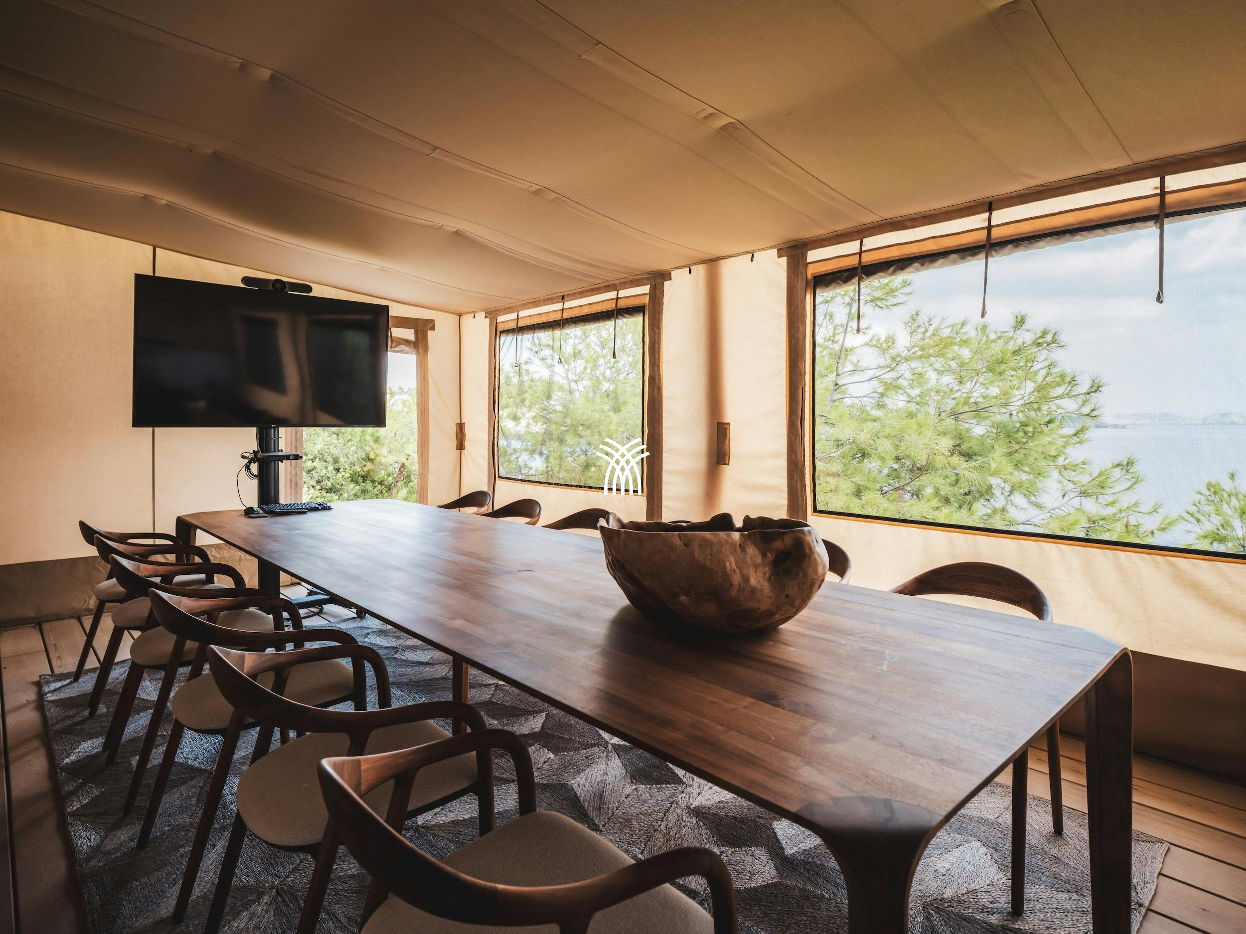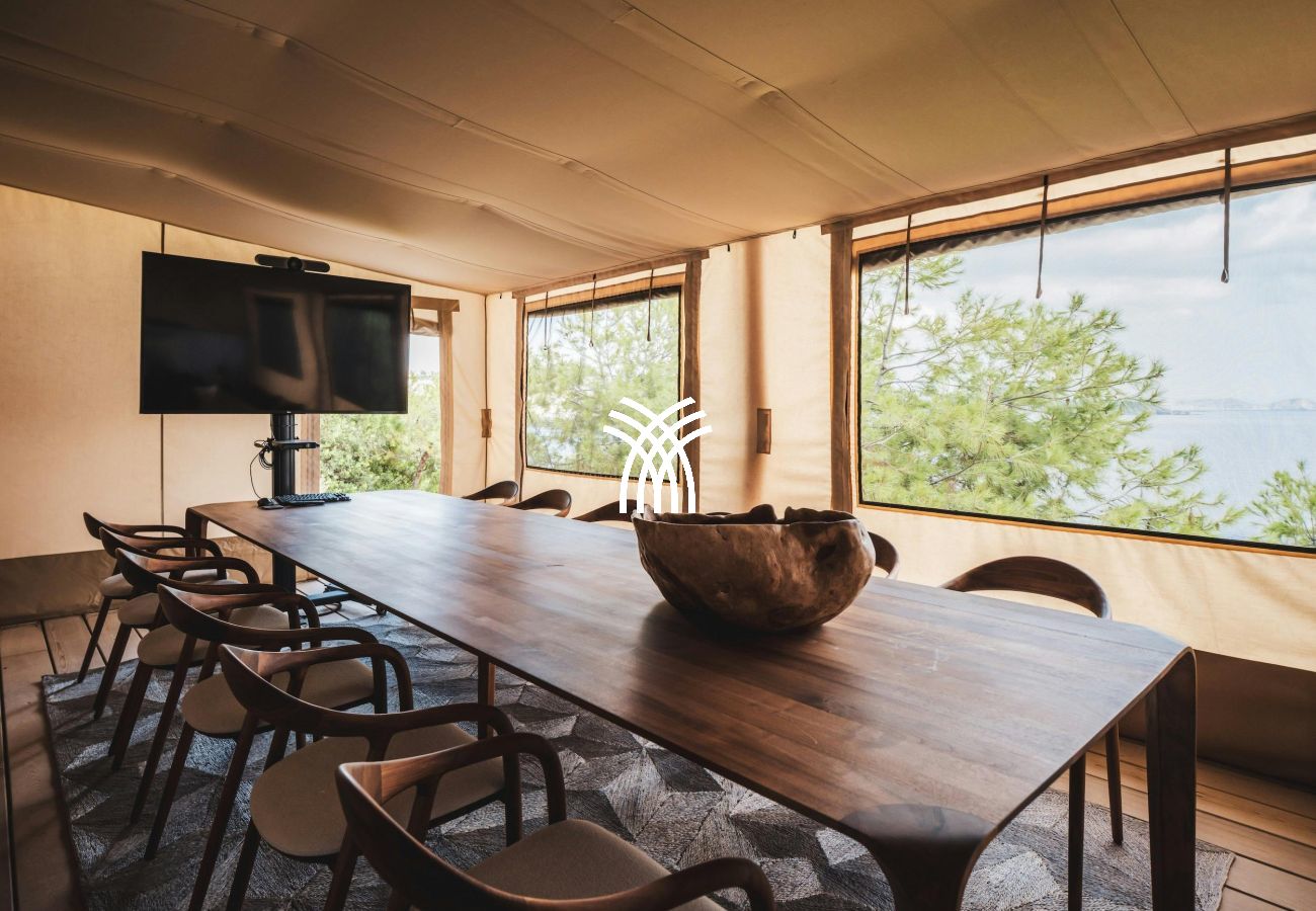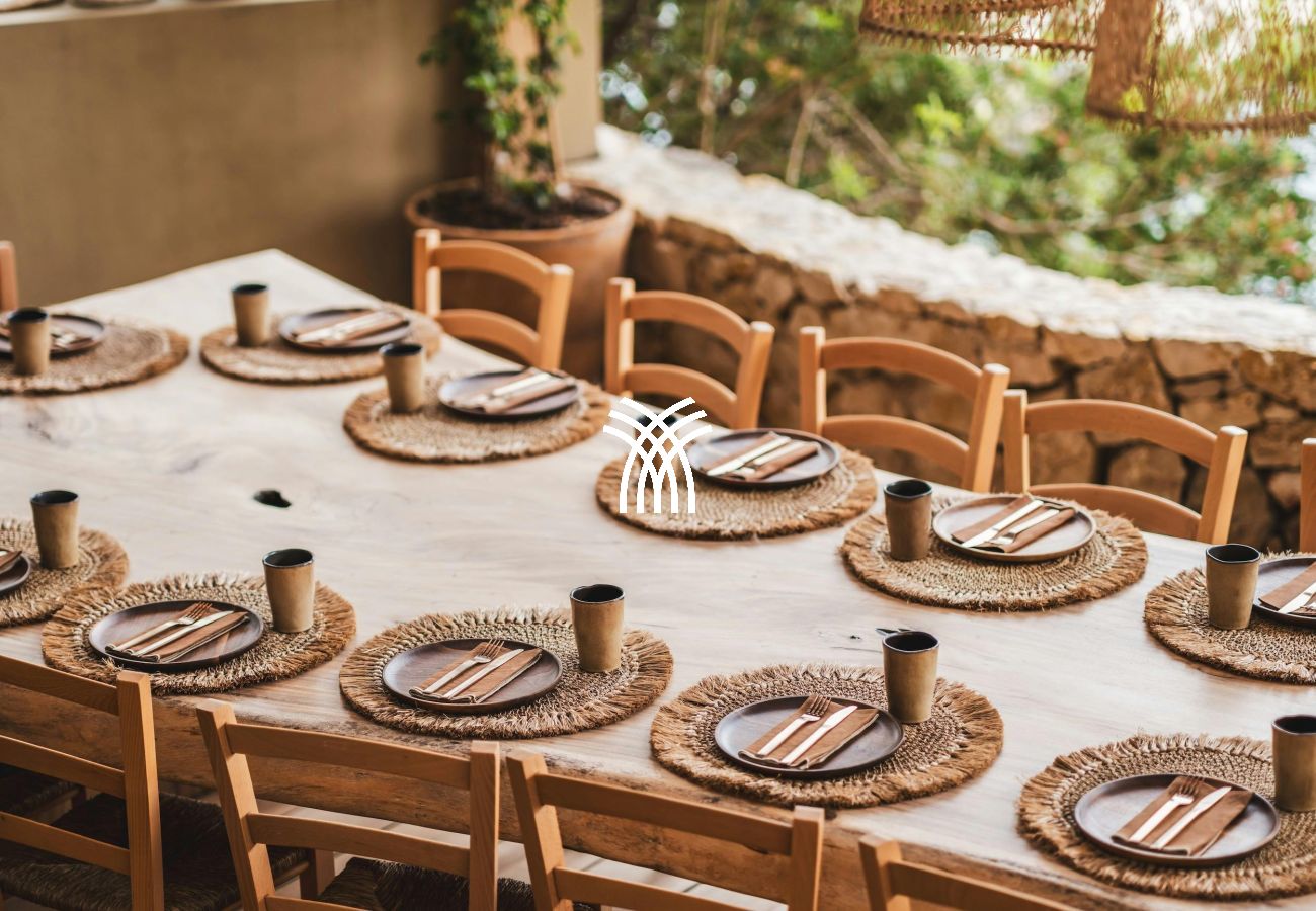 Adjacent to the house, a rustic-style alfresco dining terrace with a grand table for fourteen creates a flawless setting for memorable meals with friends or family. Whether enjoying breakfast under the morning sun or hosting an evening dinner party, this space invites connection and celebration.