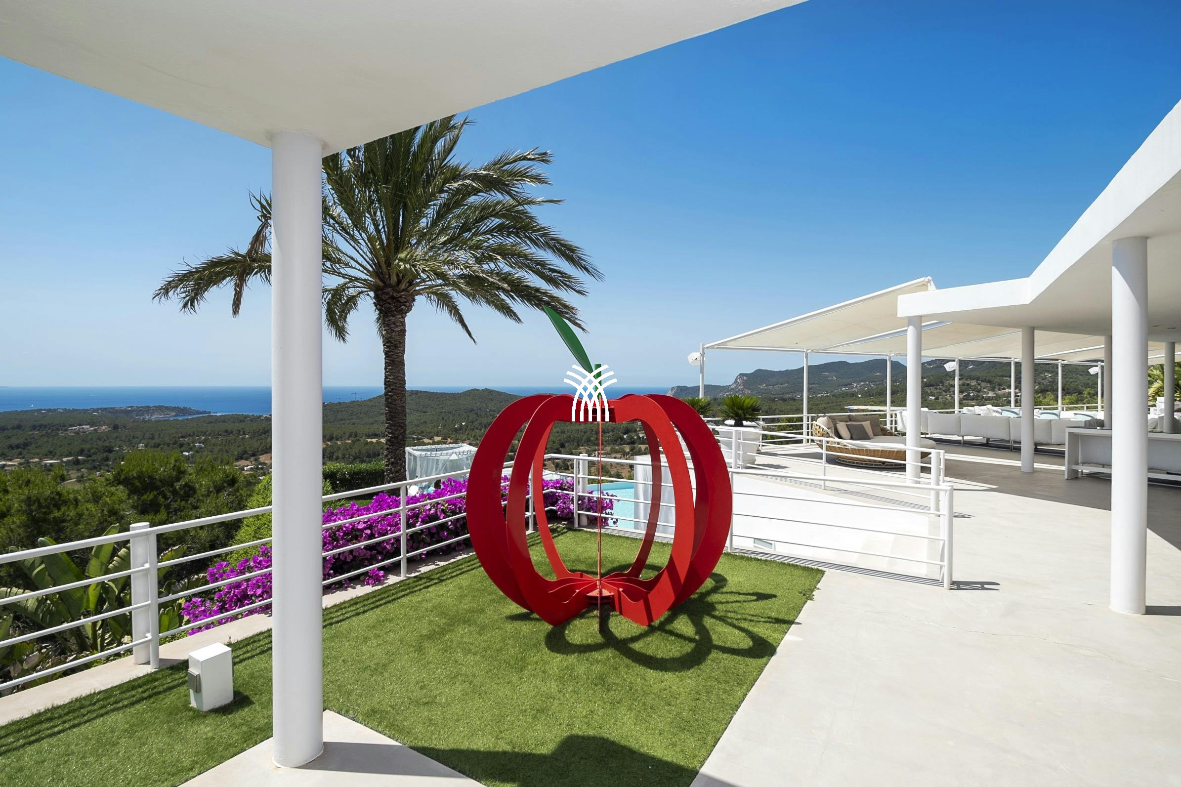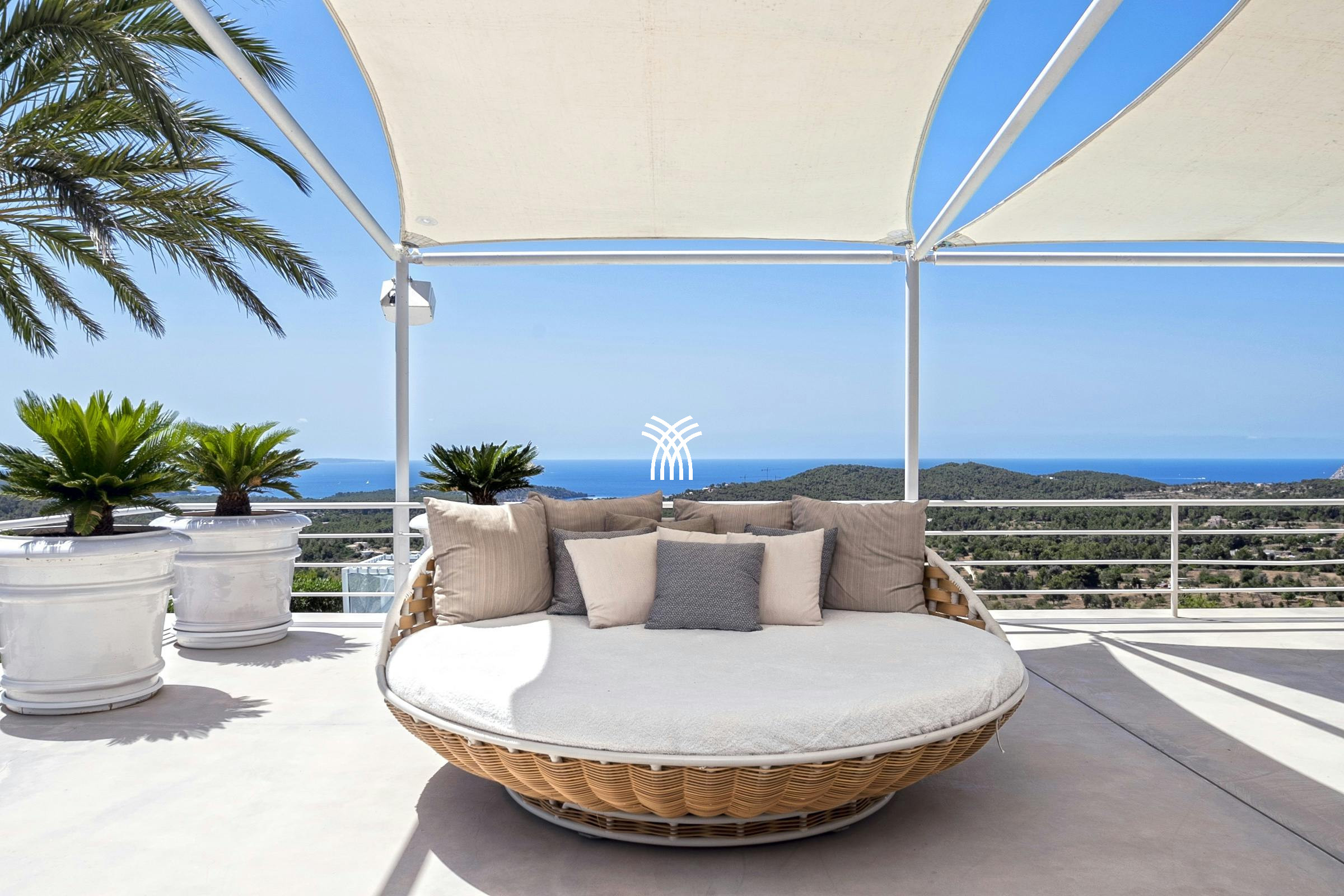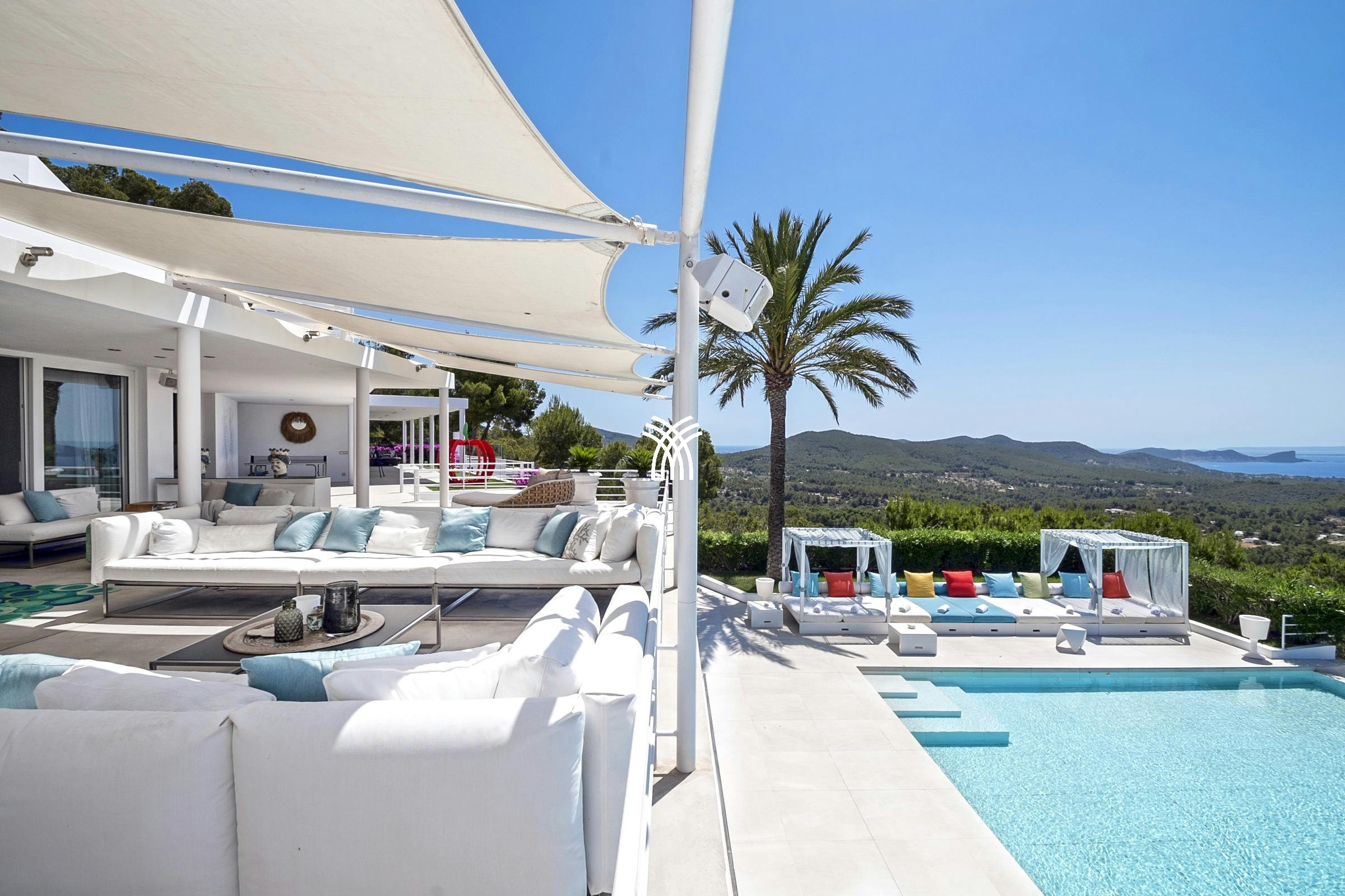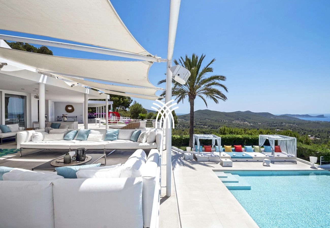 Experience elevated island living with this Luxury Villa Rental Ibiza, an impressive hillside retreat offering breathtaking panoramic views over the Balearic Sea. Just 4km from Ibiza Town, this exclusive property is perfectly positioned to overlook Playa d’en Bossa, Cap des Falco, and the shimmering Las Salinas salt flats, all the way to the island of Formentera.