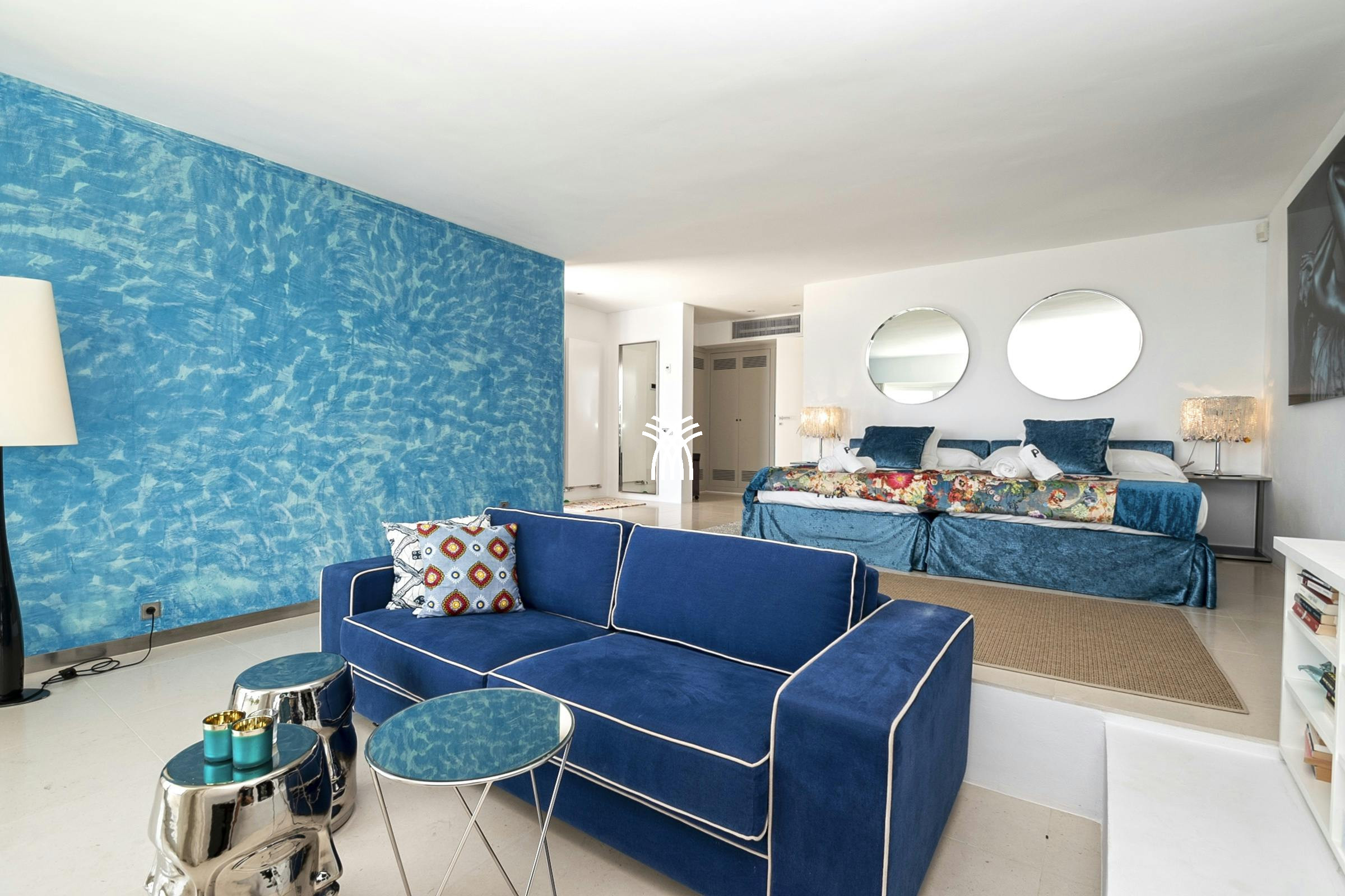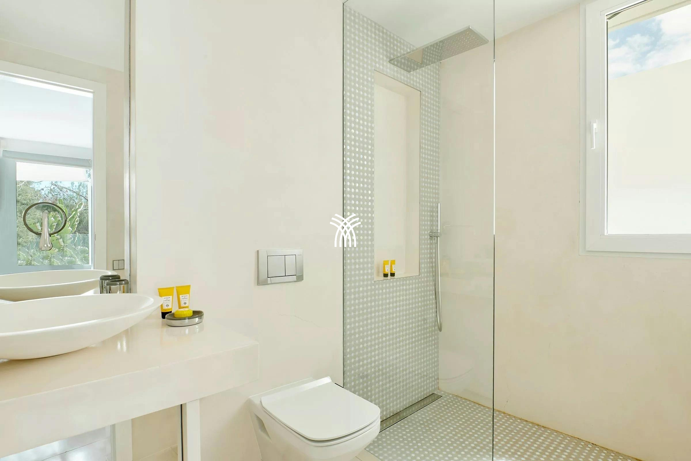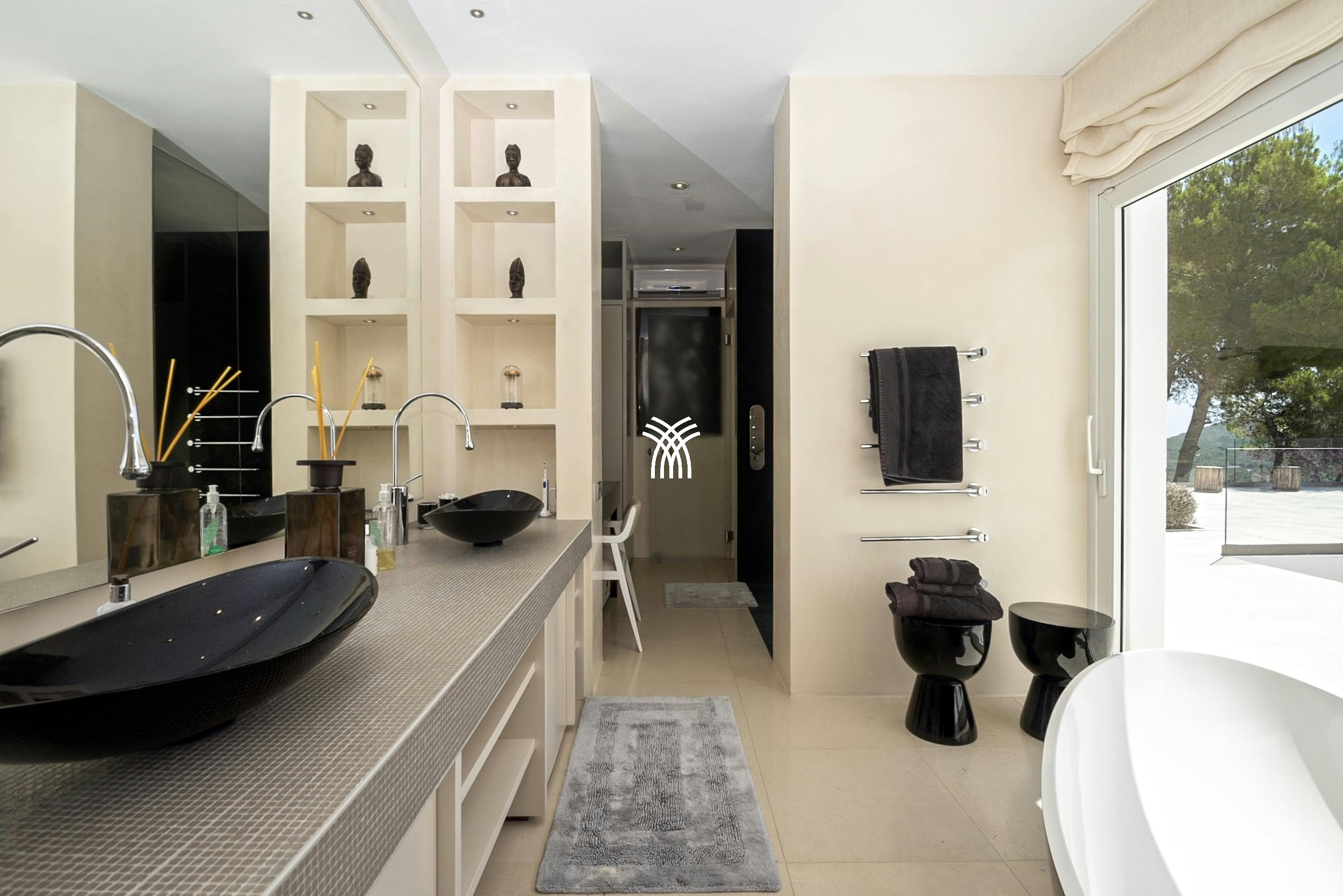 Each space of this Luxury Villa Rental Ibiza is thoughtfully designed for comfort and convenience. All areas are air conditioned and equipped with high-speed fiber optic WiFi. Additional features include a laundry room with dual washing machines and a dryer, plus a discreet kitchenette for added flexibility.