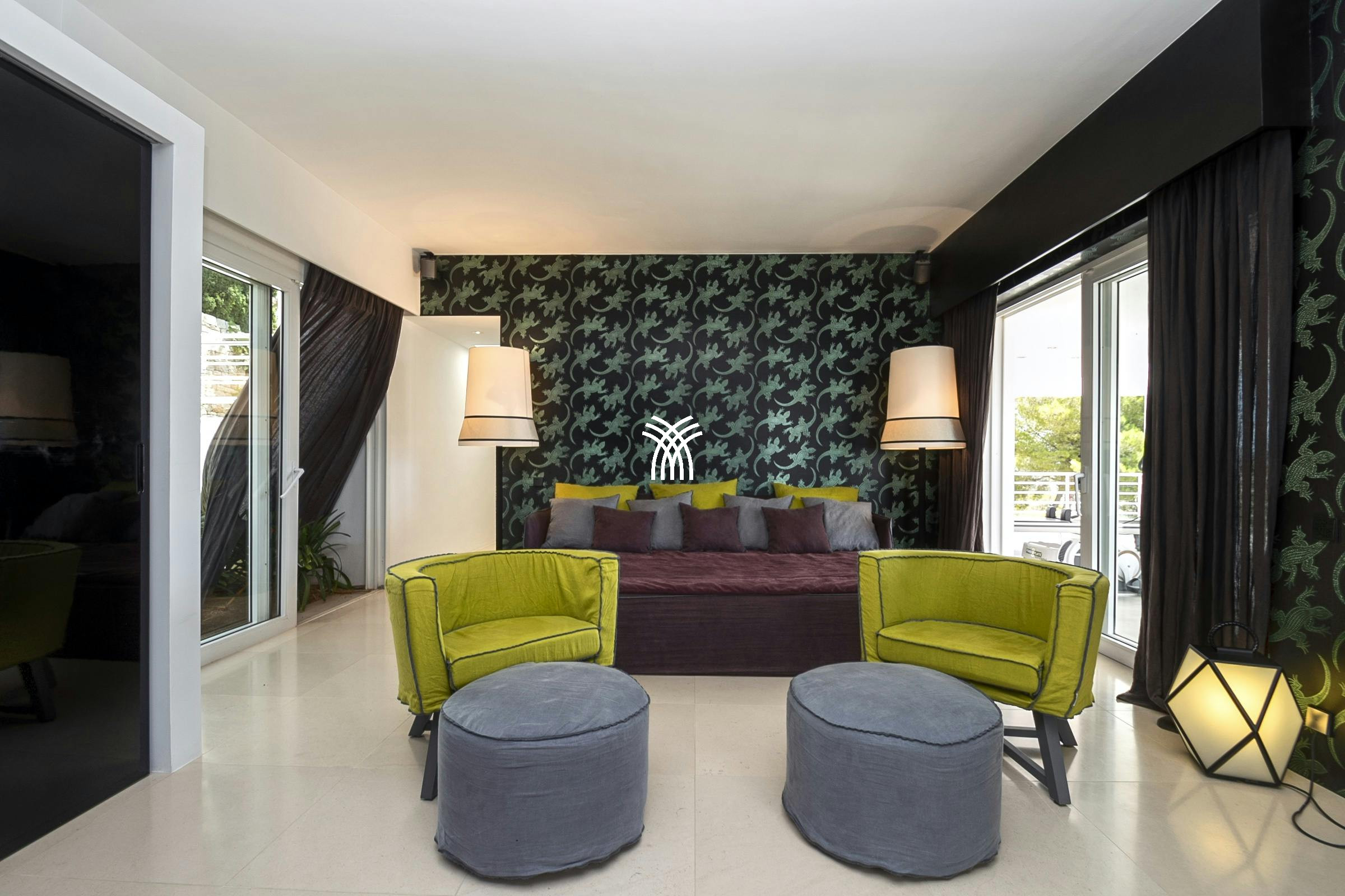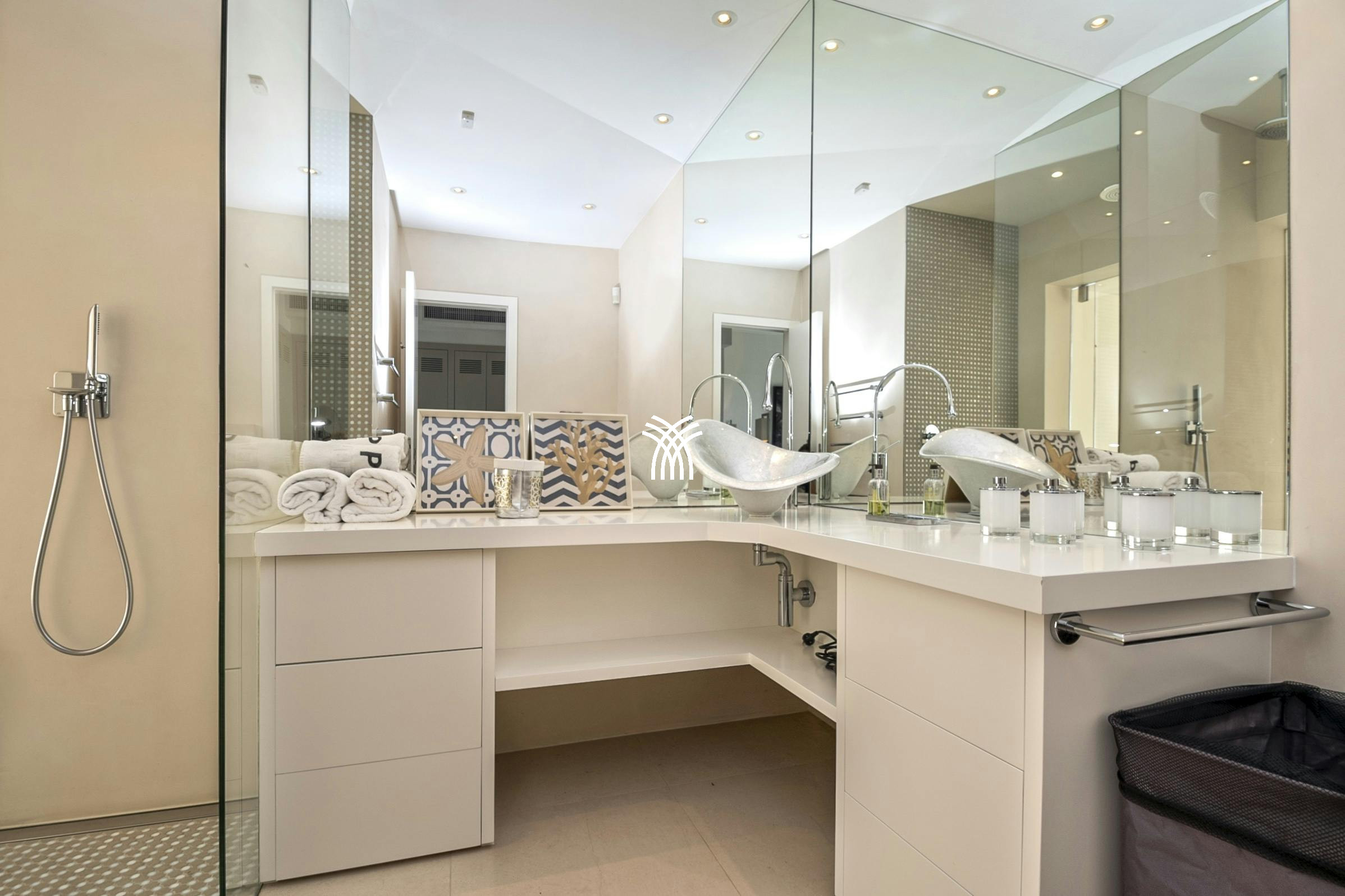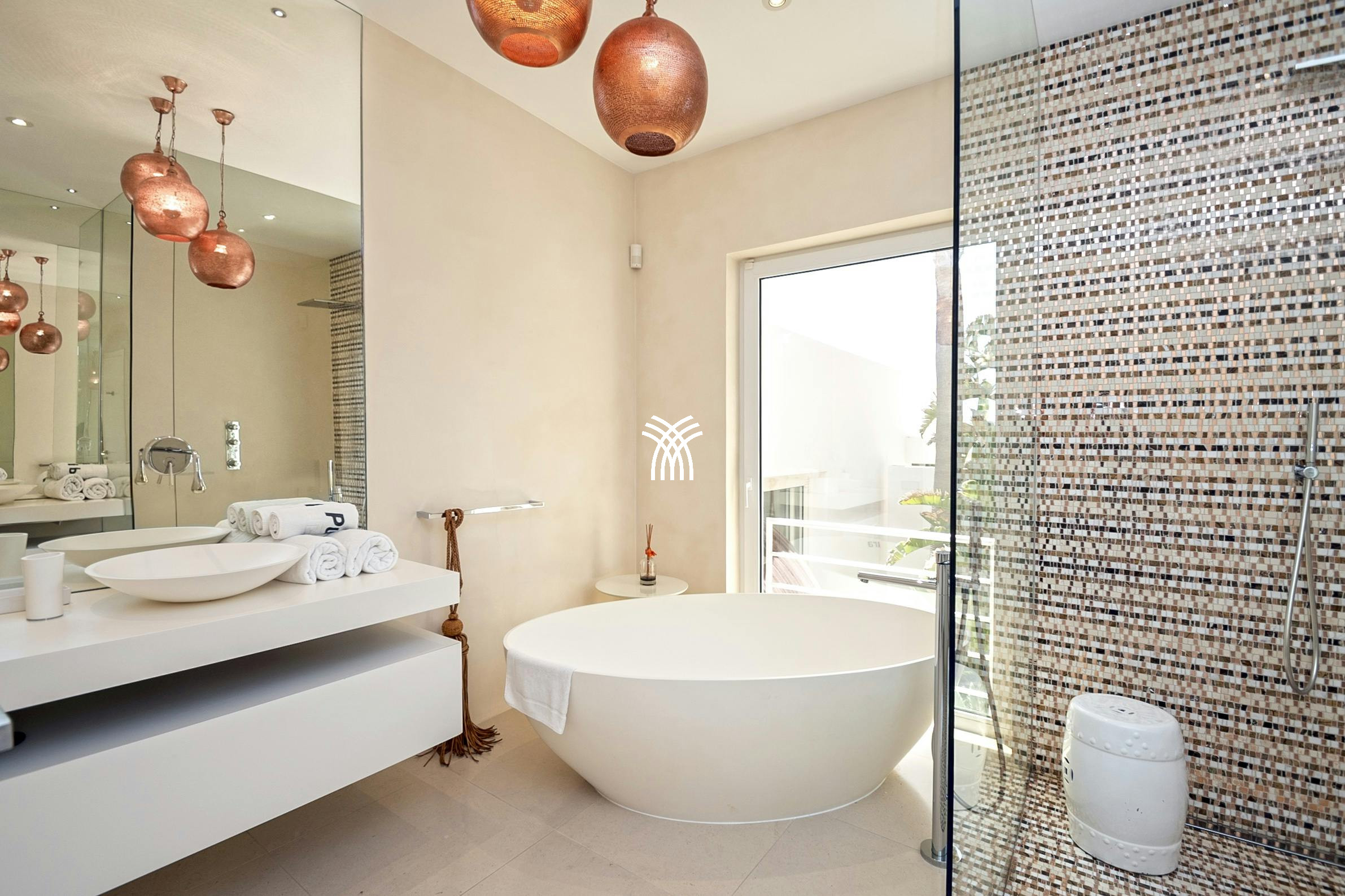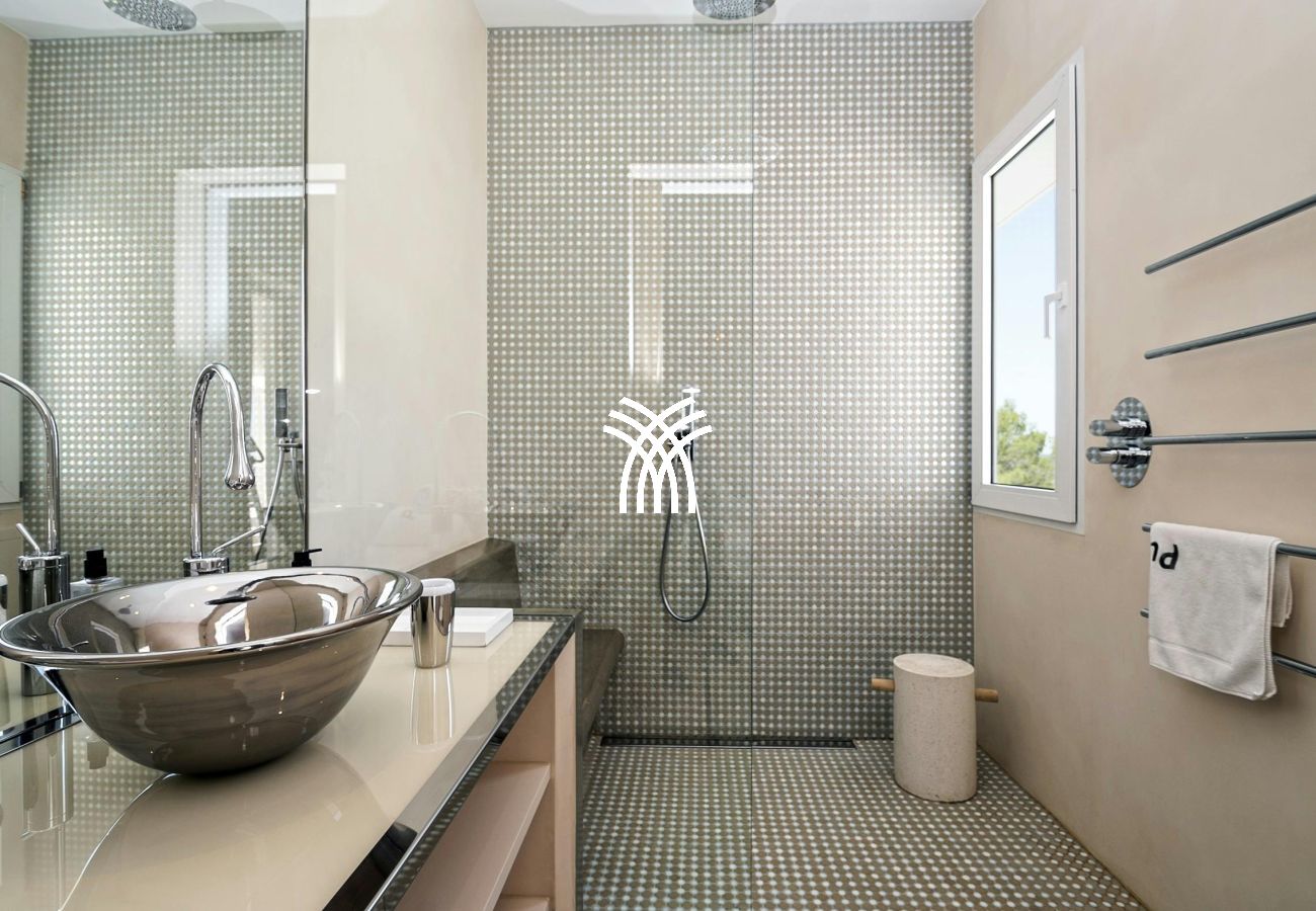 Each space of this Luxury Villa Rental Ibiza is thoughtfully designed for comfort and convenience. All areas are air conditioned and equipped with high-speed fiber optic WiFi. Additional features include a laundry room with dual washing machines and a dryer, plus a discreet kitchenette for added flexibility.
