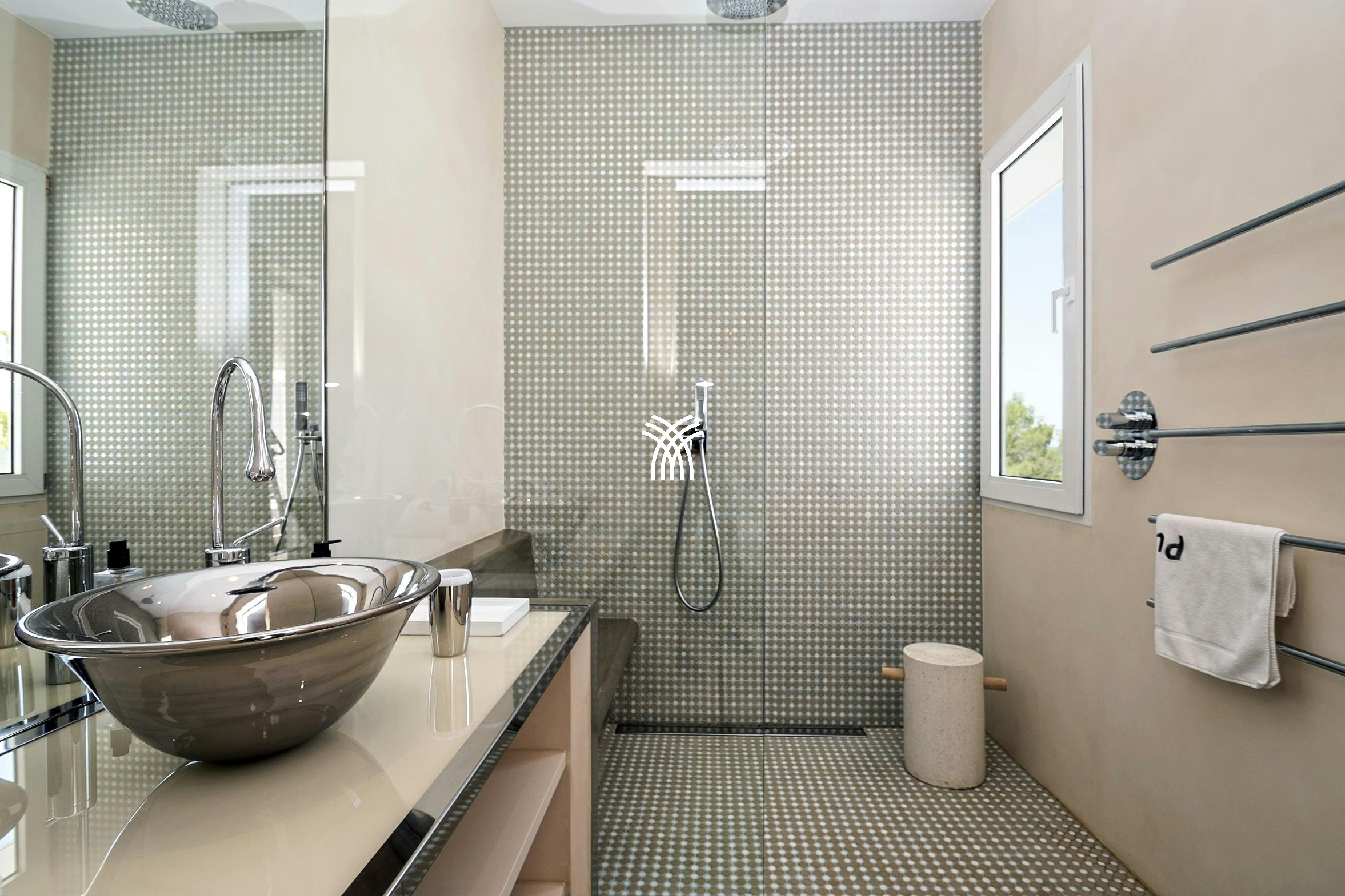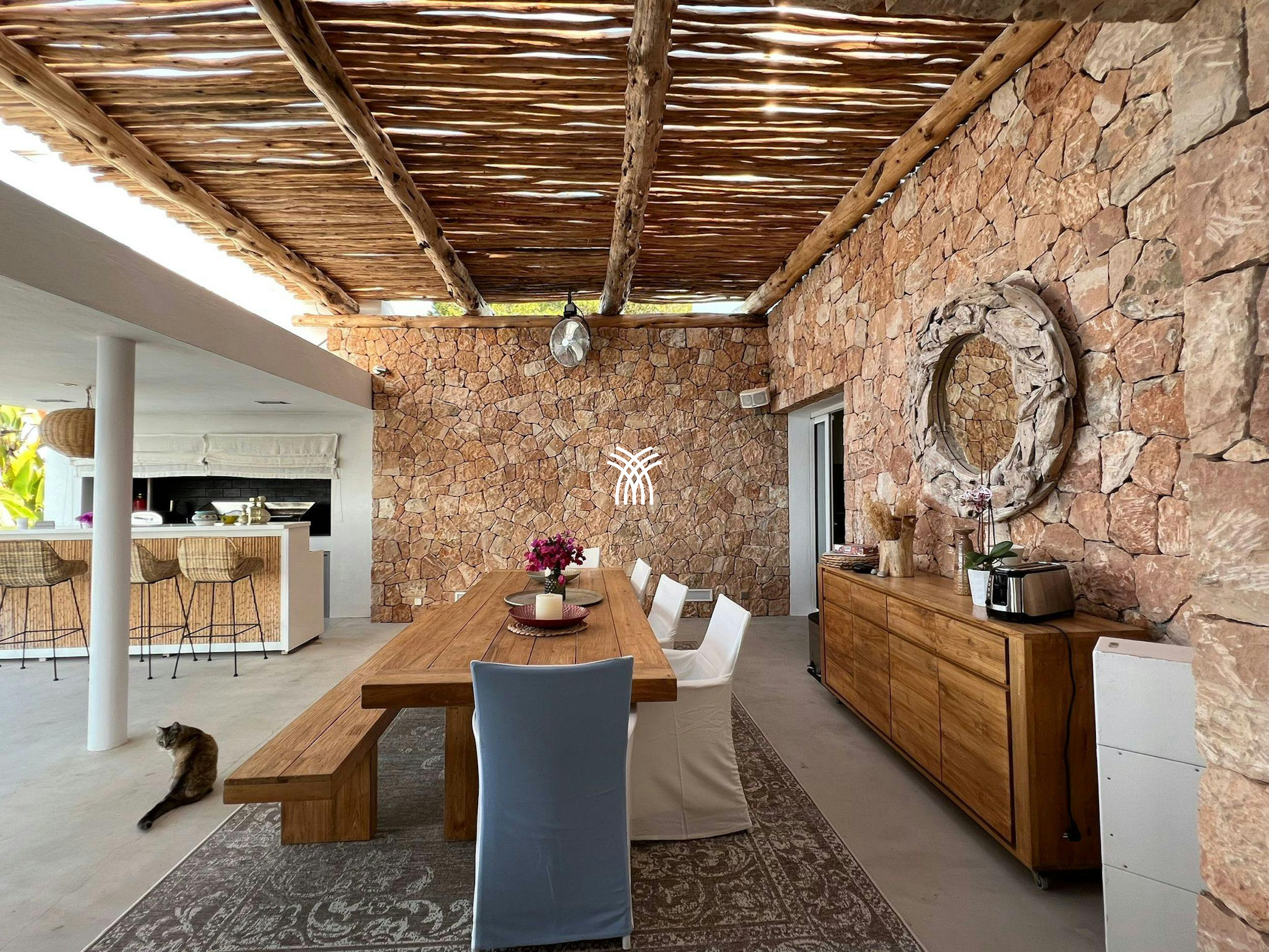 Set on an expansive 8000m² private estate, this stunning Ibiza villa combines sophisticated design with laid-back luxury. The expansive pool terrace, with its freshwater swimming pool, invites guests to bask in the sun on plush daybeds or unwind under shaded parasols while soaking up the stunning sea views. By night, the outdoor space transforms into an atmospheric retreat for starlit gatherings and serene evenings.