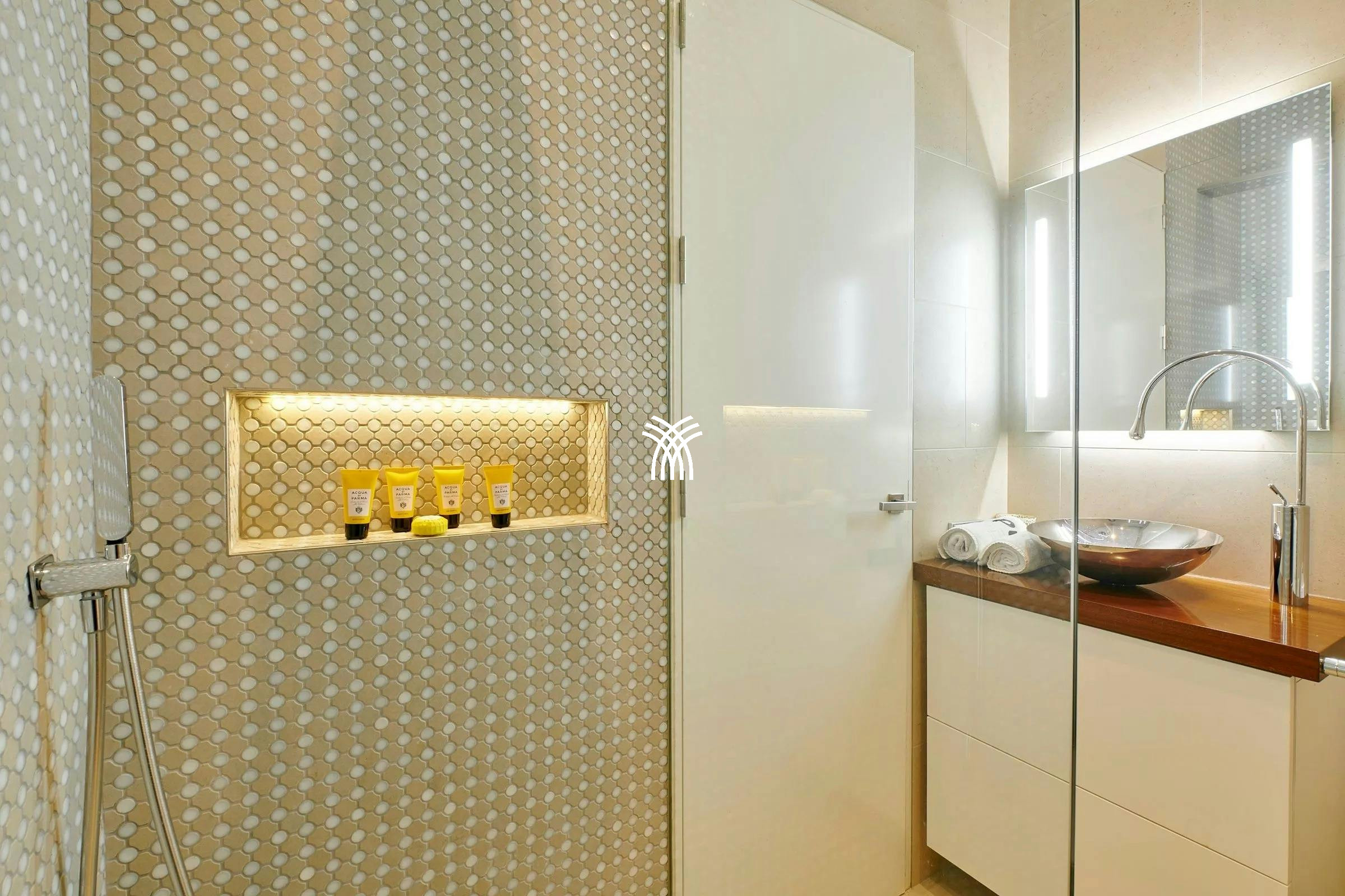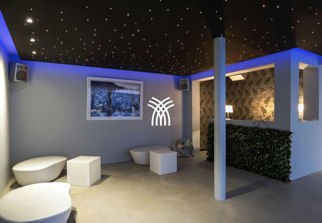 Entertainment is redefined with a private cinema room featuring a home theatre system and oversized daybed. For those seeking nightlife energy without leaving home, the villa includes a dedicated indoor disco space with Funktion-One speakers and professional DJ equipment—also adaptable as a children's playroom thanks to air conditioning and full enclosability.