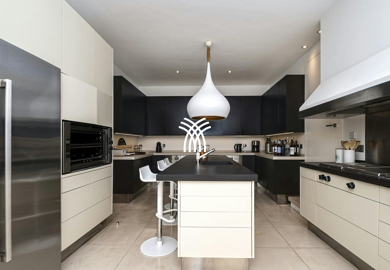 Every detail of Villa Pazu reflects a passion for contemporary art and sophisticated style. Inside, expansive open-plan living spaces showcase plush designer furnishings, modern artworks, and floor-to-ceiling windows that frame the unforgettable sea views. The sleek kitchen features a central island and premium appliances, ideal for hosting lavish dinners or relaxed family meals. The adjoining lounge and dining areas flow seamlessly, offering a luxurious setting for gathering, relaxing, and entertaining.