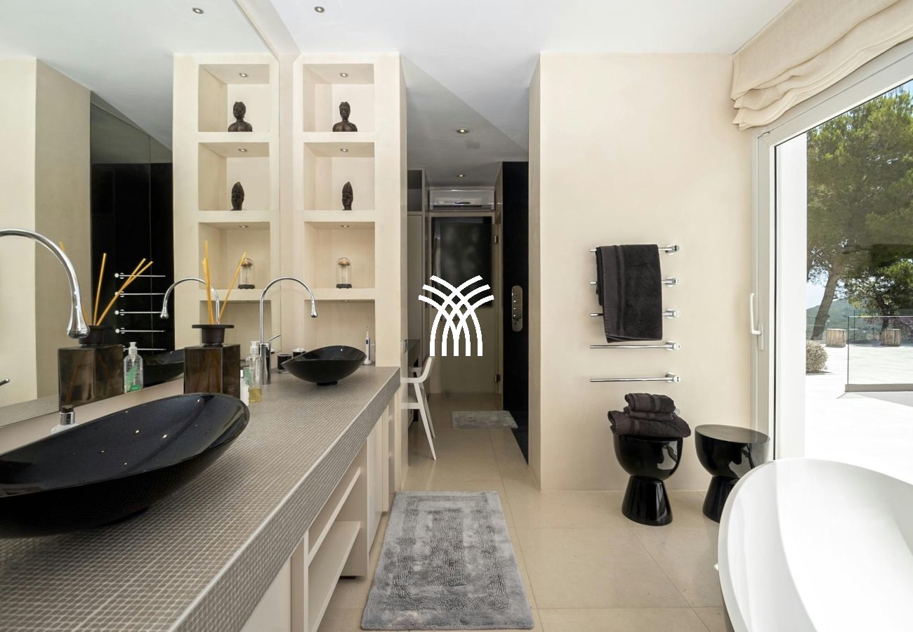 Villa Sabrina is the epitome of refined island living, offering an exclusive Luxury Villa Rental Ibiza experience in one of the most spectacular west coast locations. Nestled on a private 15,000 square meter estate near the iconic sunset beach of Cala Conta, this exquisite villa captures sweeping sea views, golden Mediterranean light, and the serenity of pine-shaded gardens.