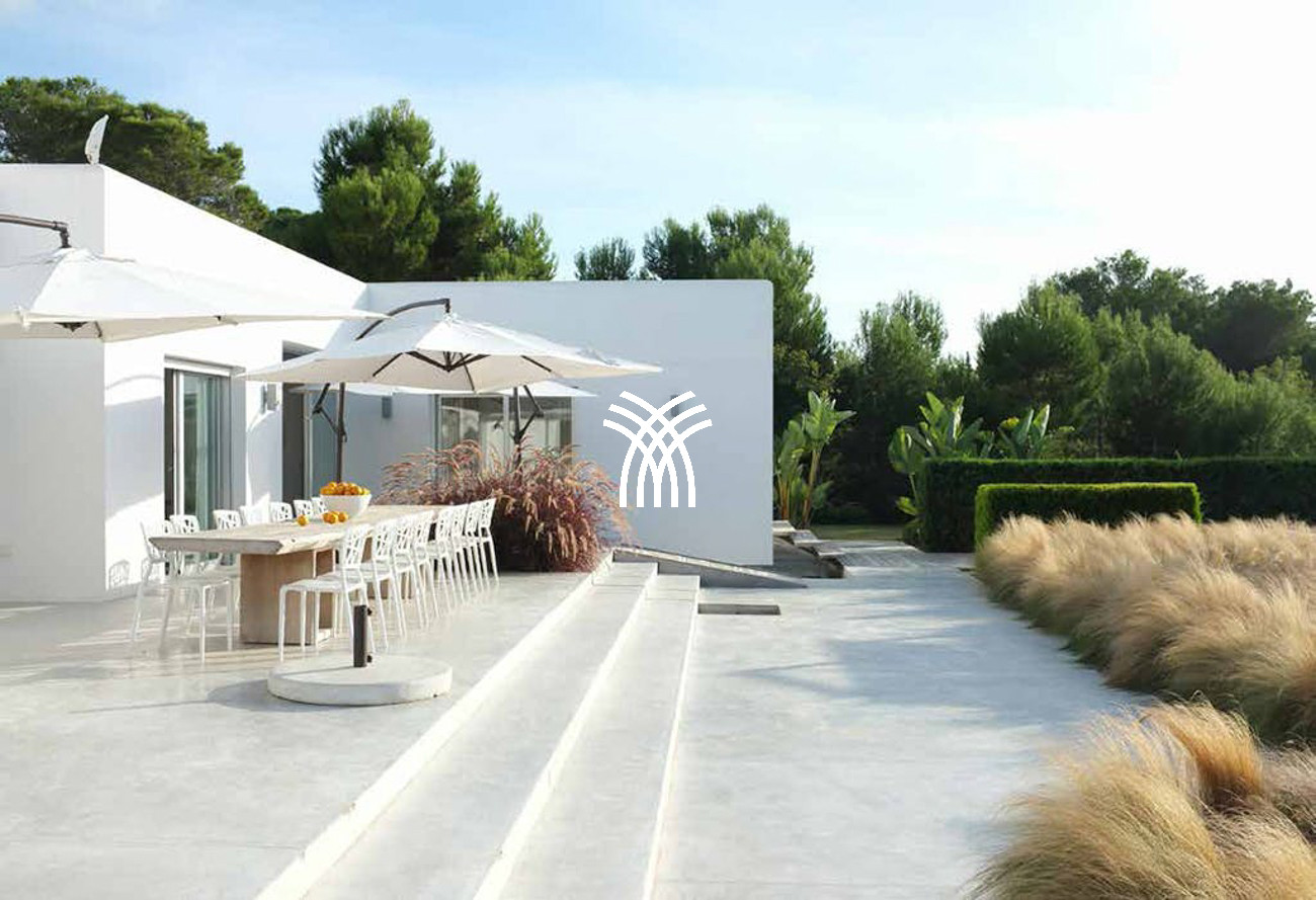 Just minutes from the charming village of Es Cubells and a short drive from San José and Ibiza Town, this luxurious villa places you at the heart of the island’s most stylish beaches and cultural hotspots. Perched above the coastline, the villa’s clean white architecture contrasts beautifully with the rugged hillside and lush Mediterranean greenery, creating a private sanctuary with breathtaking panoramic views.