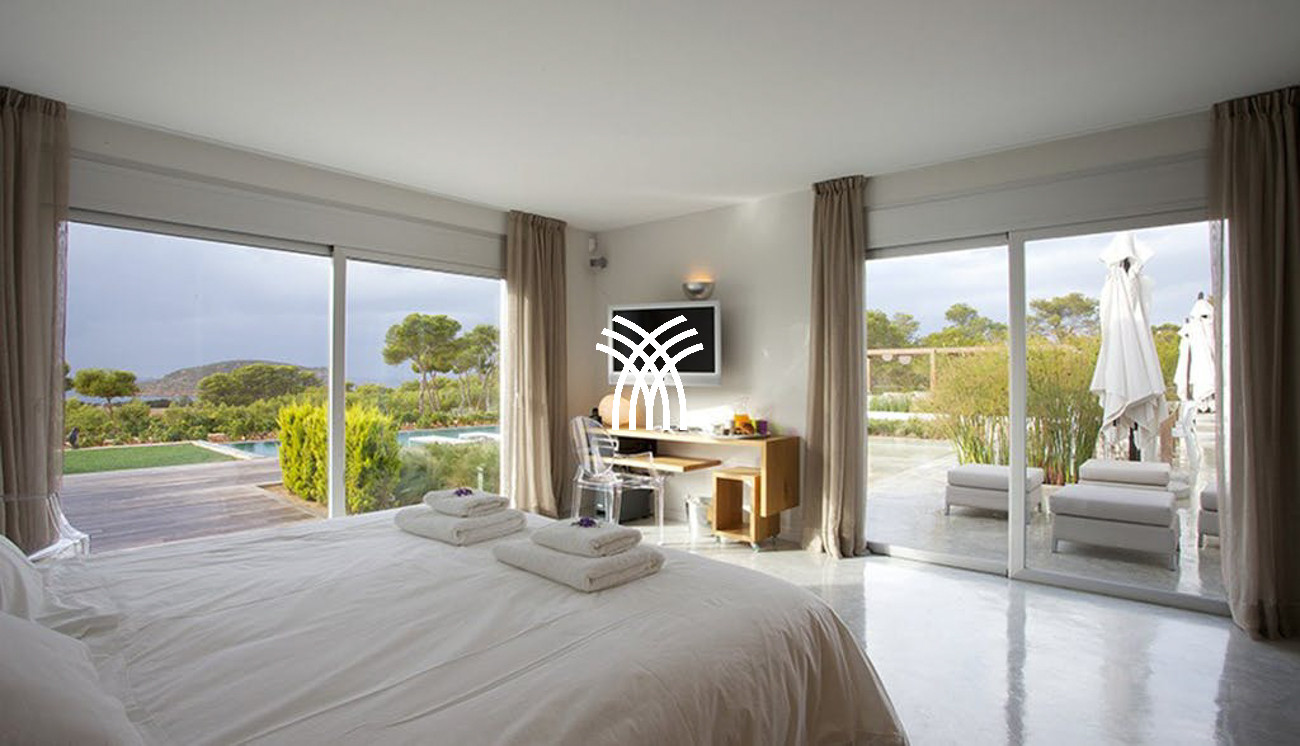 Experience elevated island living with this Luxury Villa Rental Ibiza, an impressive hillside retreat offering breathtaking panoramic views over the Balearic Sea. Just 4km from Ibiza Town, this exclusive property is perfectly positioned to overlook Playa d’en Bossa, Cap des Falco, and the shimmering Las Salinas salt flats, all the way to the island of Formentera.