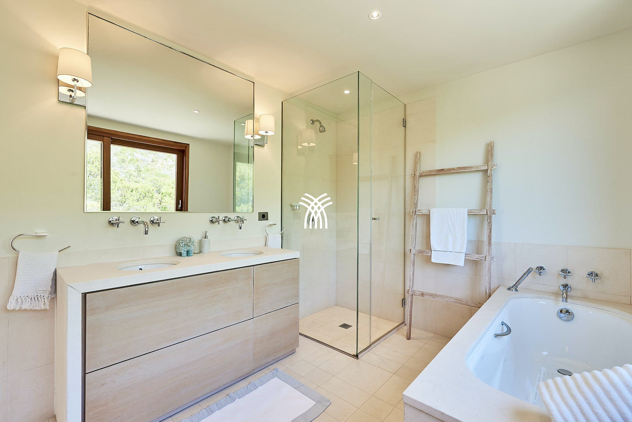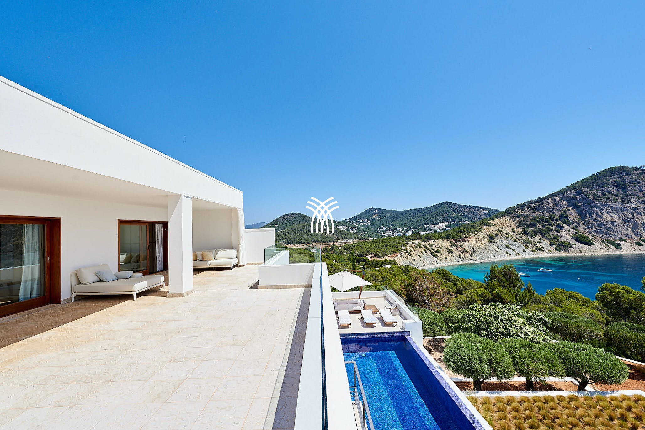 This extraordinary beachfront villa boasts panoramic sea views that stretch across the bay, delivering one of the most spectacular settings on the island. Though tranquil and secluded, the villa is conveniently located less than a kilometer from the golden sands of Cala Llonga and ideally situated between the vibrant energy of Ibiza Town and the charming coastal appeal of Santa Eulàlia.