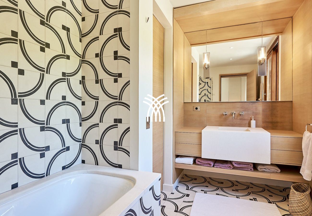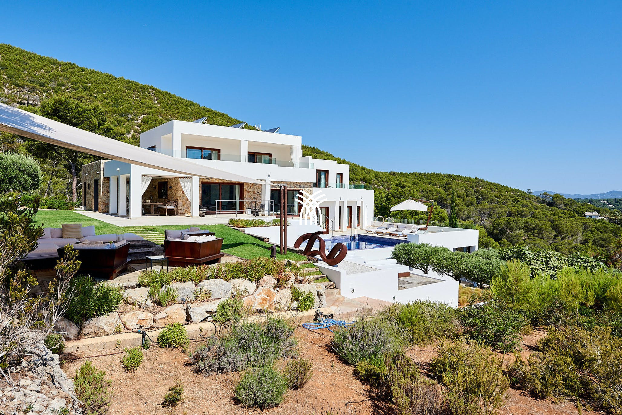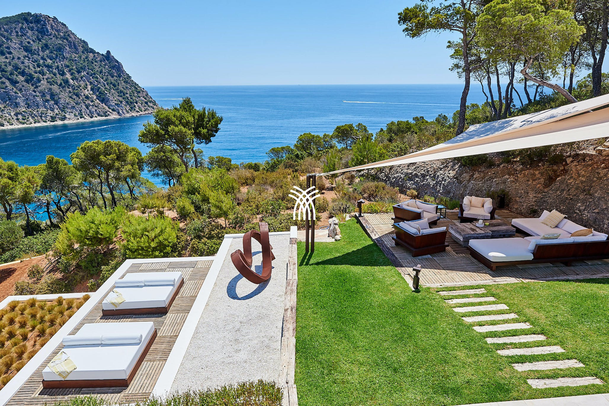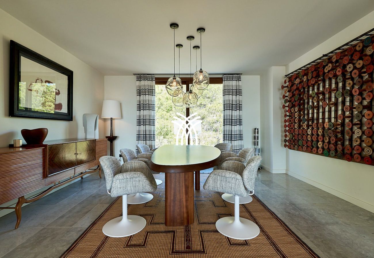 Surrounded by fragrant pine-covered hills, the expansive gardens provide a peaceful haven with multiple outdoor lounges and social areas. Whether you're relaxing on the daybeds that overlook Sol den Serra or unwinding by the infinity pool that seems to melt into the Mediterranean Sea, every corner of this property offers a chance to soak up the island’s natural beauty.