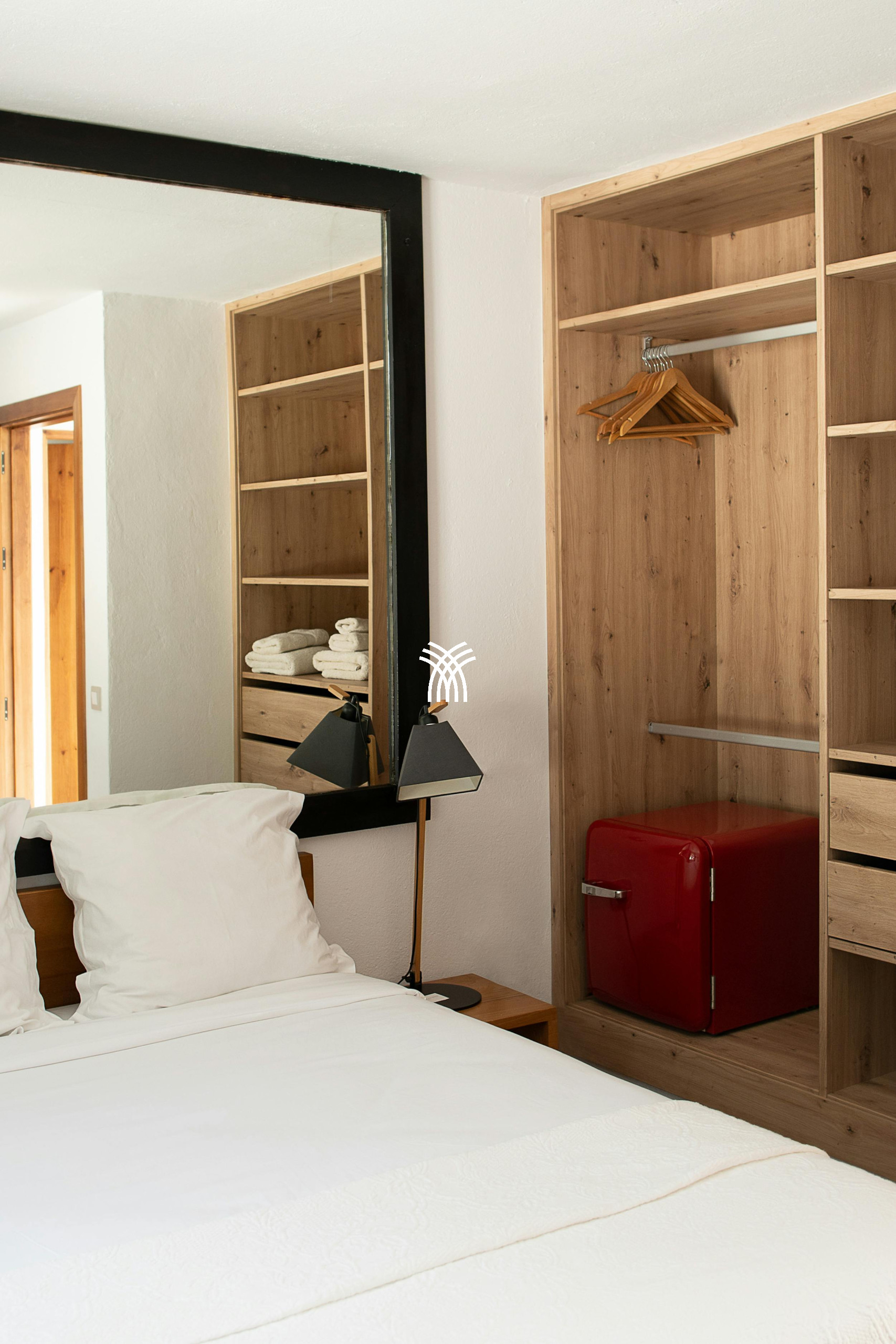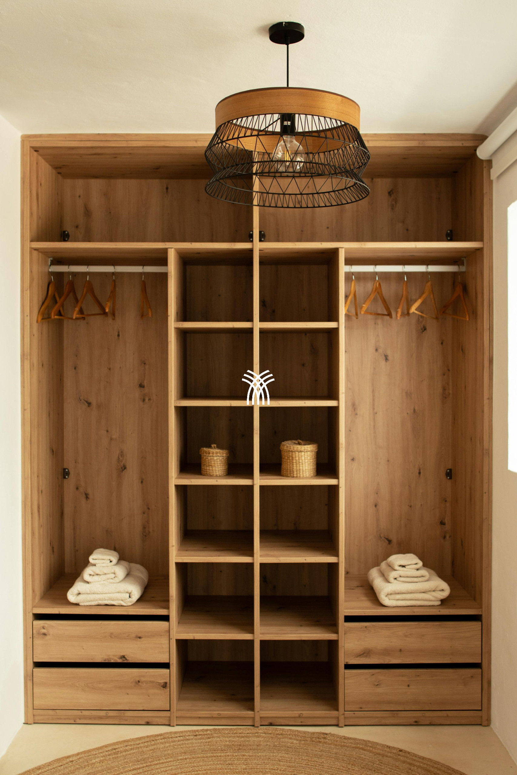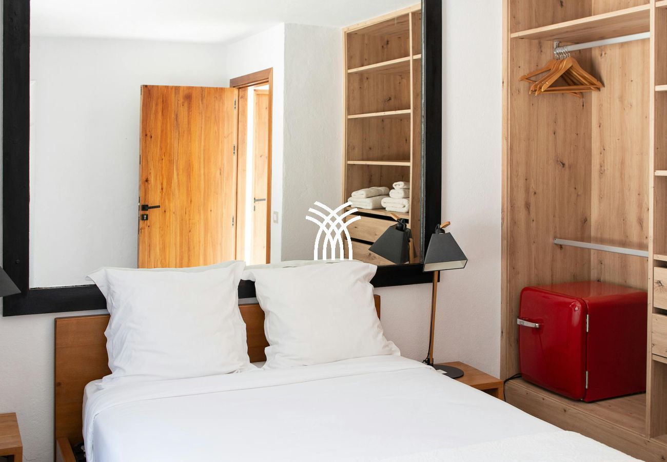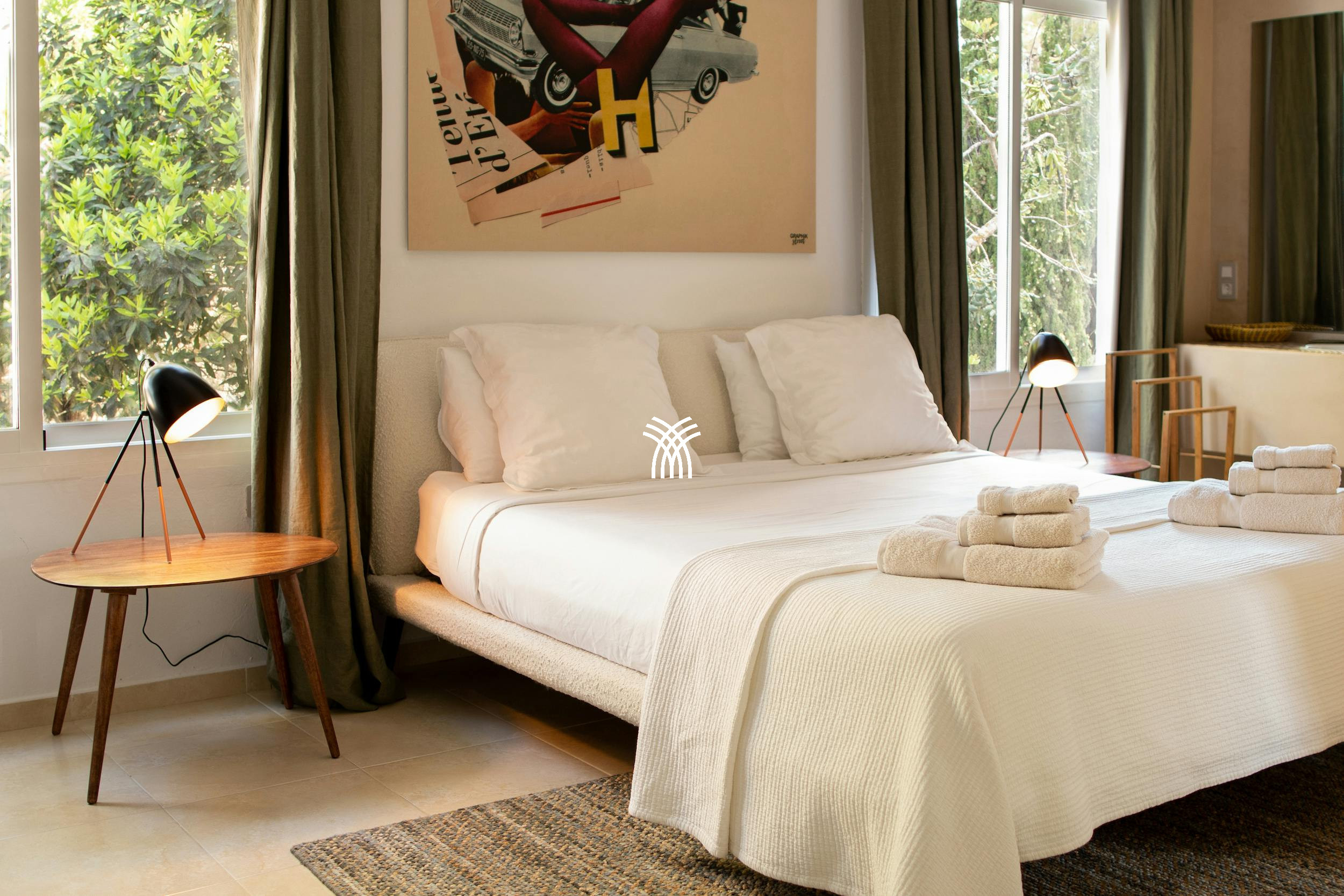Villa Viviana hosts three stunning double bedrooms with en-suite bathrooms. Two are located in the main house, each with panoramic sea views, air conditioning, and underfloor heating. The top floor suite offers added privacy, a large terrace, and commanding views of Es Vedra and the surrounding coastline.