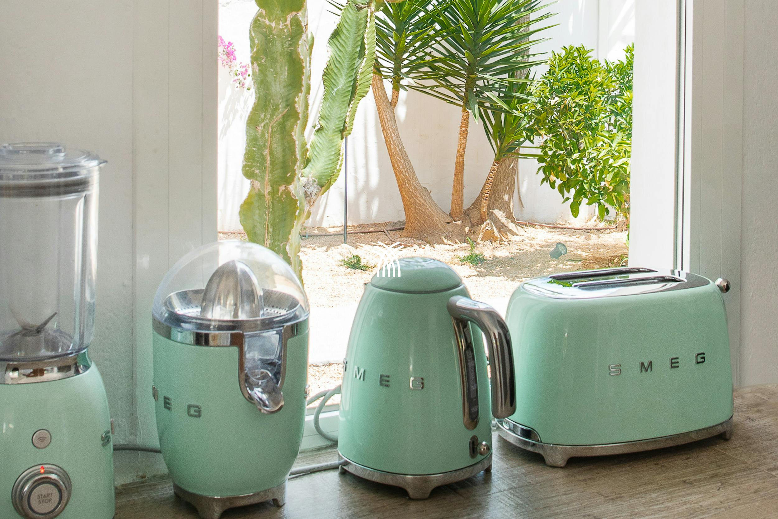 Inside, the villa’s bright and airy interiors are thoughtfully styled with soft sea-green tones and a refined modern aesthetic. The spacious living area features plush lounge seating under a double-height ceiling, and the elegant dining space for ten opens to views of the pool and sea. The fully equipped kitchen ensures everything you need for a seamless and comfortable stay.
