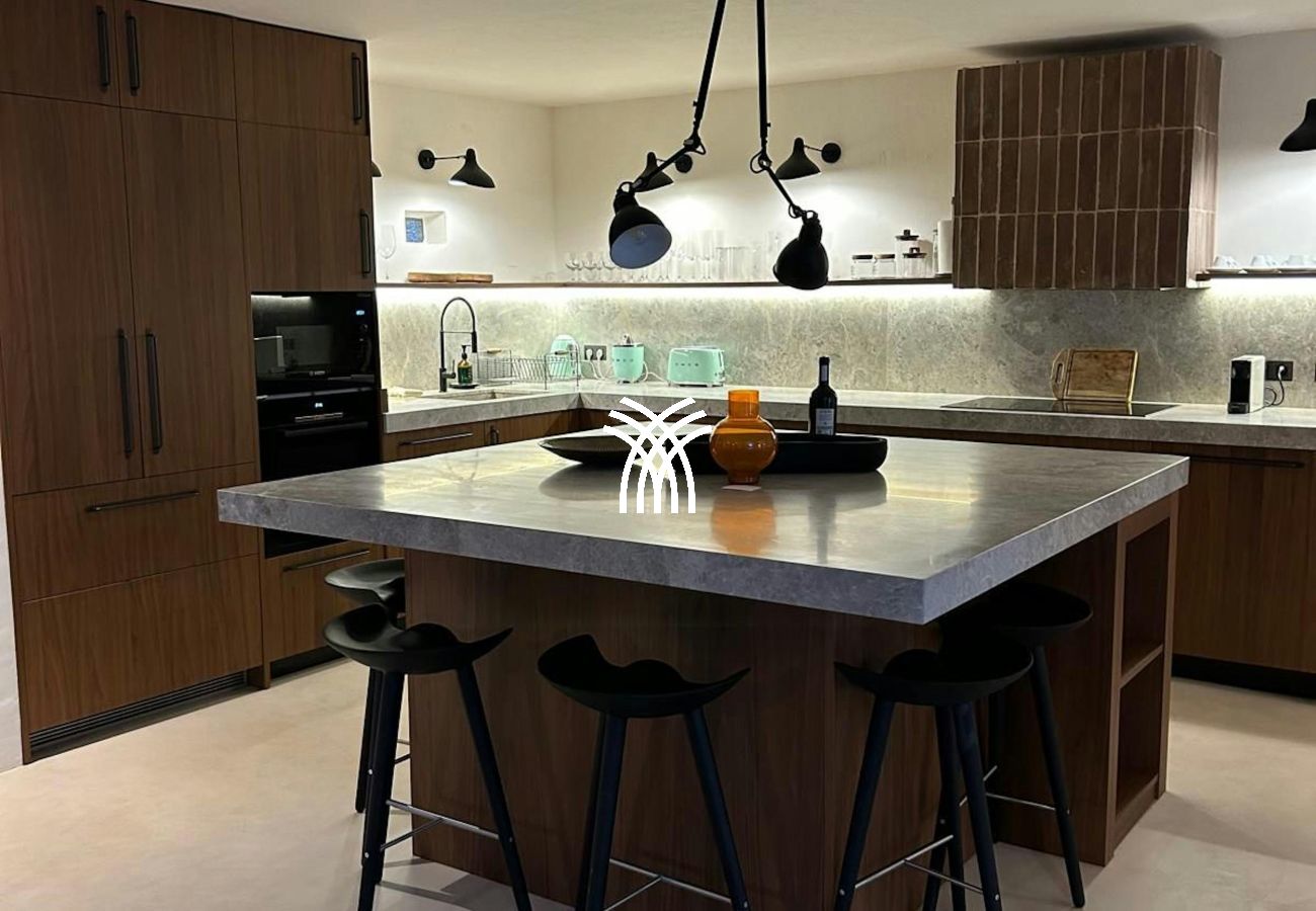 Designed for those who value beauty, comfort, and peace, this elegant villa boasts a spacious open-plan layout with a fully equipped modern kitchen featuring a sleek 4-meter island and dining for ten. The expansive living area flows seamlessly through sliding glass doors onto the sun-drenched terraces and pool deck, all framing uninterrupted views of the Mediterranean Sea.