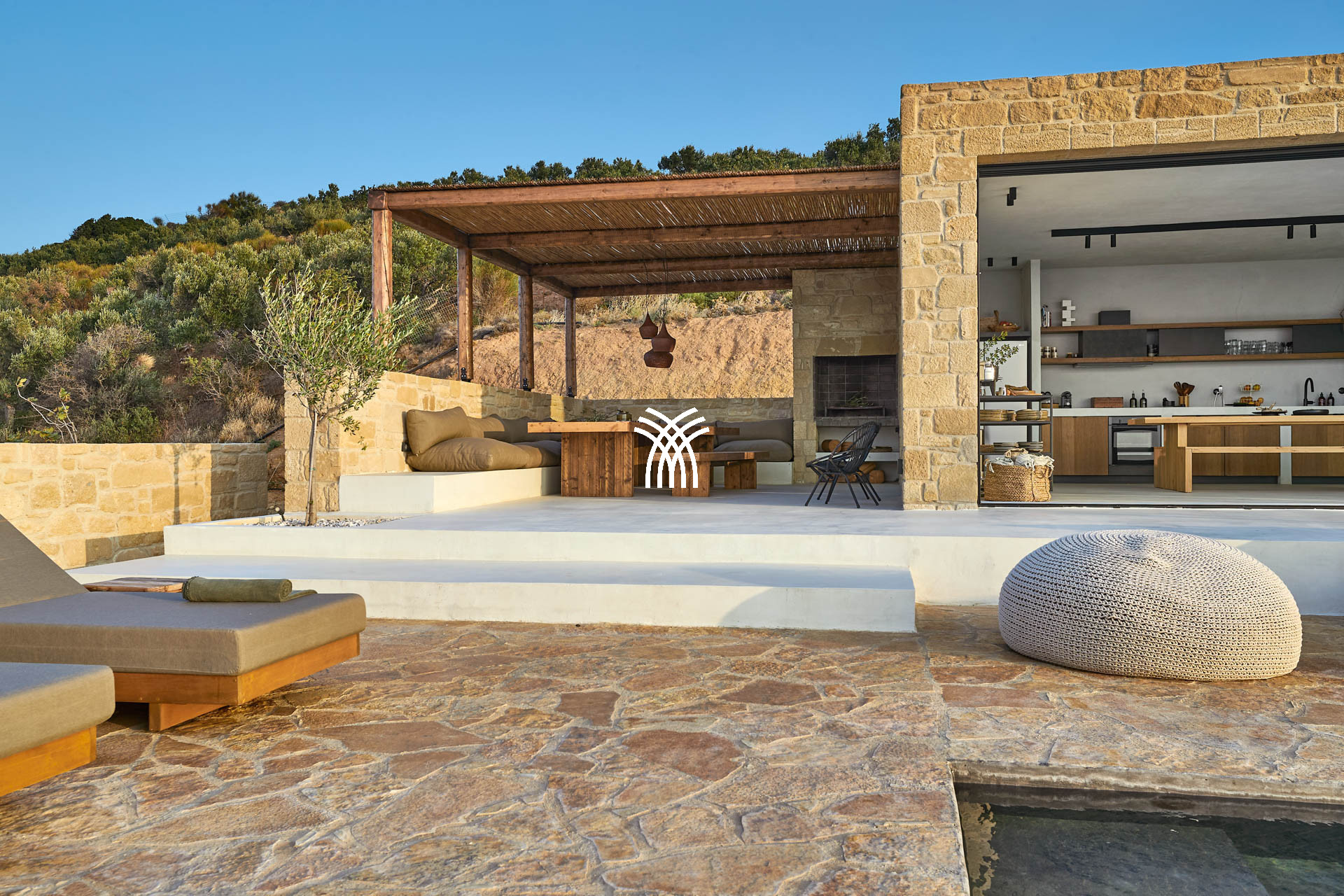 Nestled on the heights of the western Cretan coast, the Metochi Lodge is a contemporary villa with a bohemian spirit, surrounded by ancient olive trees and breathtaking wild landscapes. Designed to accommodate up to 10 people, this 4-bedroom architect-designed house integrates gently and genuinely into nature through the use of local natural stones and raw materials.