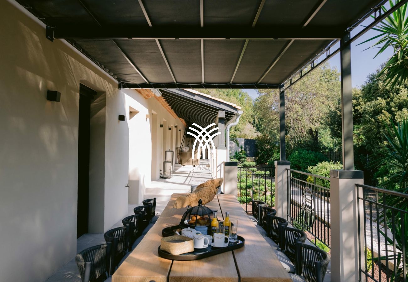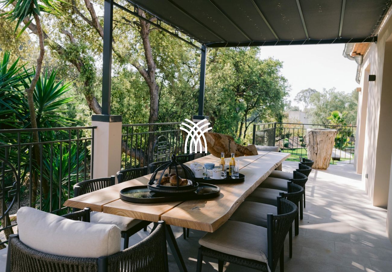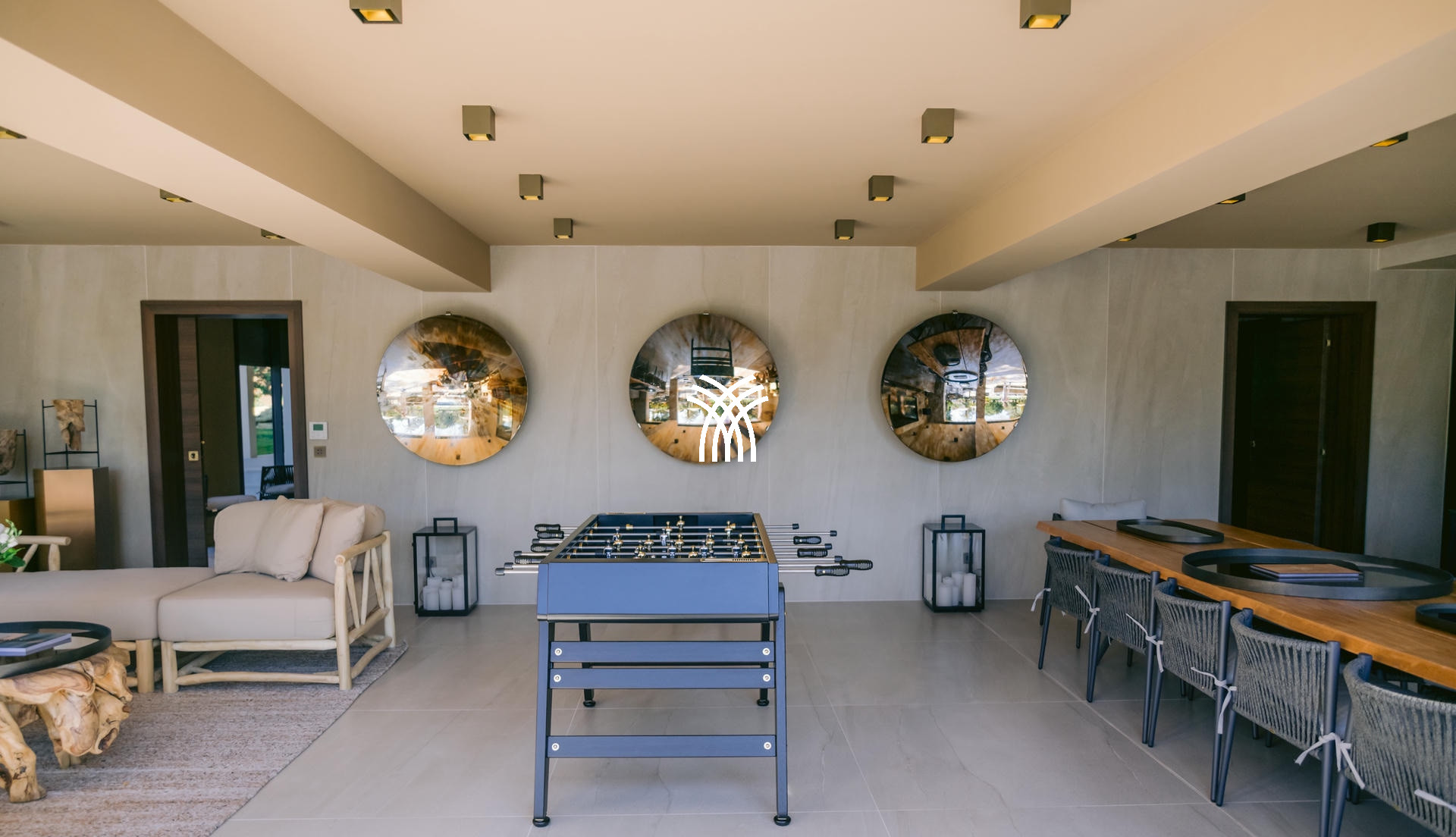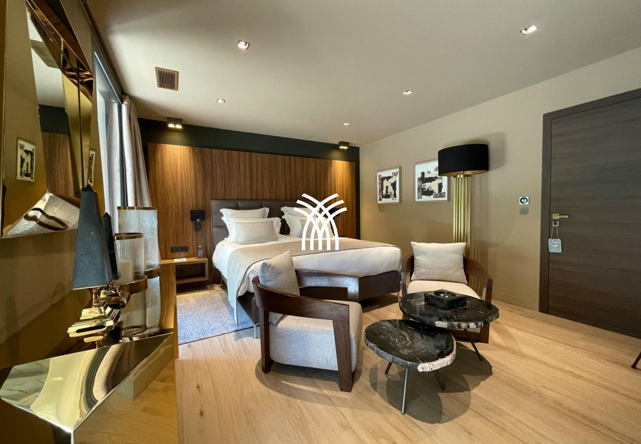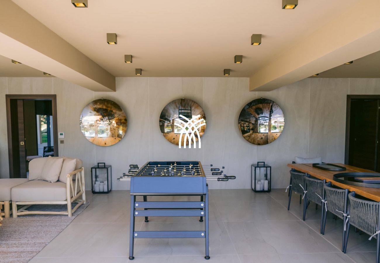 Inside, the villa boasts seven elegant suites, including two with independent access, ensuring absolute comfort and privacy. The spacious living room and sunlit dining area invite relaxation, while a gym and a massage room enhance the well-being experience in this exceptional residence.