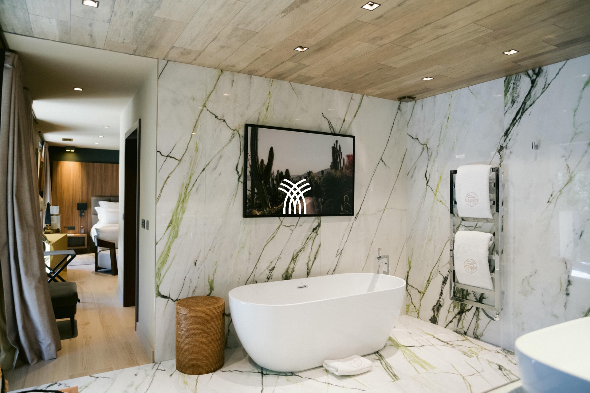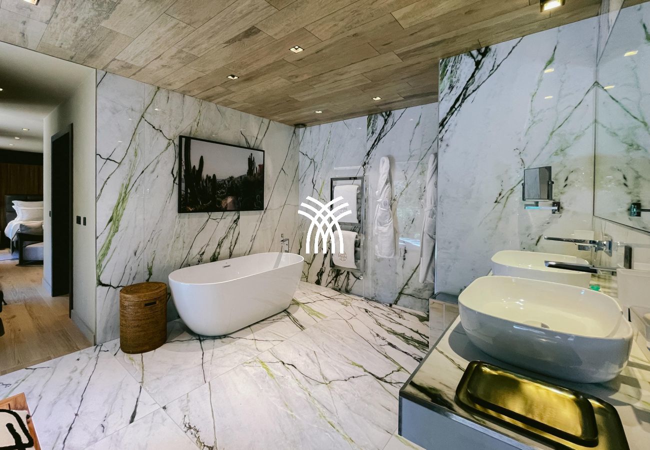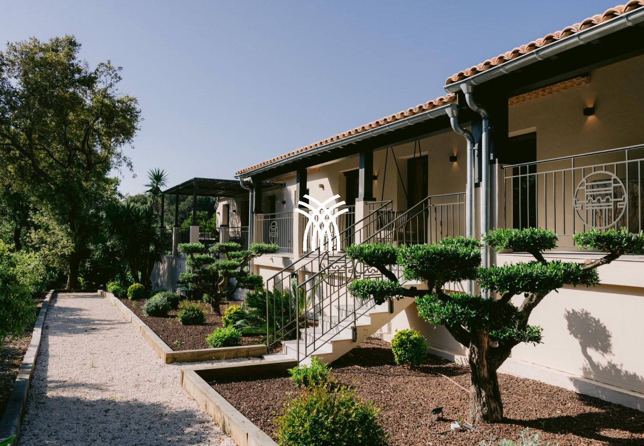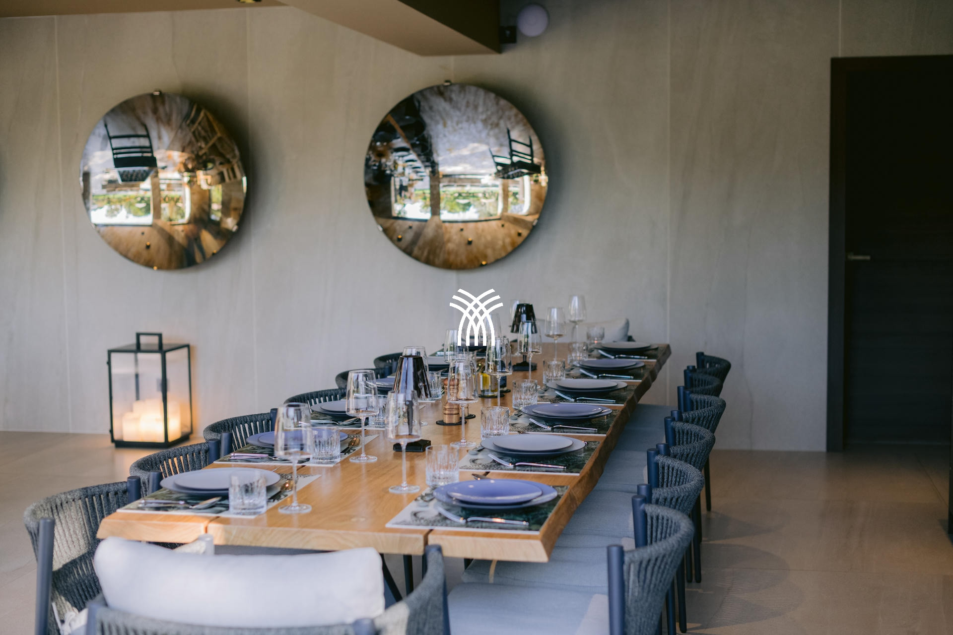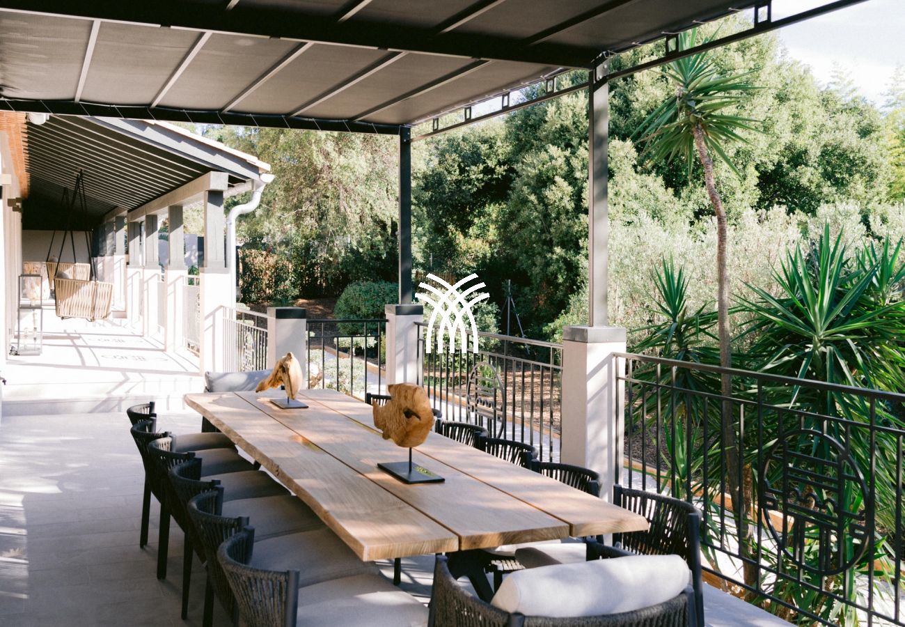 Inside, the villa boasts seven elegant suites, including two with independent access, ensuring absolute comfort and privacy. The spacious living room and sunlit dining area invite relaxation, while a gym and a massage room enhance the well-being experience in this exceptional residence.
