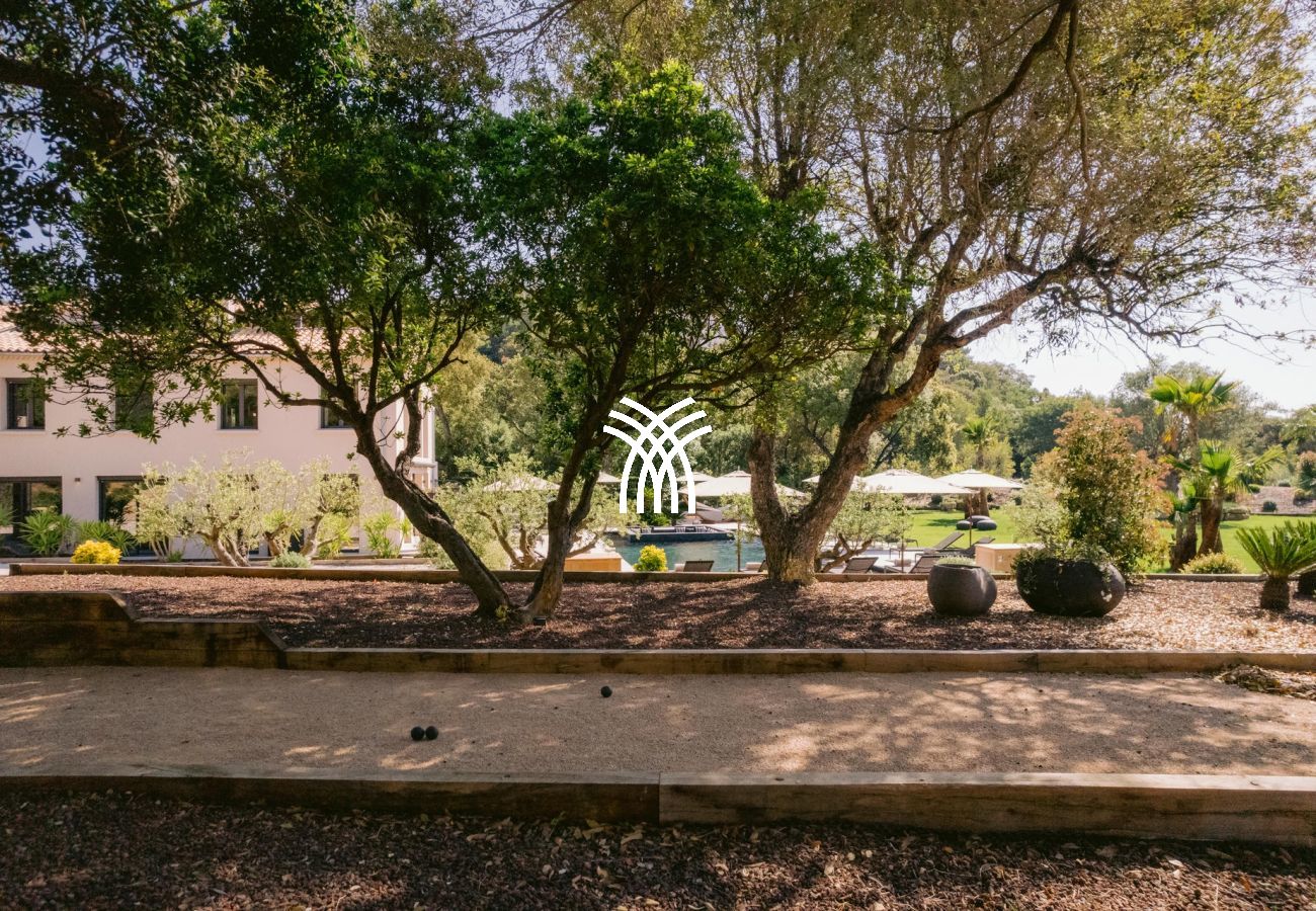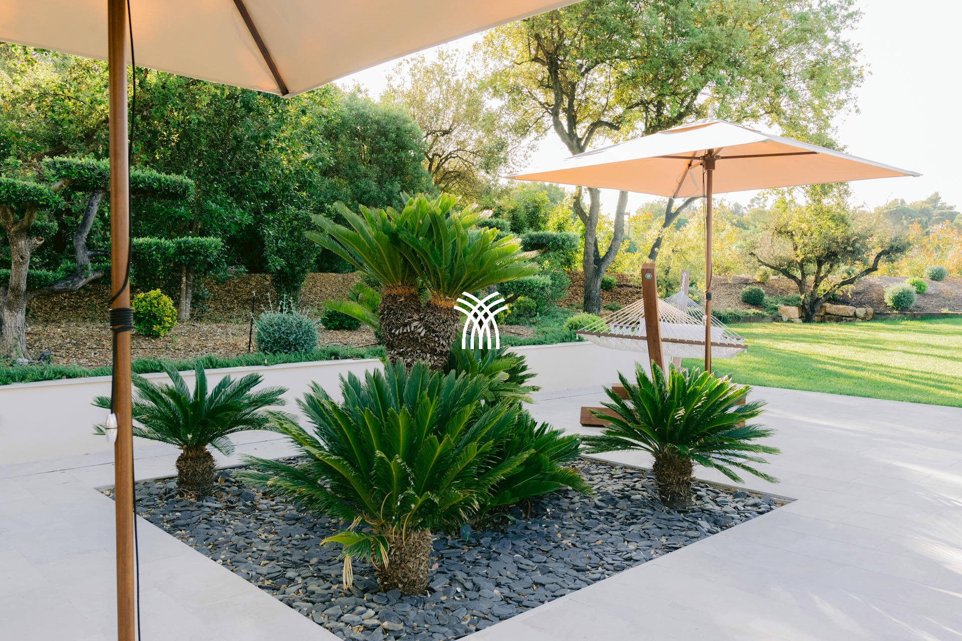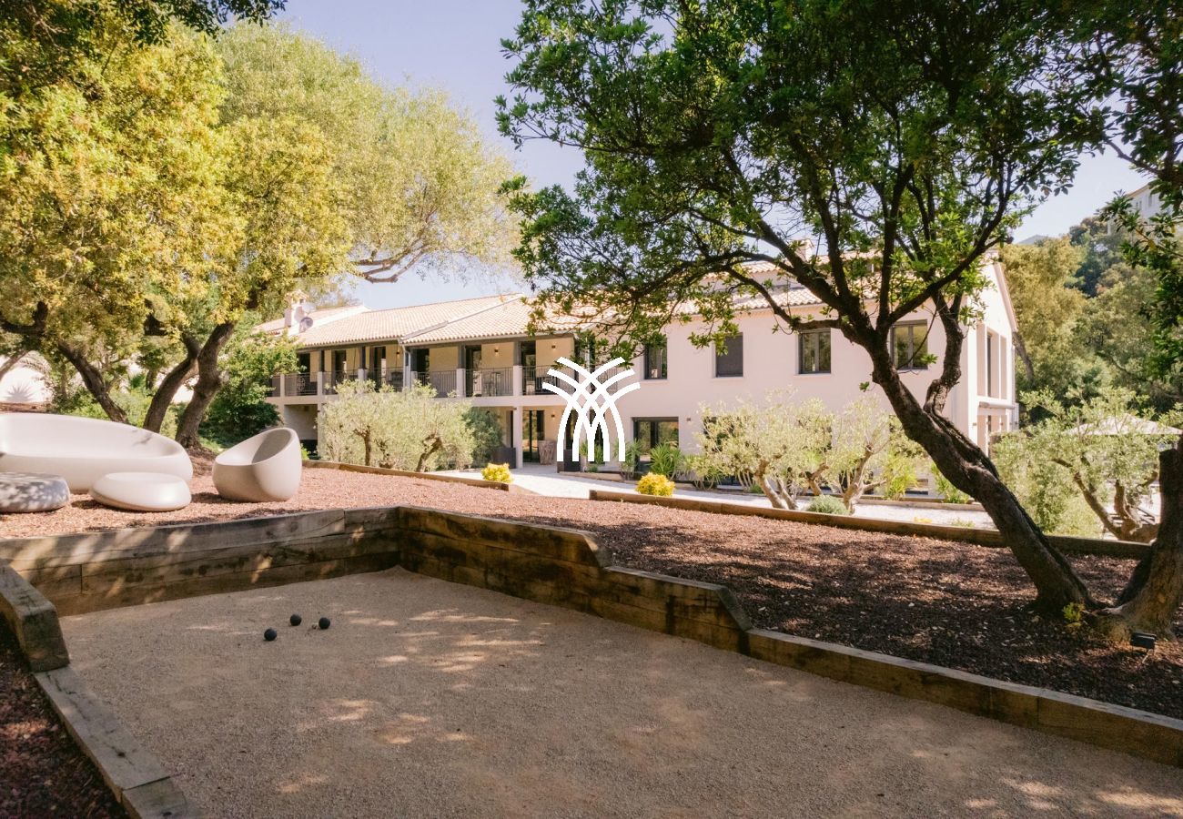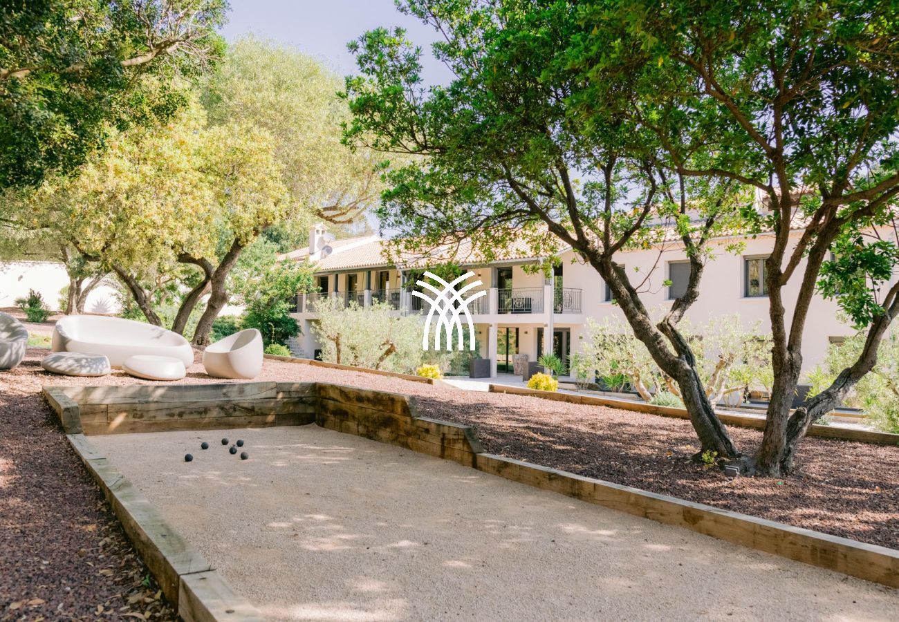 Its lush garden, adorned with majestic palm trees, features a heated 16x6m swimming pool with an integrated fire pit, creating a warm and inviting ambiance for summer evenings. A spacious pool house with a professional kitchen and barbecue completes this outdoor space, designed for unforgettable moments of conviviality.