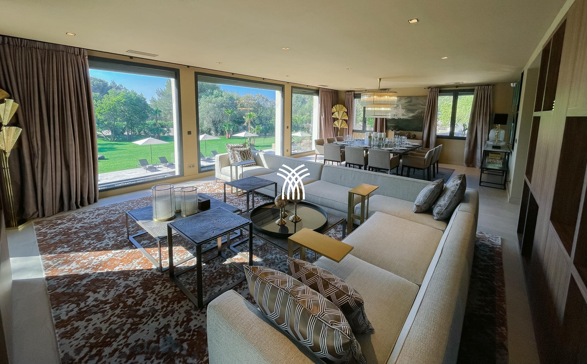 Located in a secure private estate, Villa Reine is a sumptuous 640 m² residence set on a beautifully landscaped 3,000 m² plot. Blending modernity with refinement, it offers a luxurious experience in a privileged setting in the Gulf of Saint-Tropez, just 5 minutes from Sylvabelle Beach and 15 minutes from Pampelonne and the village of Saint-Tropez.