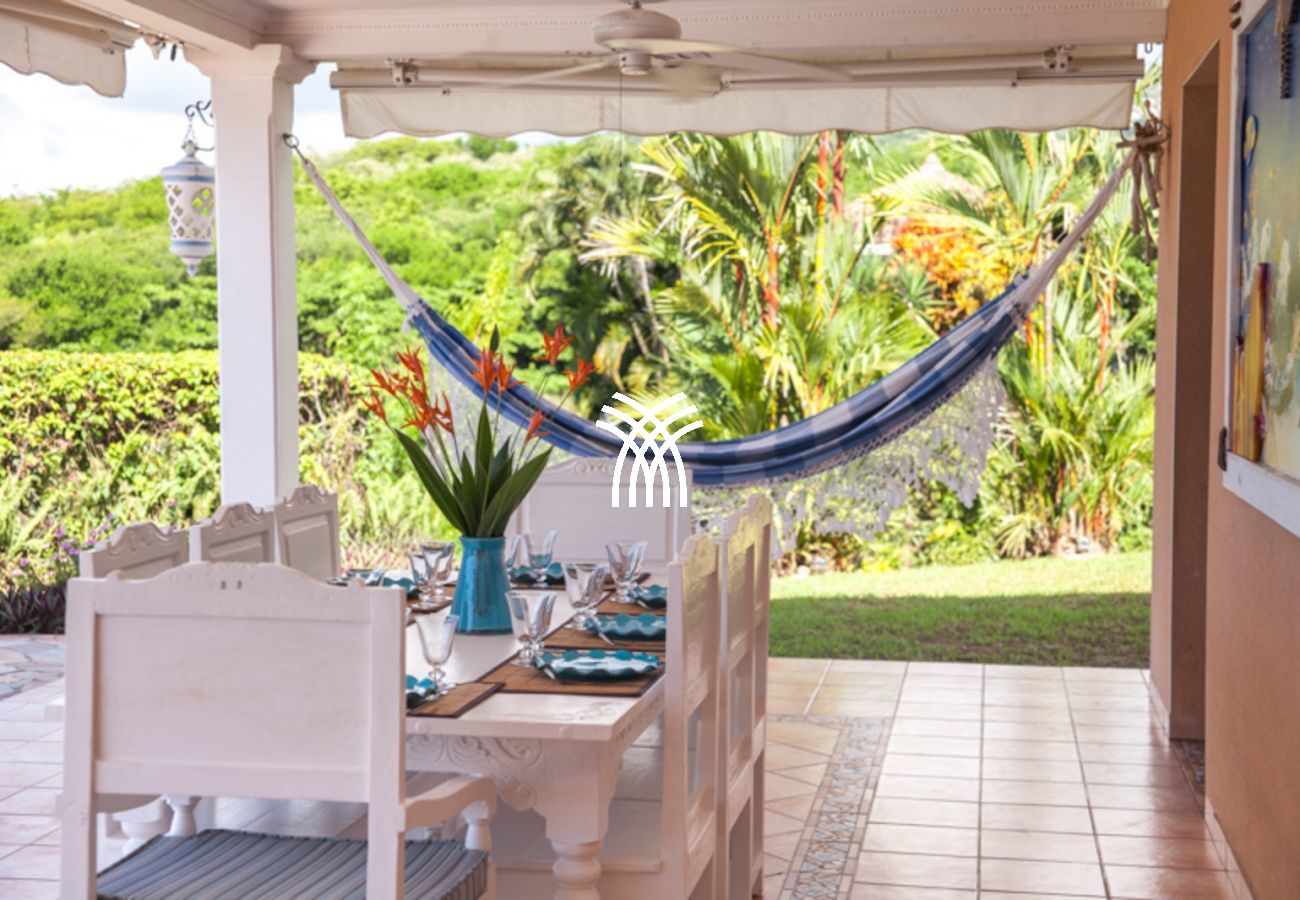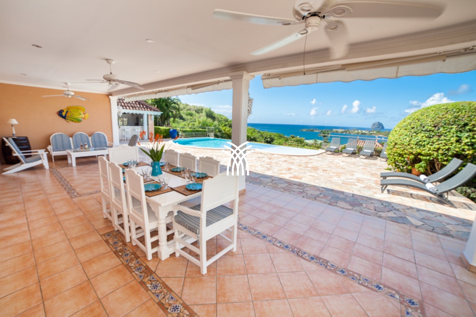 Villa Beach House Martinique has a very nice view on Le Rocher du Diamant and the sea. You will enjoy to relax and dine on the terrace with its gazebo.