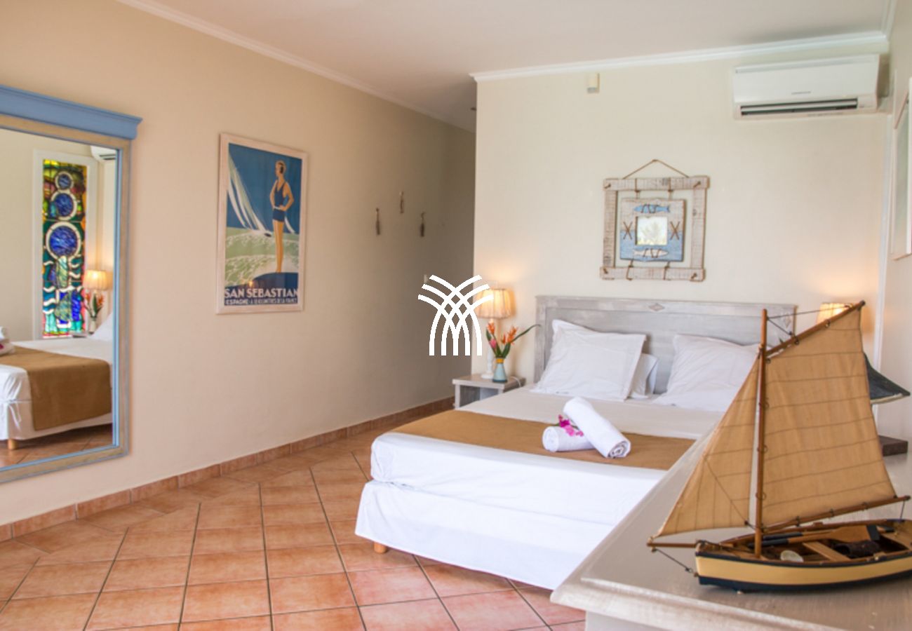 Queen size bed, air-conditioning, mosquito net, bath with shower and toilet, closet, terrace access