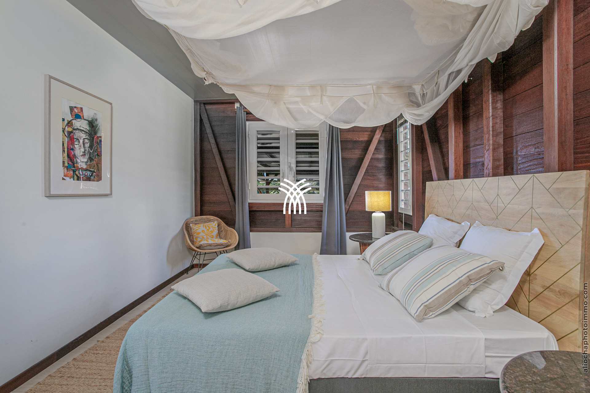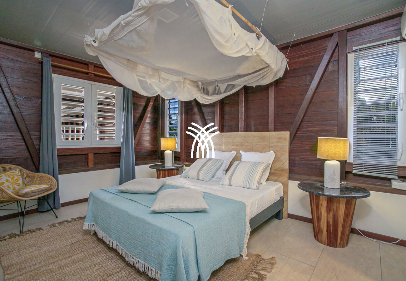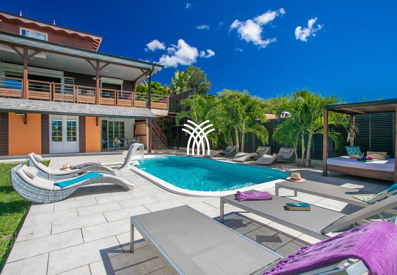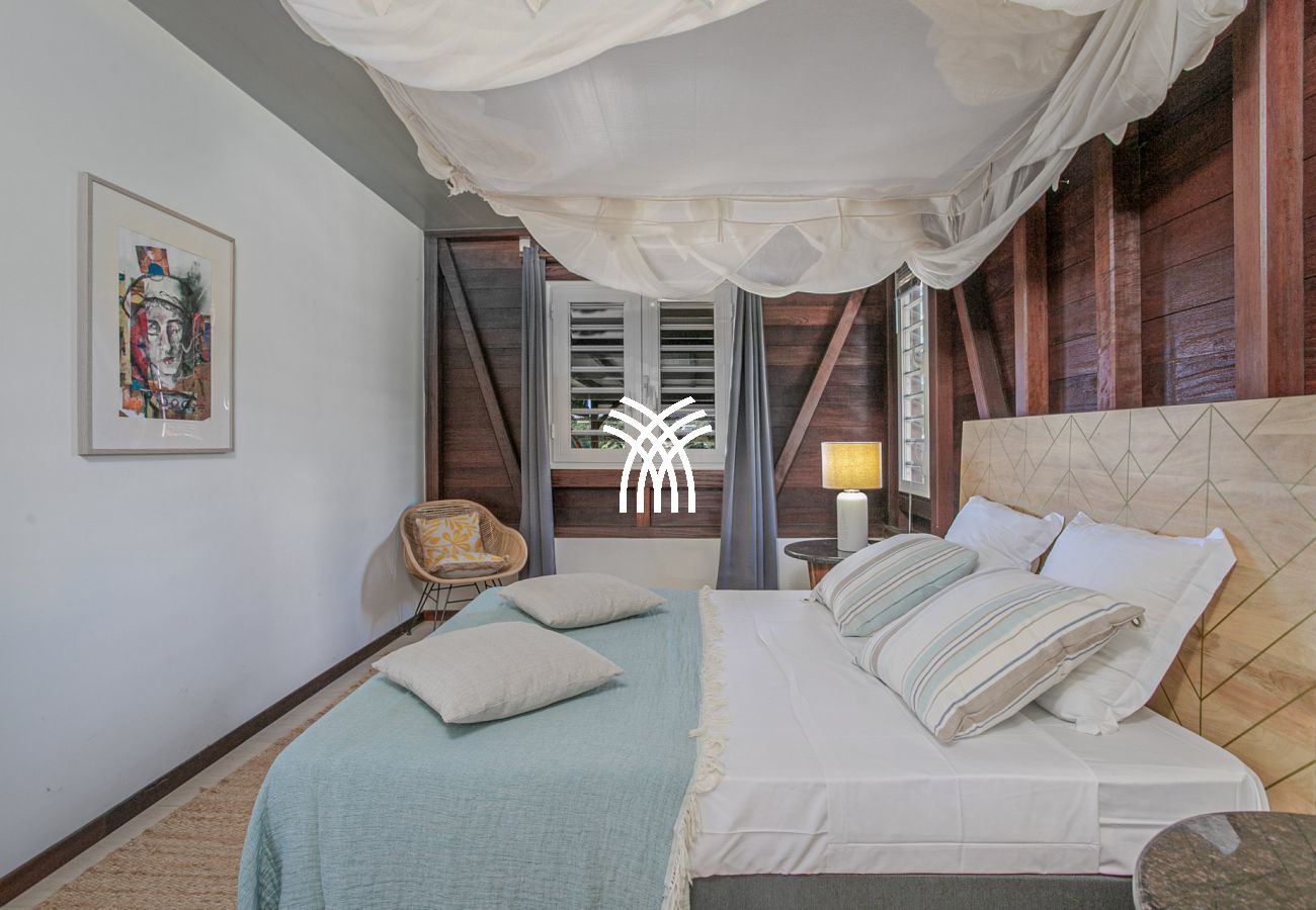 Located in the heart of a 720 m² tropical garden, mixing sugar cane, banana trees, lemon trees, palm trees, mango trees and more, the Villa Bwa Chik is a truly prestigious address. Its idyllic setting promises unforgettable holidays with family or friends. Nestled in the sought-after town of Diamant, this villa perfectly embodies the Martinican art of living.