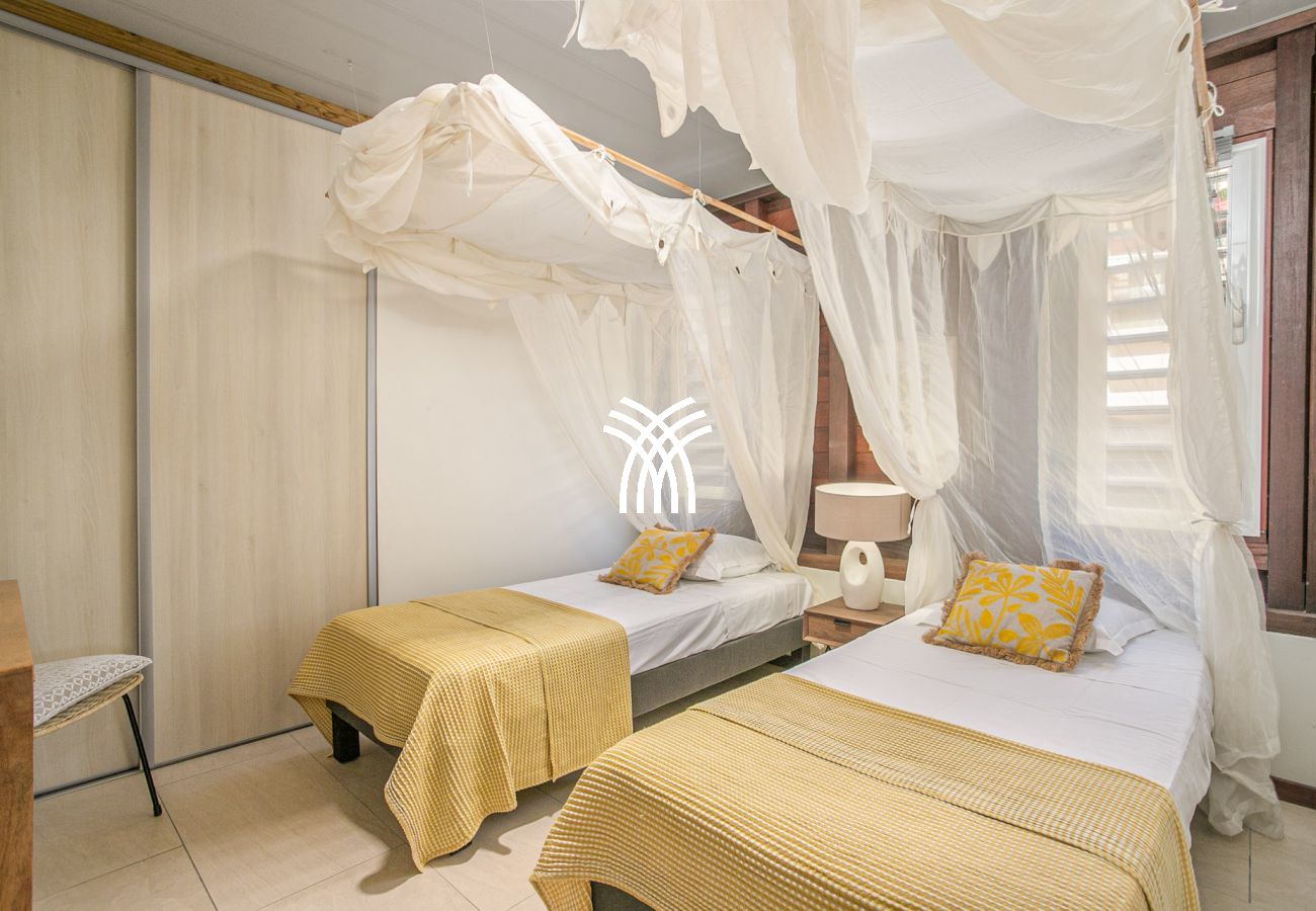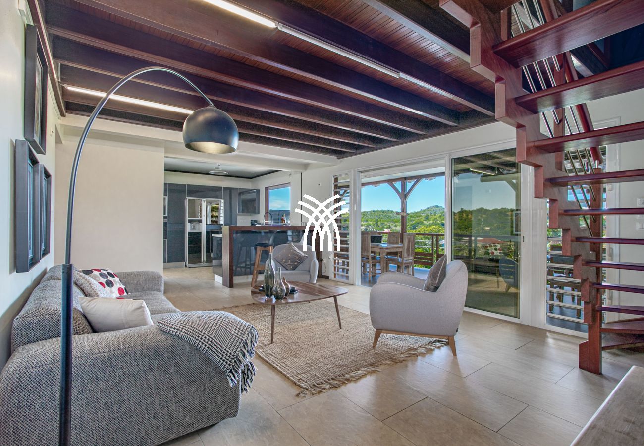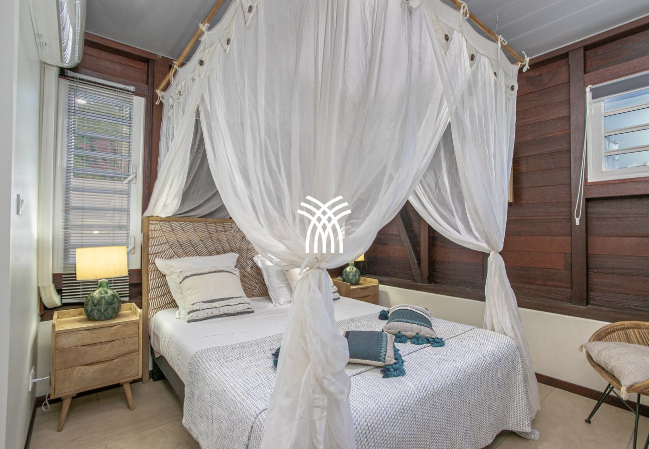 Located in the heart of a 720 m² tropical garden, mixing sugar cane, banana trees, lemon trees, palm trees, mango trees and more, the Villa Bwa Chik is a truly prestigious address. Its idyllic setting promises unforgettable holidays with family or friends. Nestled in the sought-after town of Diamant, this villa perfectly embodies the Martinican art of living.