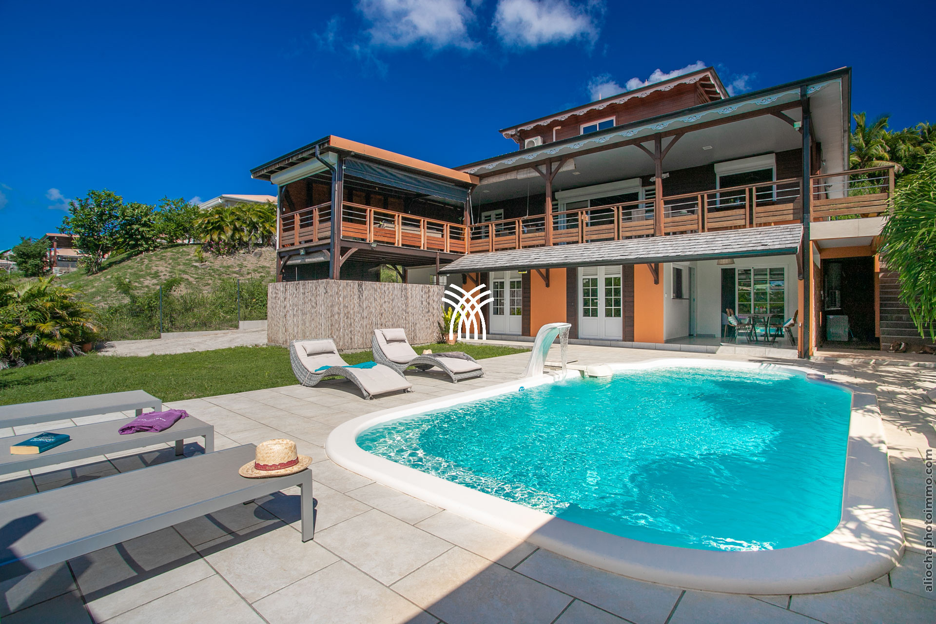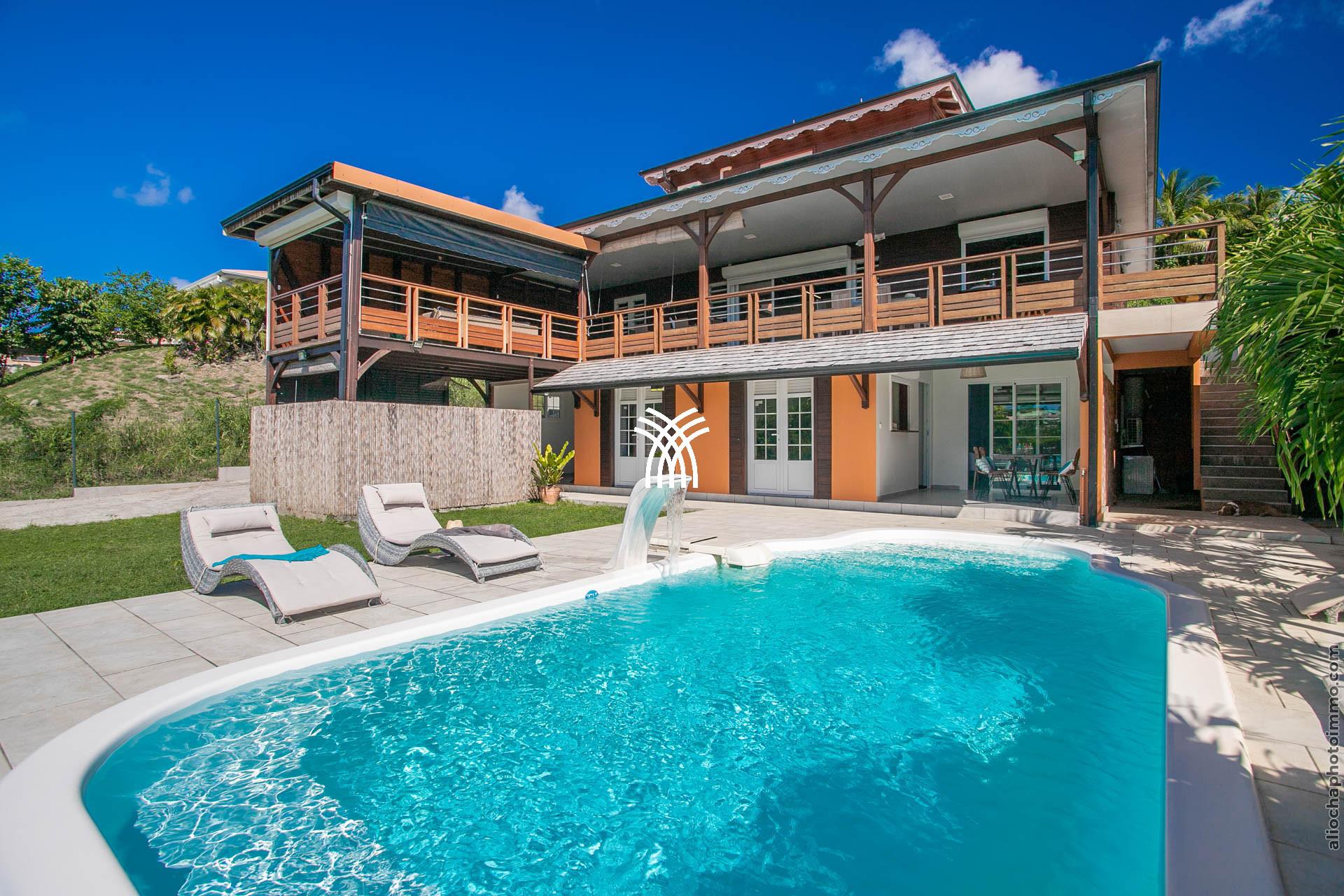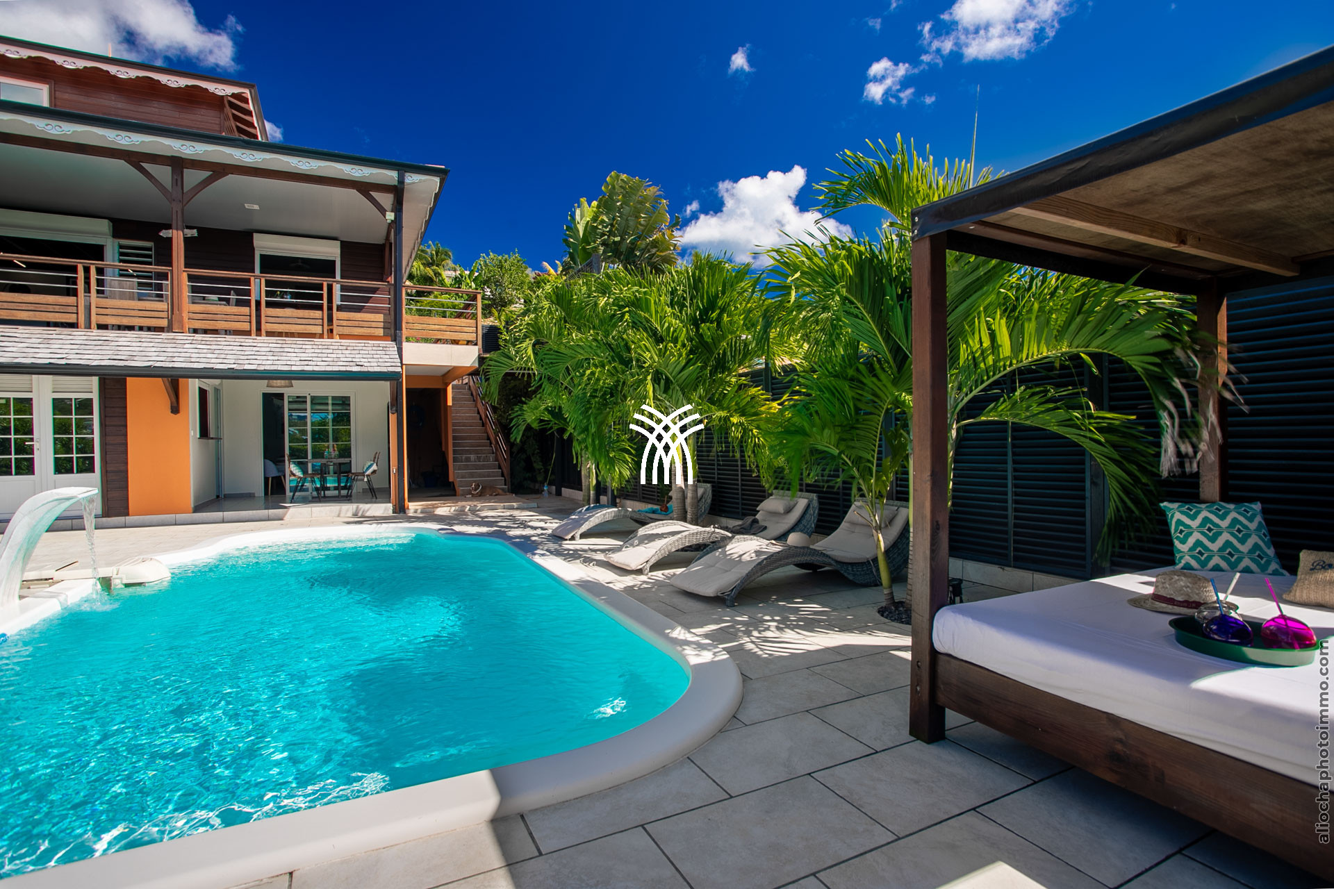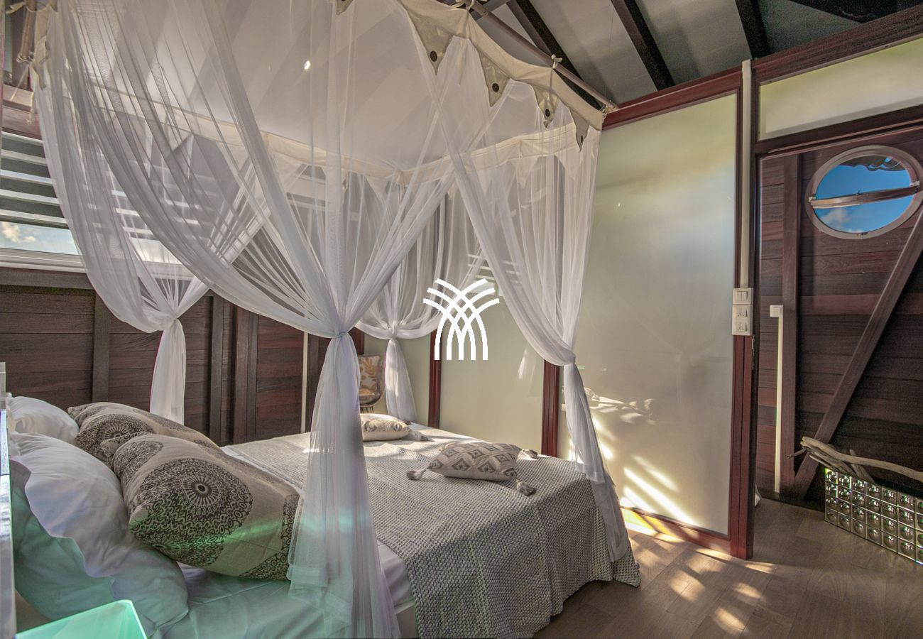 Located in the heart of a 720 m² tropical garden, mixing sugar cane, banana trees, lemon trees, palm trees, mango trees and more, the Villa Bwa Chik is a truly prestigious address. Its idyllic setting promises unforgettable holidays with family or friends. Nestled in the sought-after town of Diamant, this villa perfectly embodies the Martinican art of living.