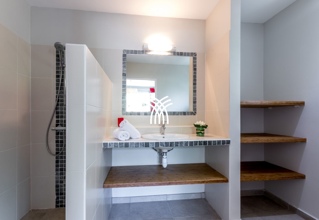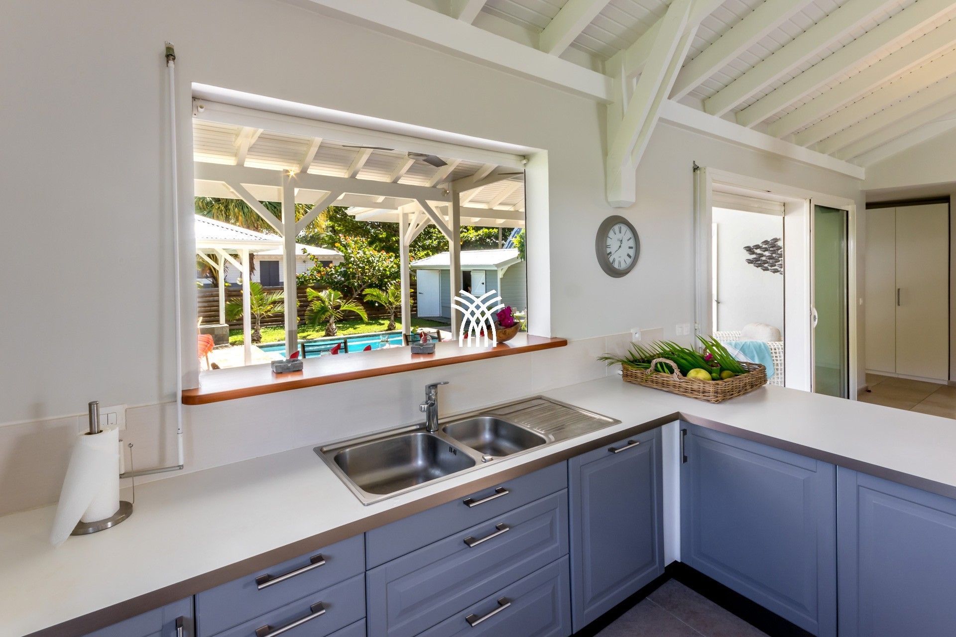 The kitchen opened on the living room, furnished with taste, extends on the terrace giving access to the pool which makes it possible to benefit from the sun easily. The villa On the Rock Martinique is an invitation to relax for a holiday under the sun in peace.