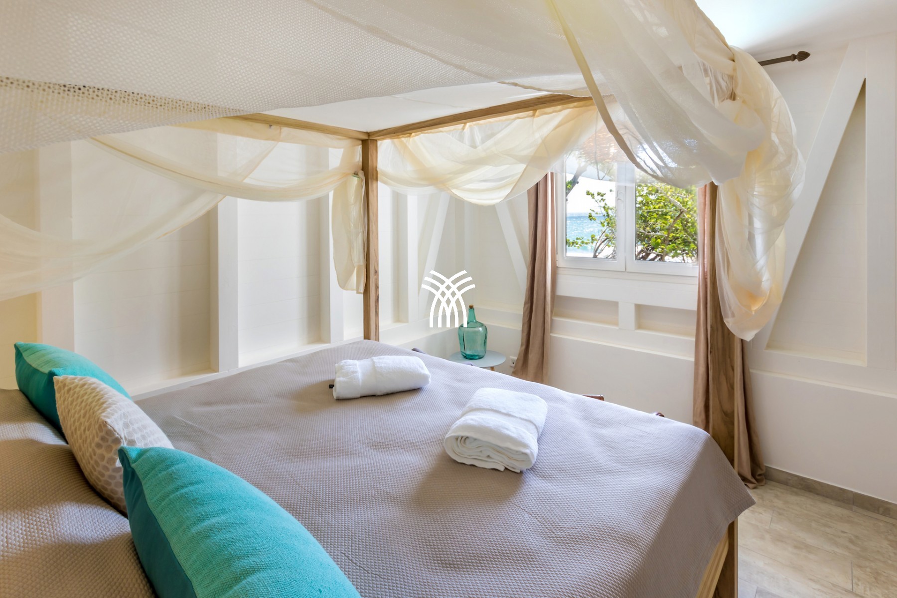 Queen size canopy bed, air-conditioning, bath with shower and toilet, sea view