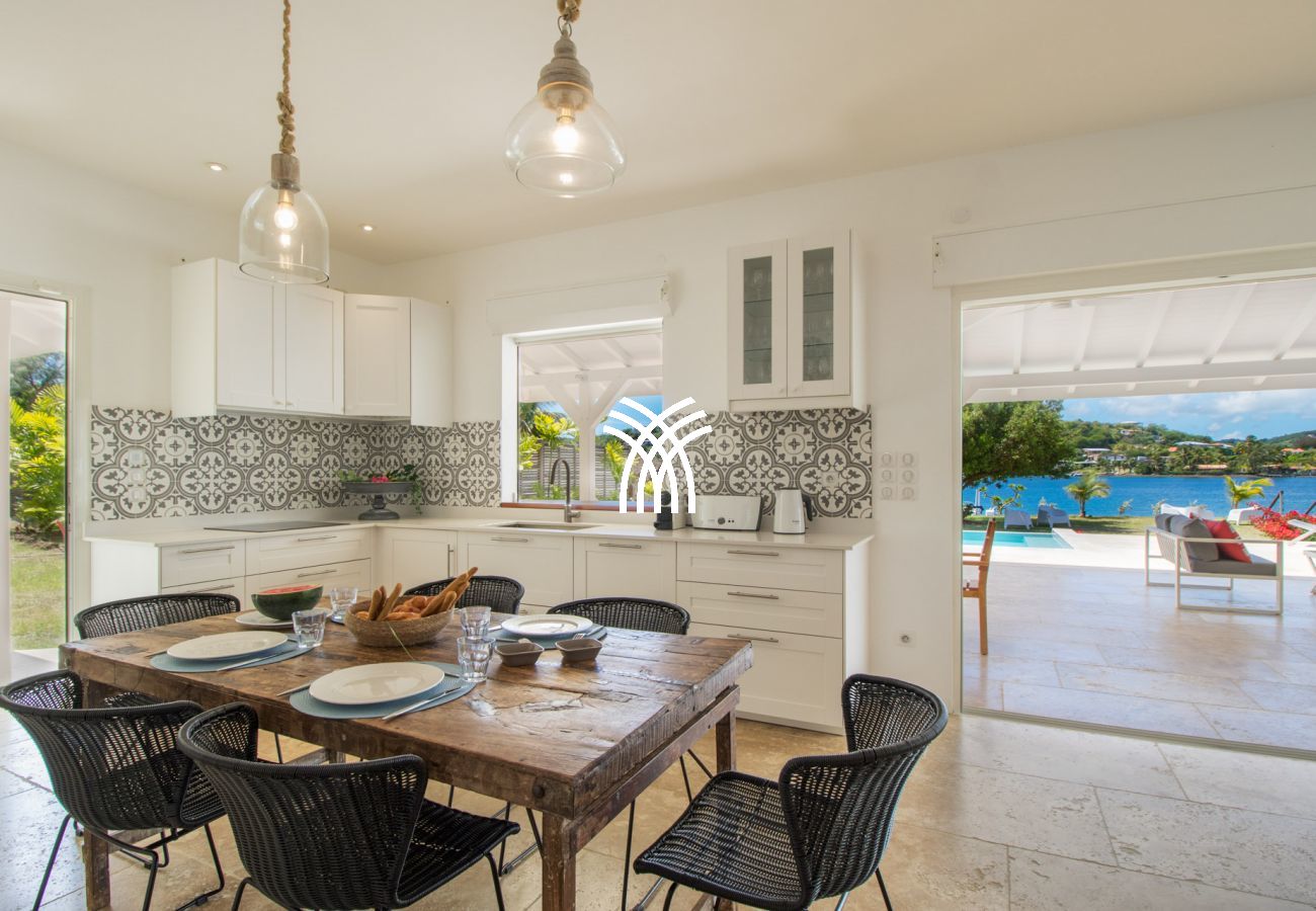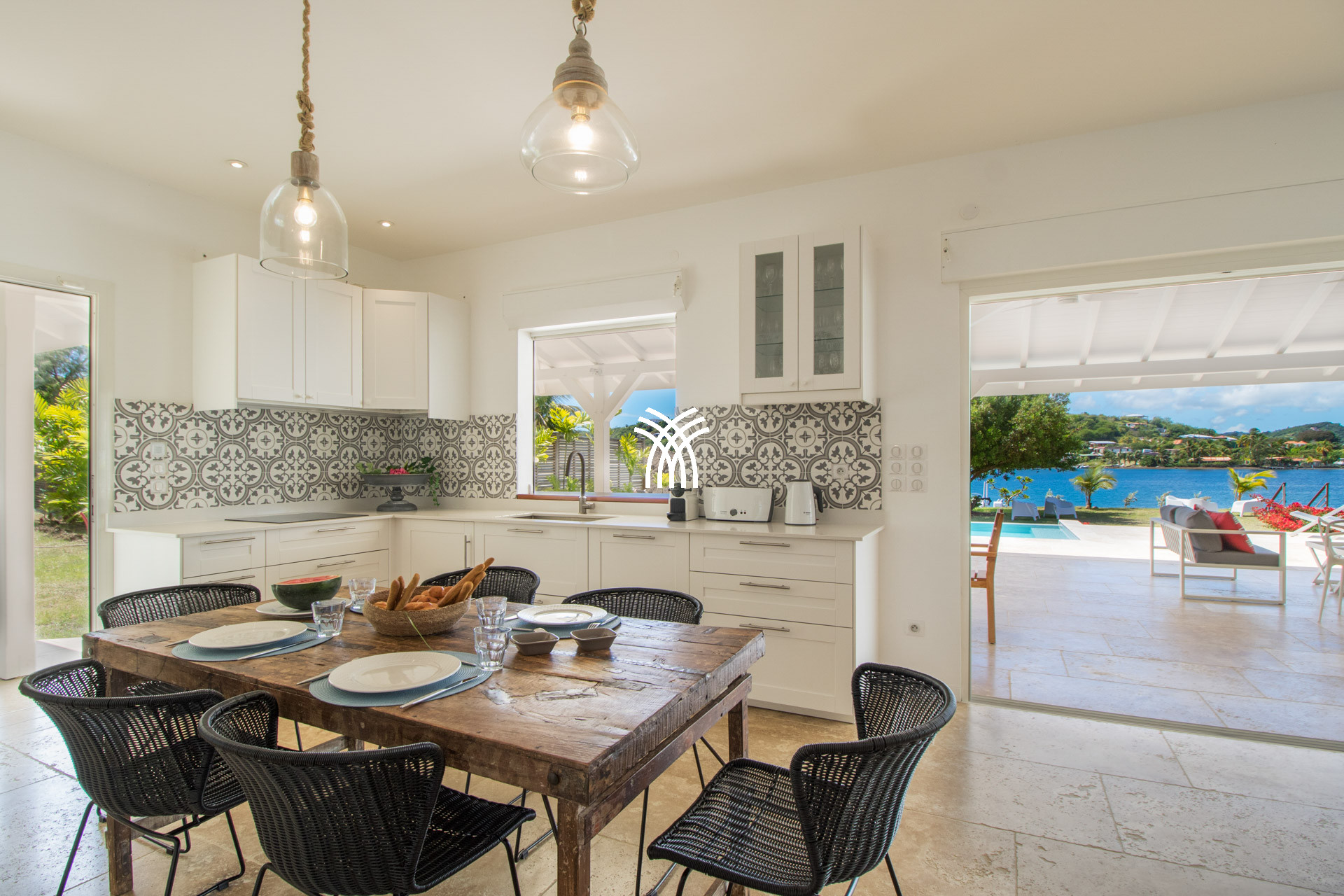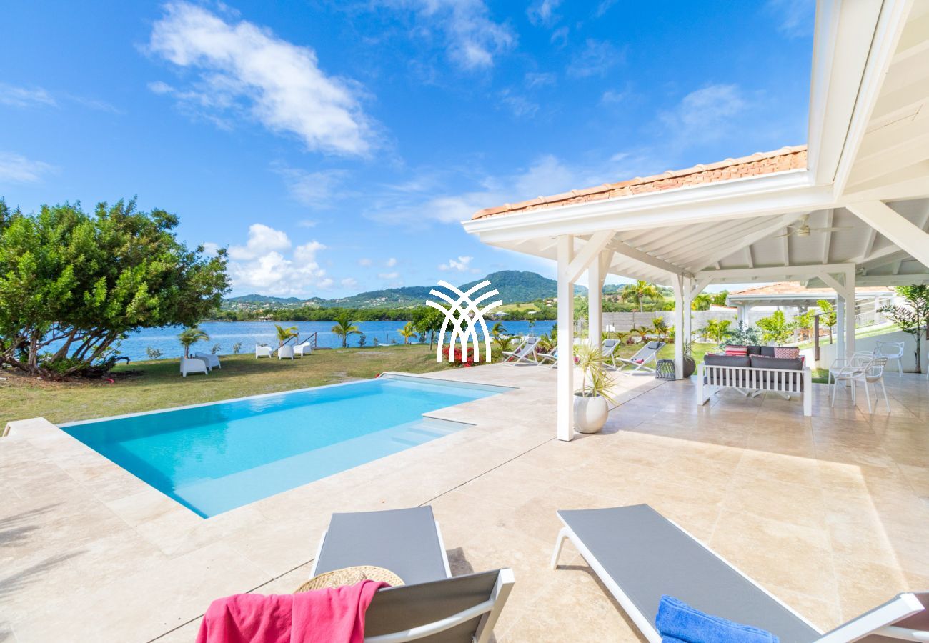 Facing the water in one of the most beautiful bays in Martinique, you will enjoy relaxing on the private pier, or by the pool with a view of the water.