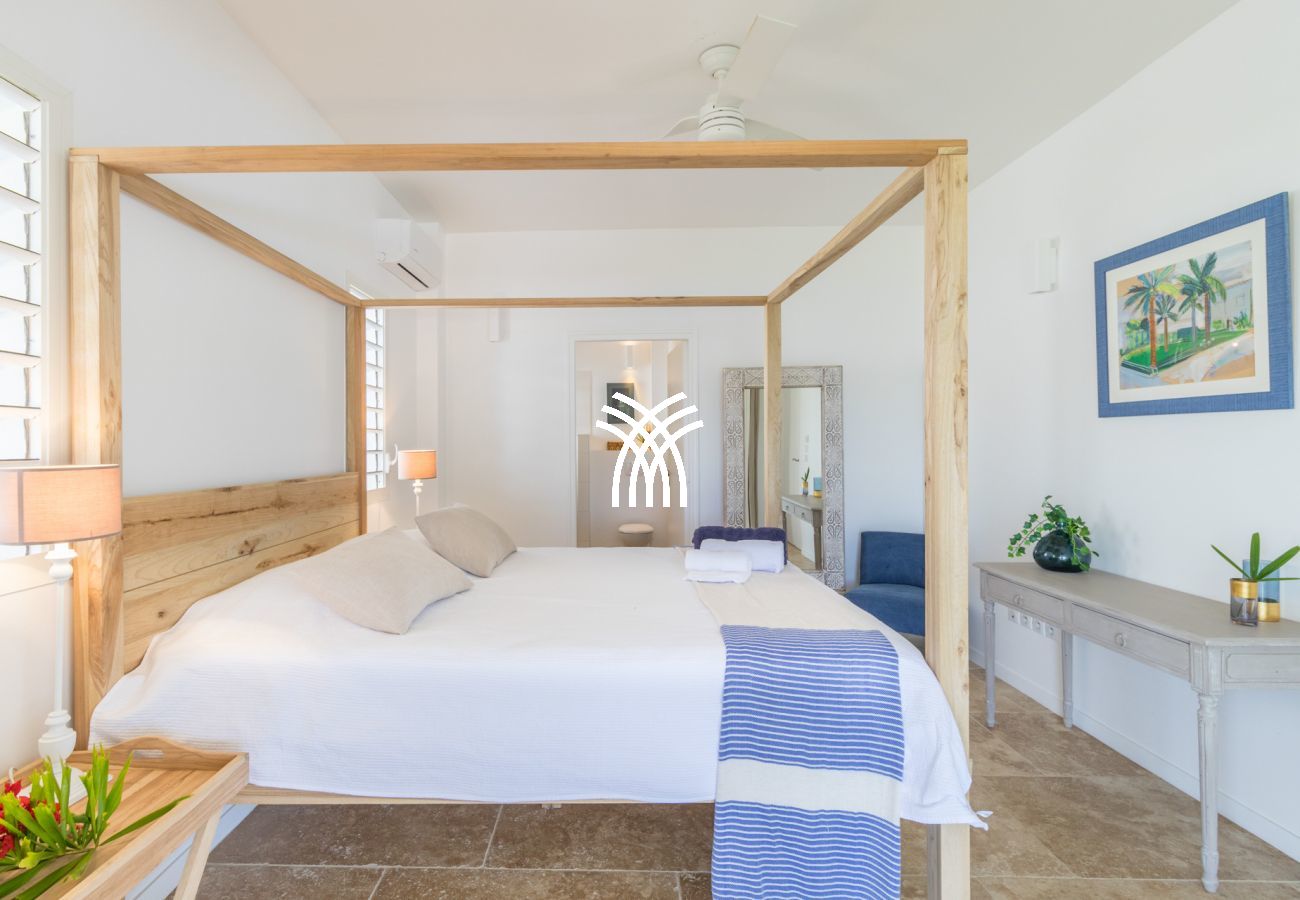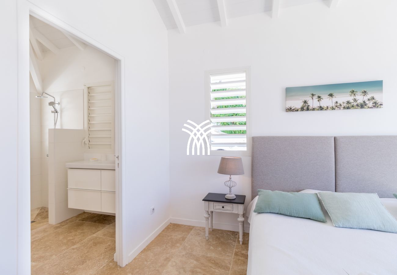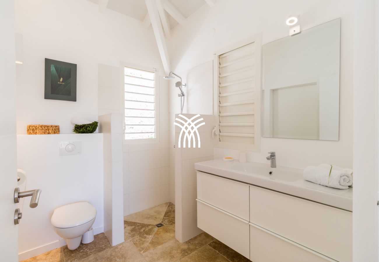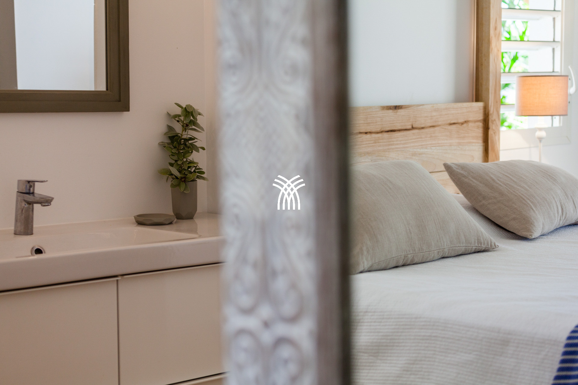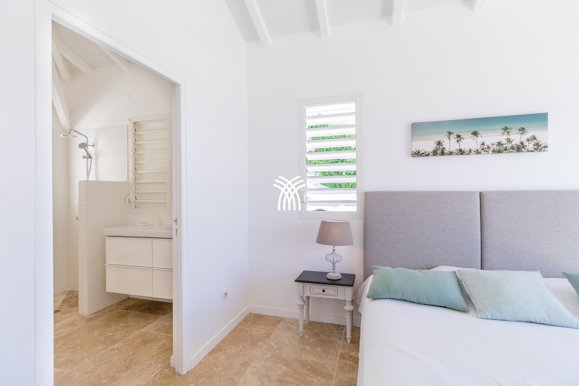 The complete equipment of Villa Alice Bay will satisfy your needs: its design and clean lines, quality materials, a real architect's villa! Built of 2 units, the villa offers a main house (10 guests) with 4 air-conditioned bedrooms, 4 ensuite bathrooms, a cinema room, an air-conditioned office also serving as a bedroom for children / teens (with wifi printer), a storeroom and a large patio. A recently renovated cottage (4 guests) next to the main villa, has 2 bedrooms with their ensuite bathroom, a kitchen, a small living room, a shaded terrace and an outdoor shower.